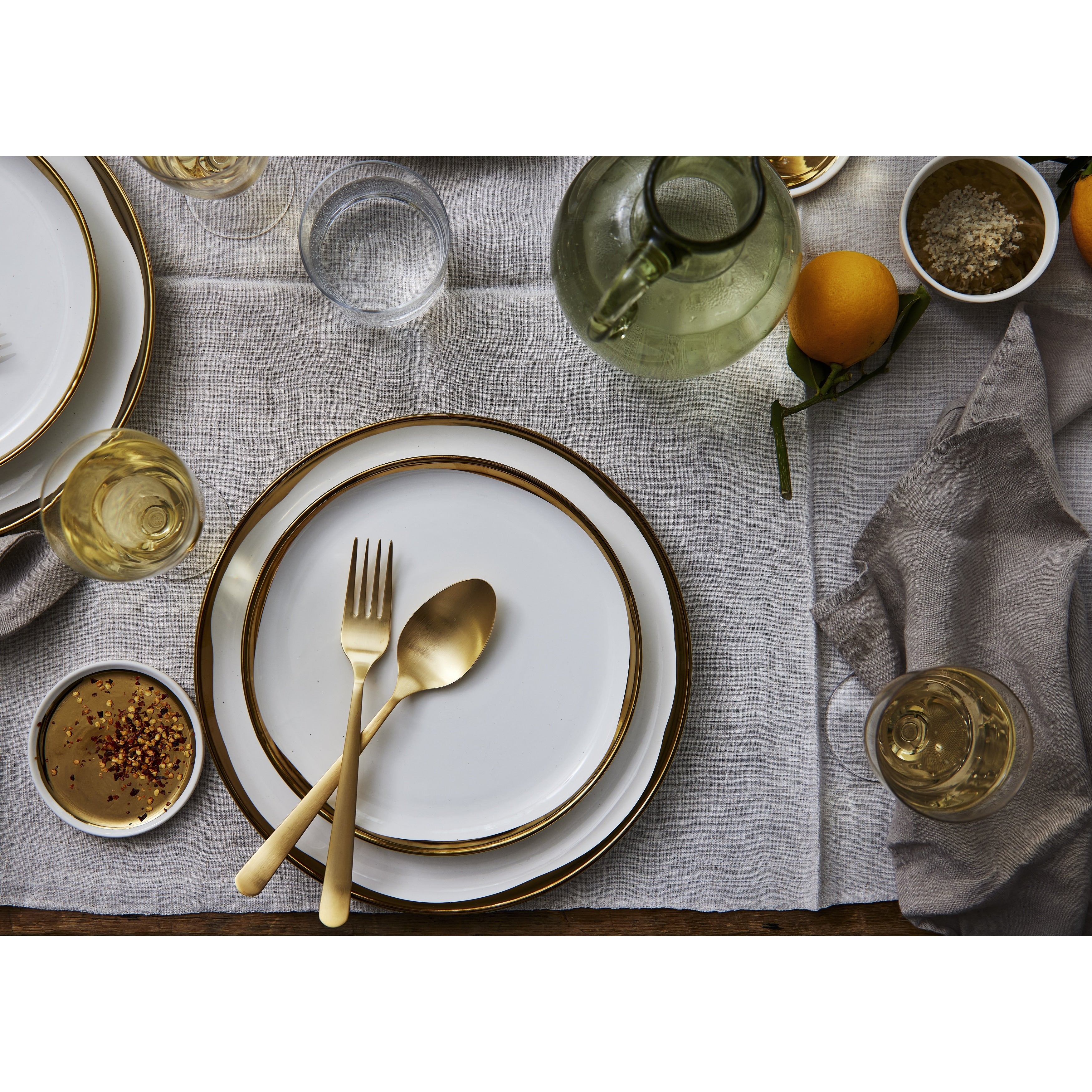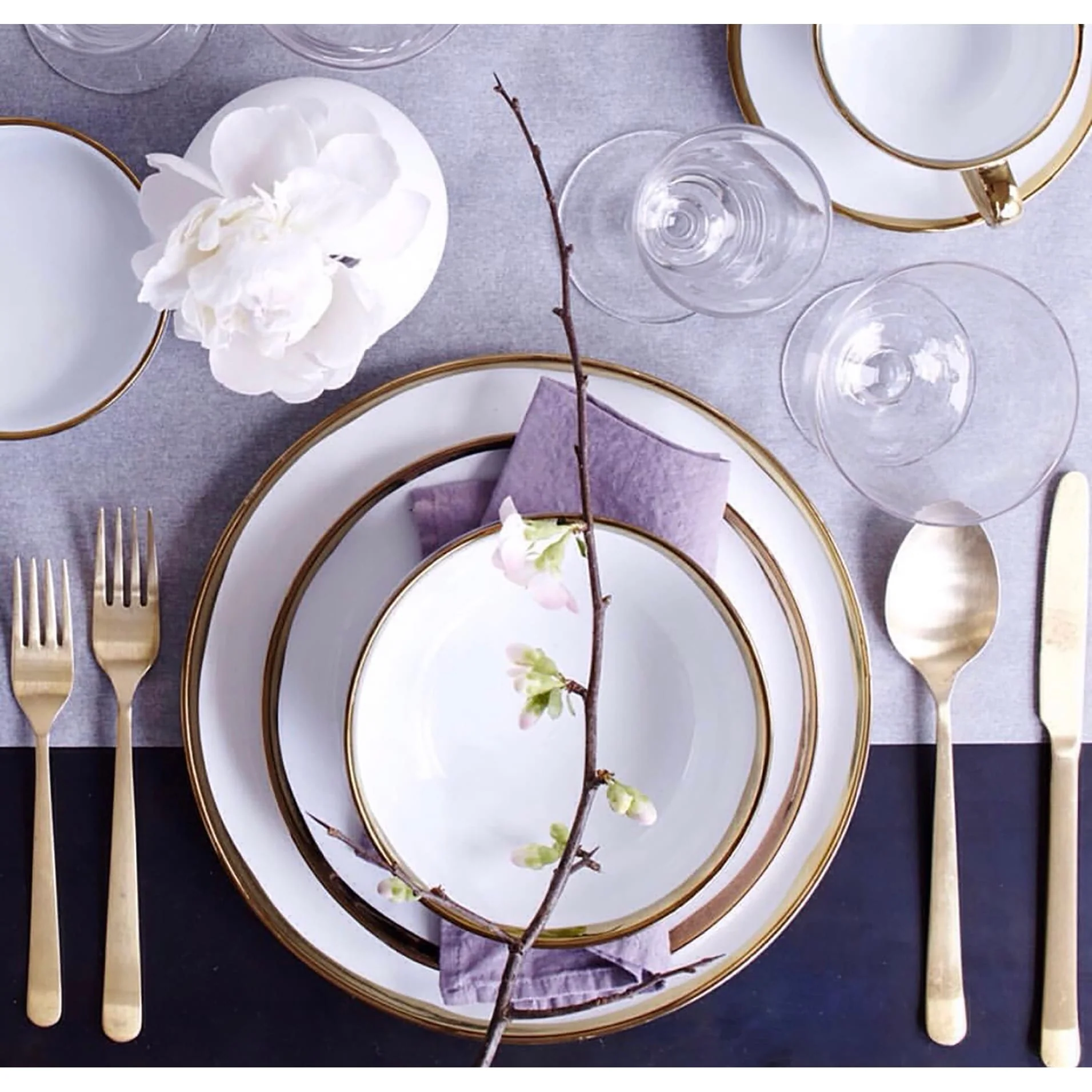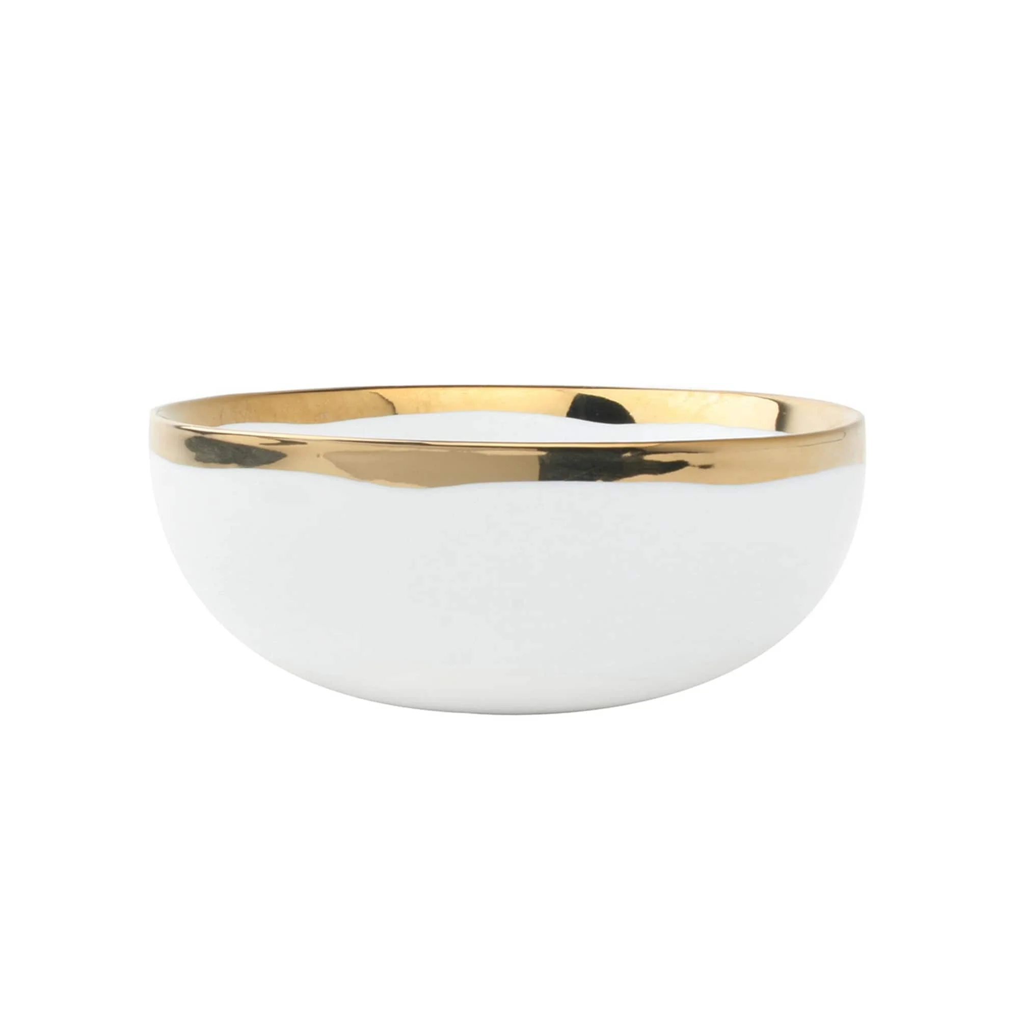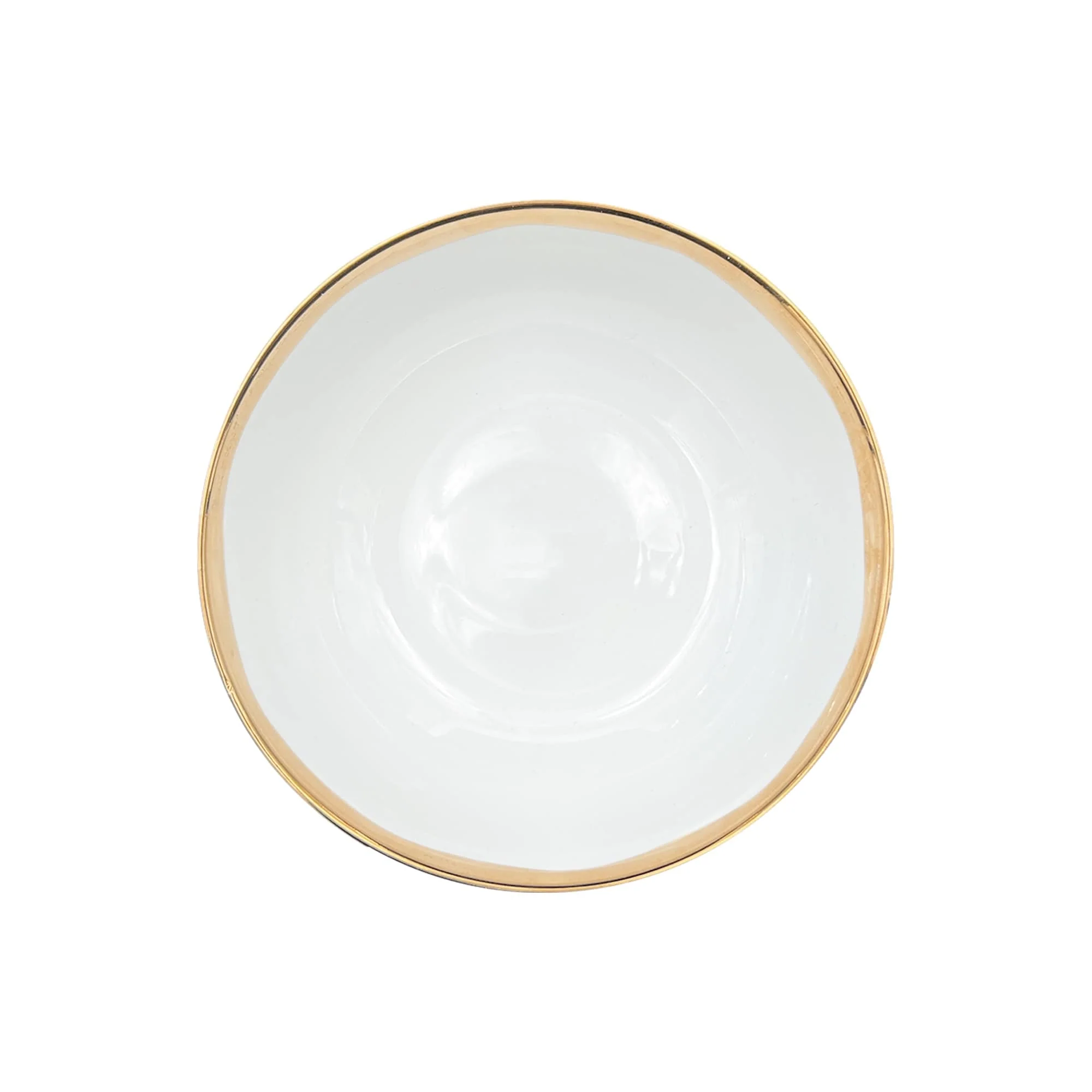 Canvas Home's Dauville Collection exhibits a contrast between the creamy textured finish and bold metallic glaze, which in turn yields a unique harmony of glamour and subtlety. Each piece features a contemporary shape and distinctive free-form glazing along the rim. Perfect for entertaining your guests with artisan sophistication and poise.