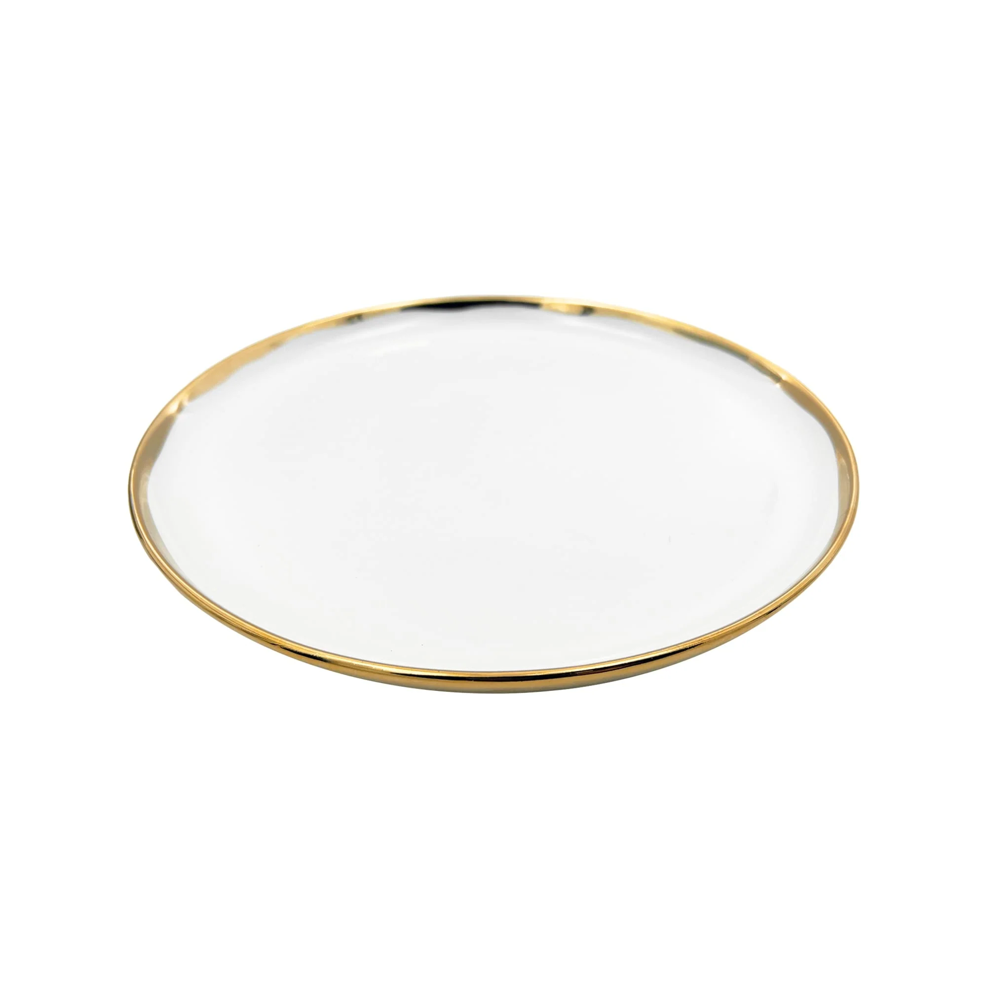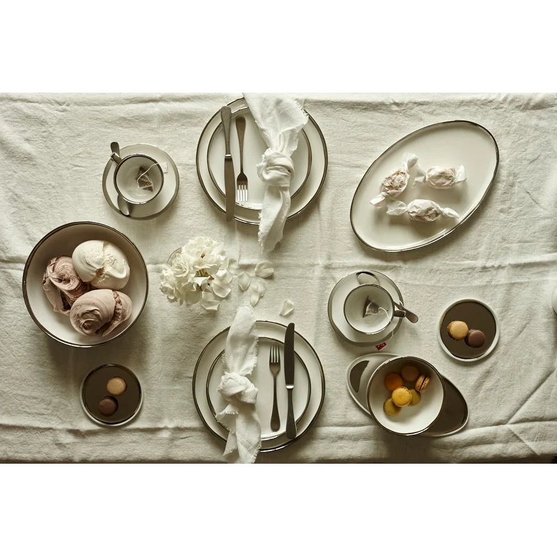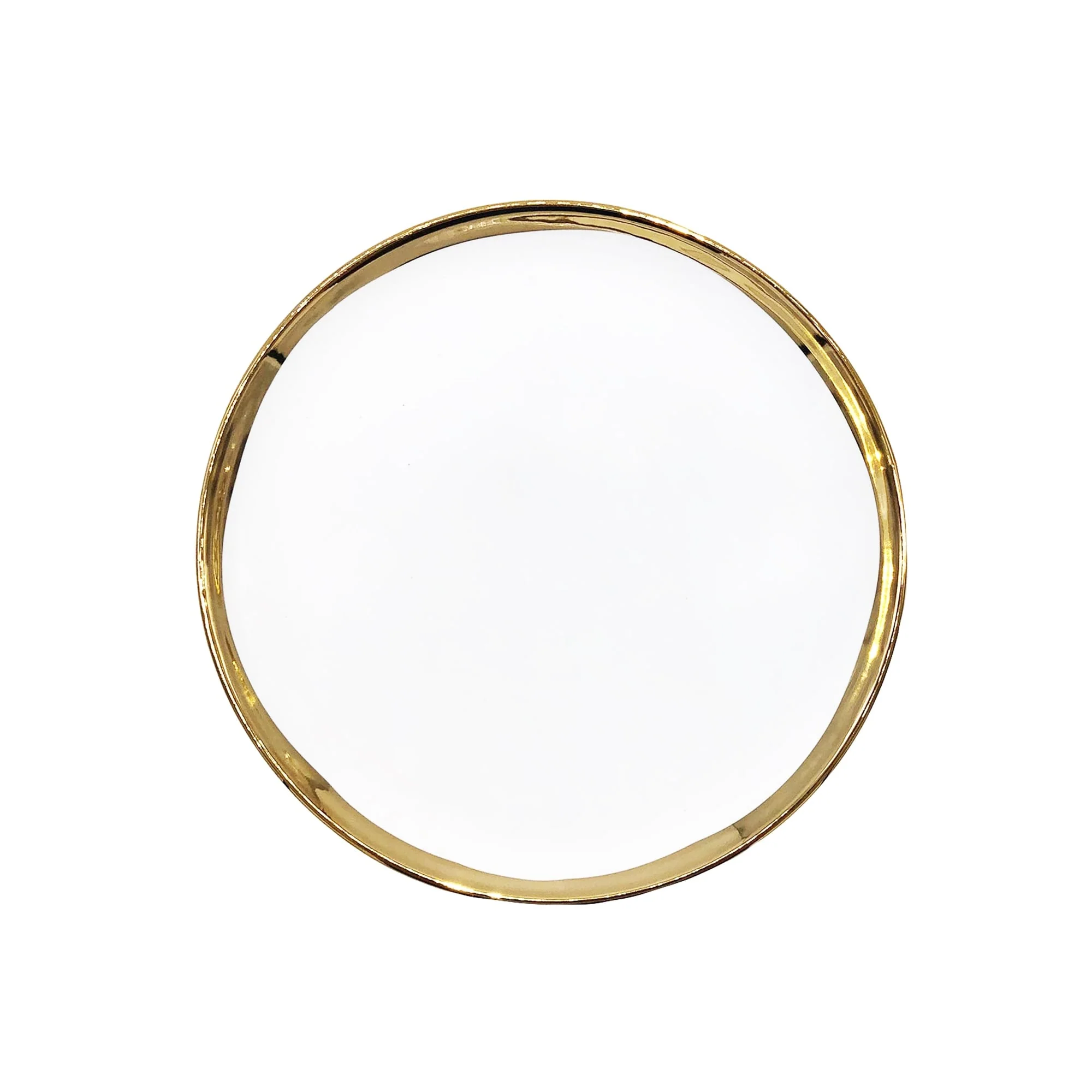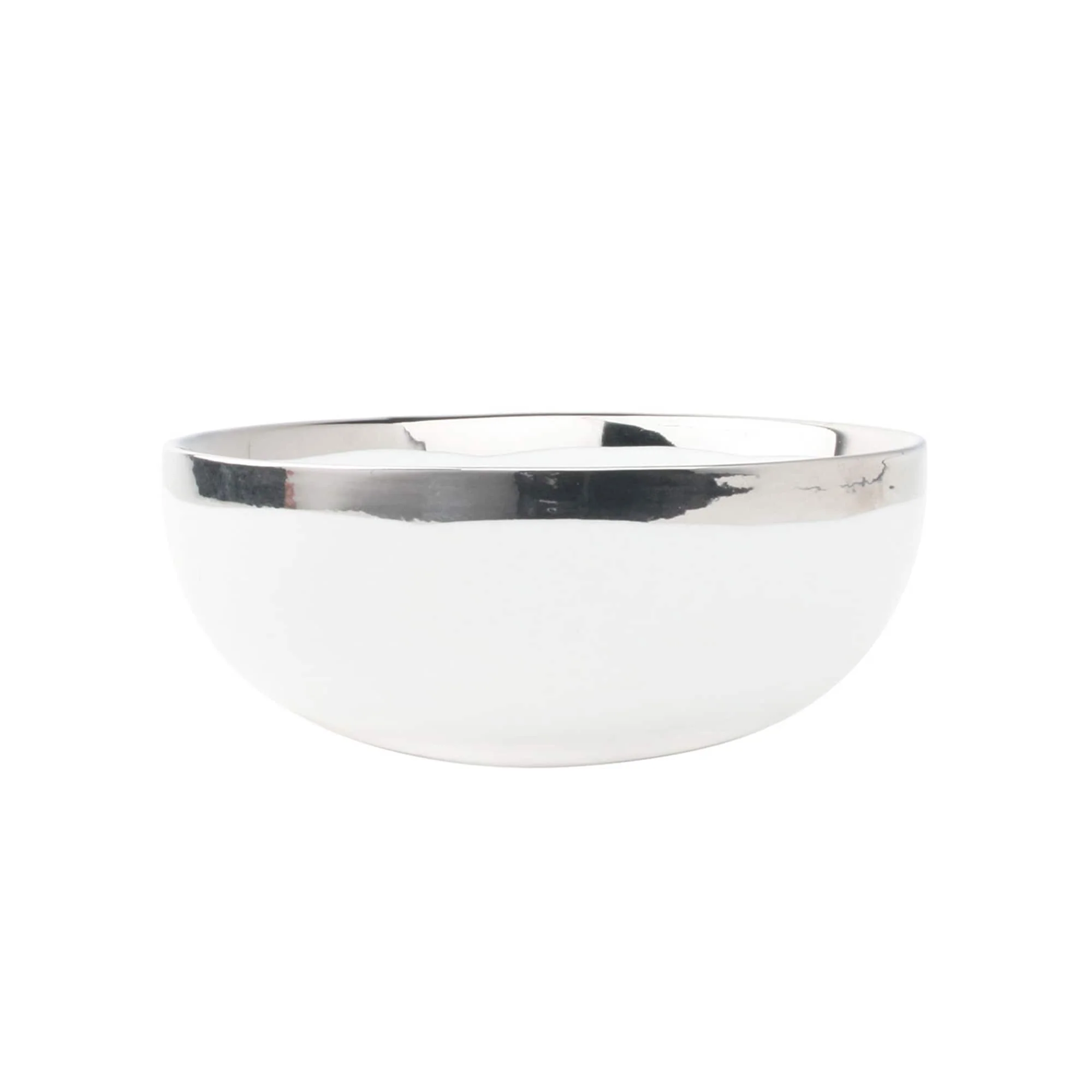 Canvas Home's Dauville Collection exhibits a contrast between the creamy textured finish and bold metallic glaze, which in turn yields a unique harmony of glamour and subtlety. Each piece features a contemporary shape and distinctive free-form glazing along the rim. Perfect for entertaining your guests with artisan sophistication and poise.