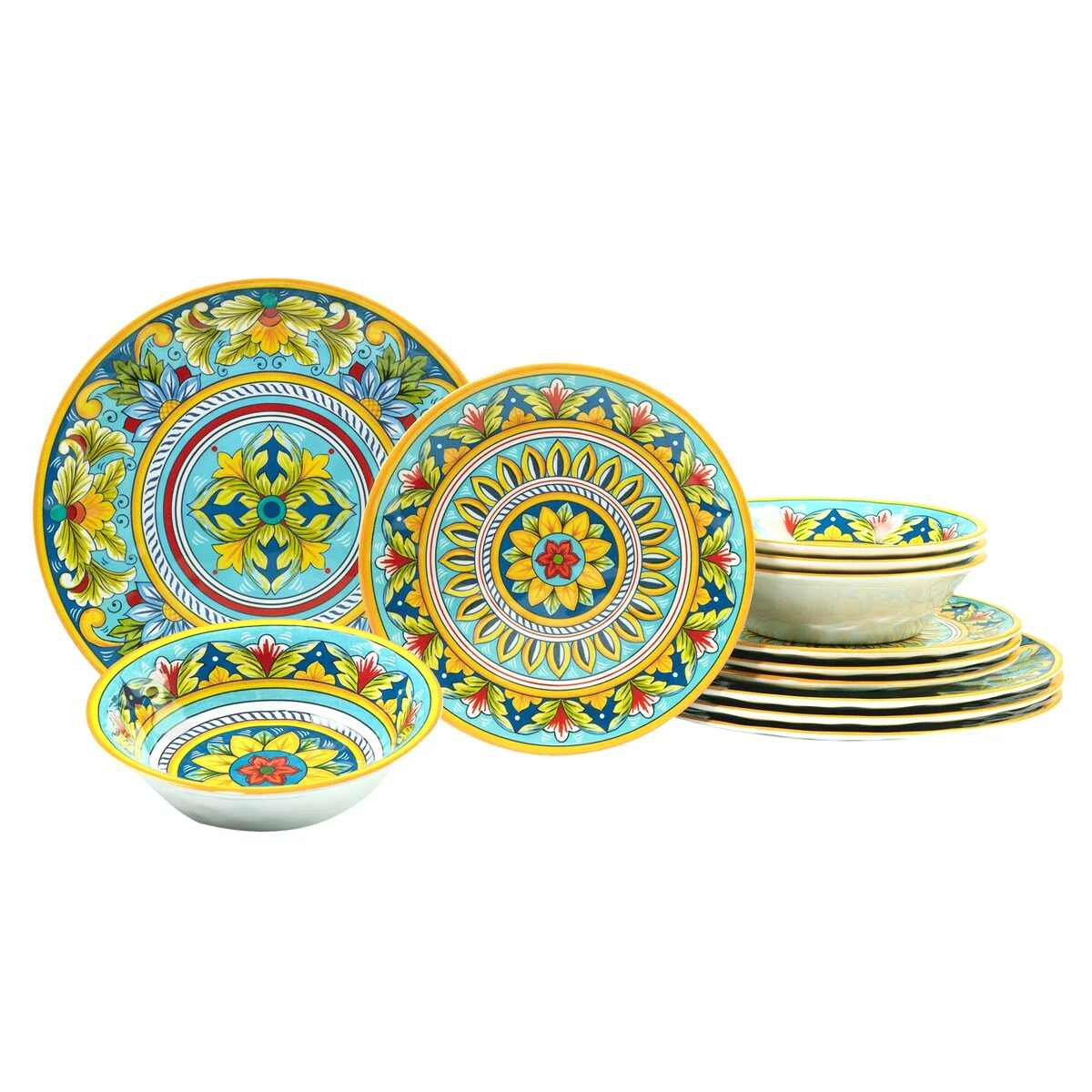 - Set includes: Four (4) 11-inch Melamine Dinner Plates, four (4) 9-inch Salad/Dessert Plates and four (4) 7.5-inch All Purpose Bowls
