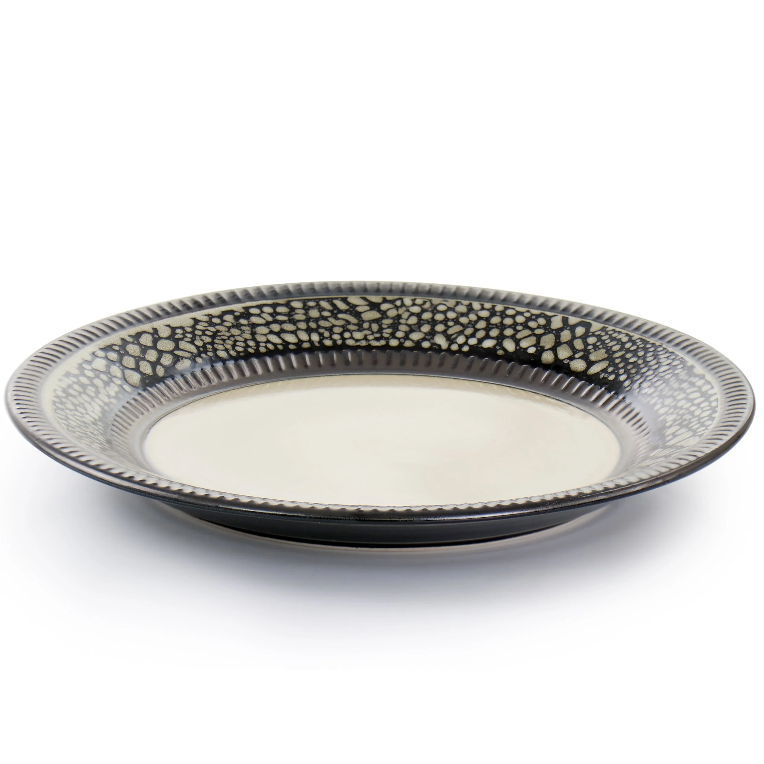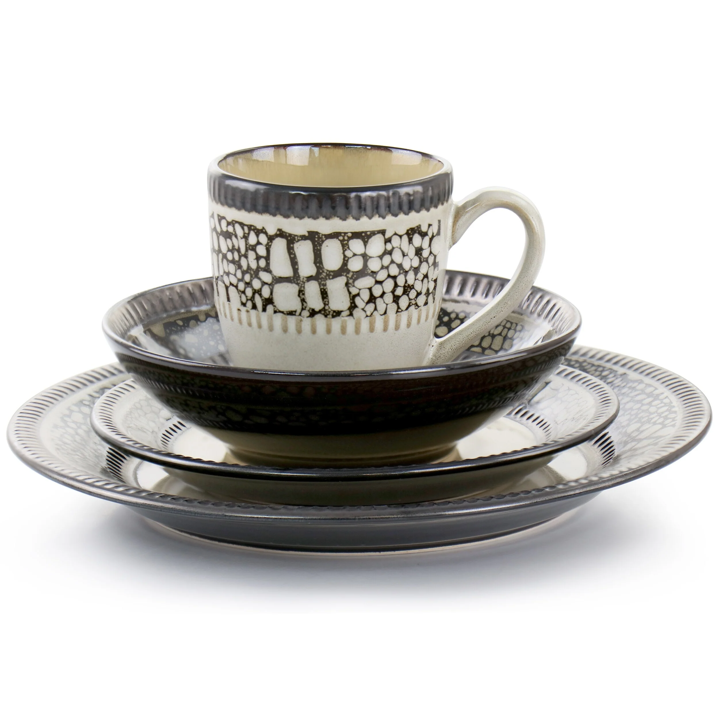 Add a subtle touch of color with the Elama Desert Sand 16 Stoneware Dinnerware Set. Features a beautiful geometric rim and elegant tone of Taupe, this set is perfect for formal and every day use. Constructed of Stoneware, dinnerware is microwave and dishwasher safe.