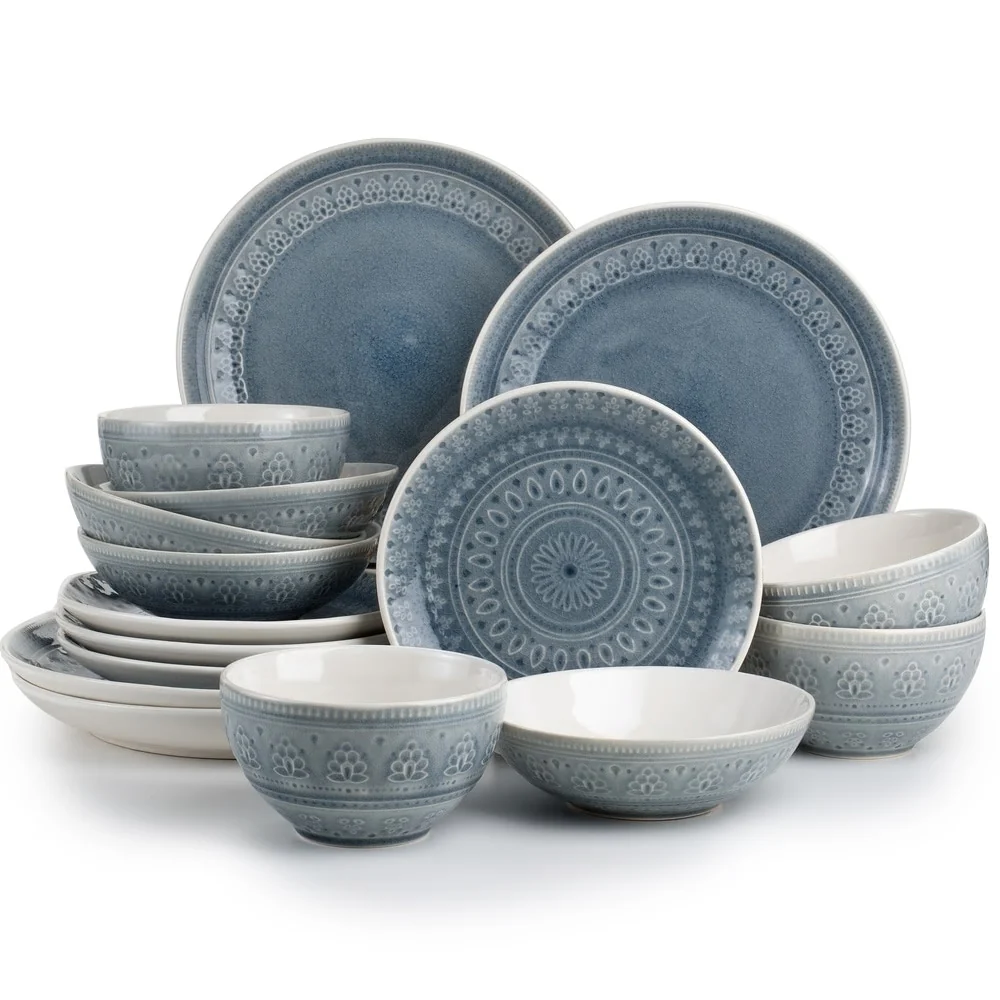 Elevate your dining experience with the Euro Ceramica Fez 16 Piece Double Bowl Dinnerware Set.