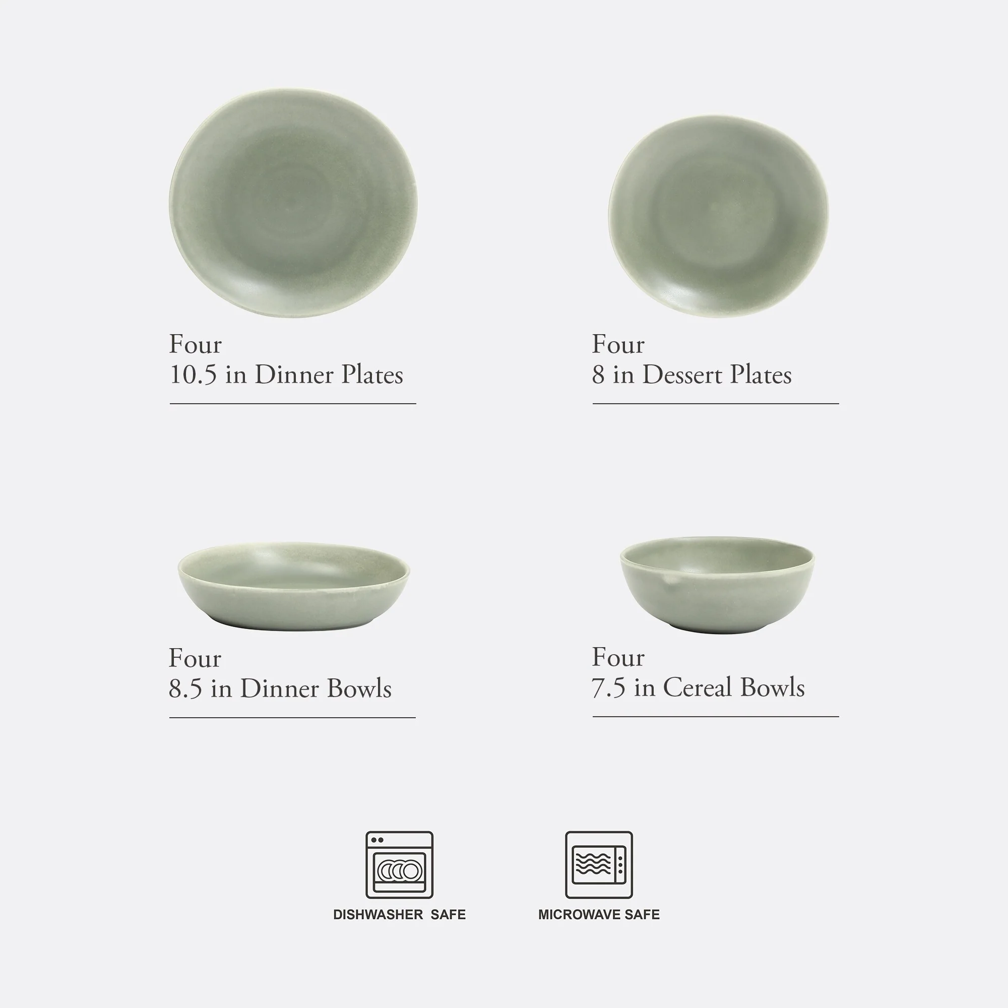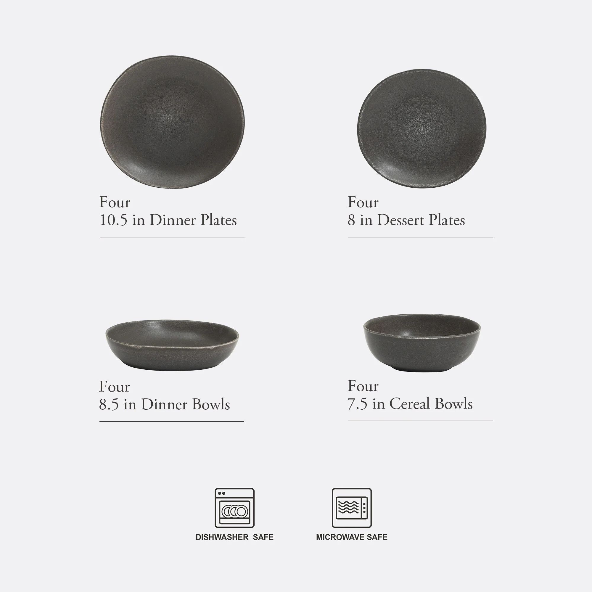 * FOUR PLACE SETTINGS: This complete set includes four 10-inch dinner plates, four 7.5-inch dessert plates, four 8-inch dinner bowls and four 6-inch cereal bowls. Suitable for a service for four and a spread filled with homemade meals and authentic conversations.