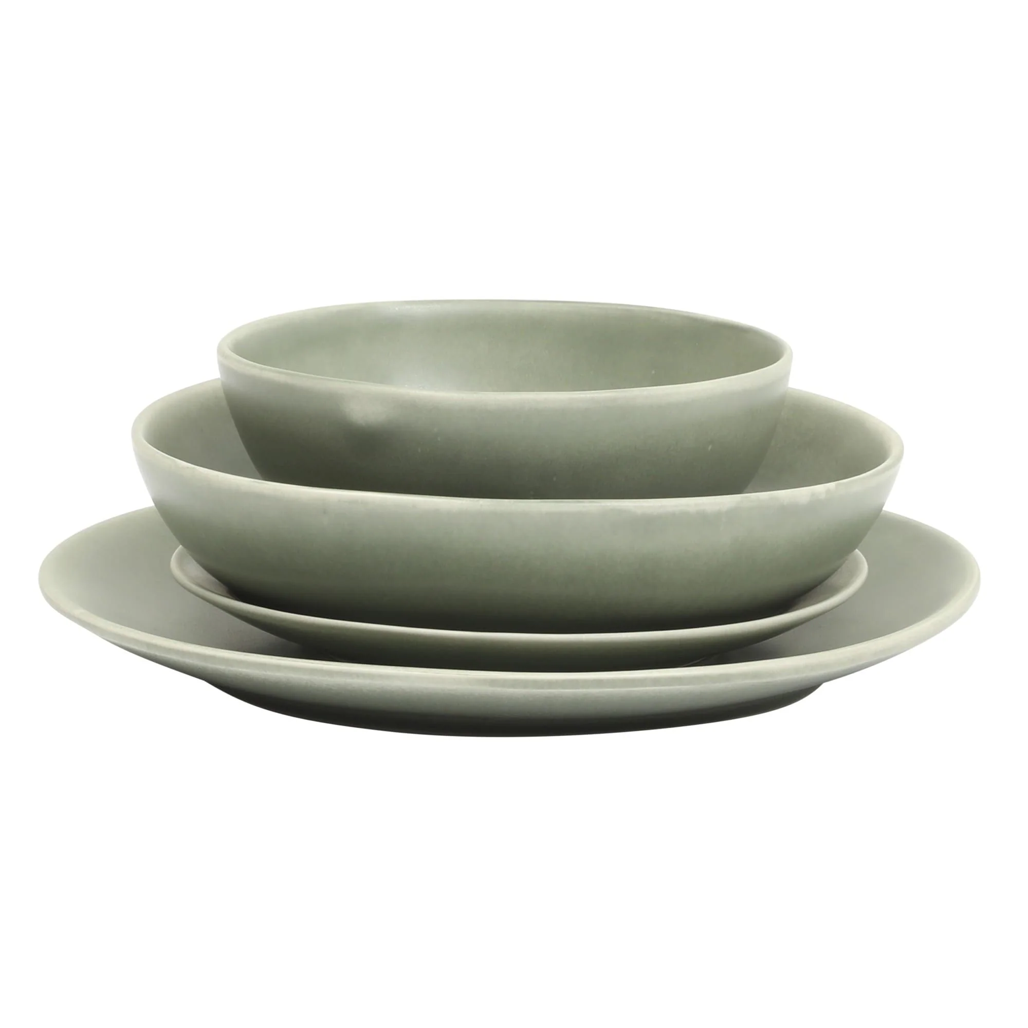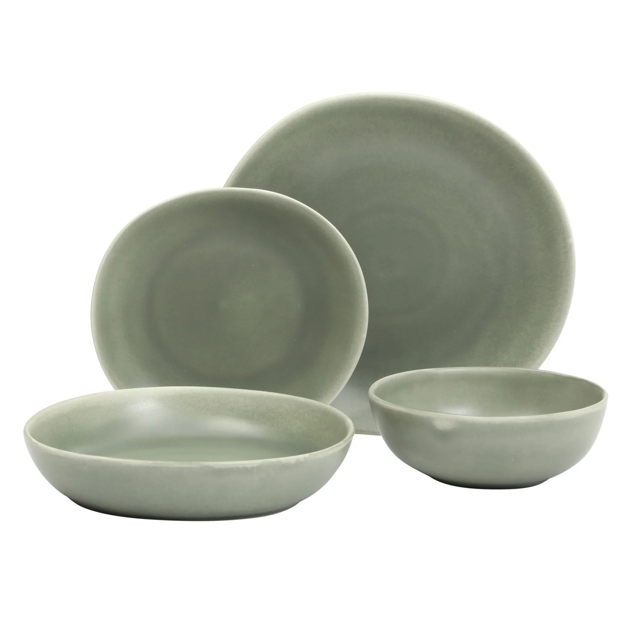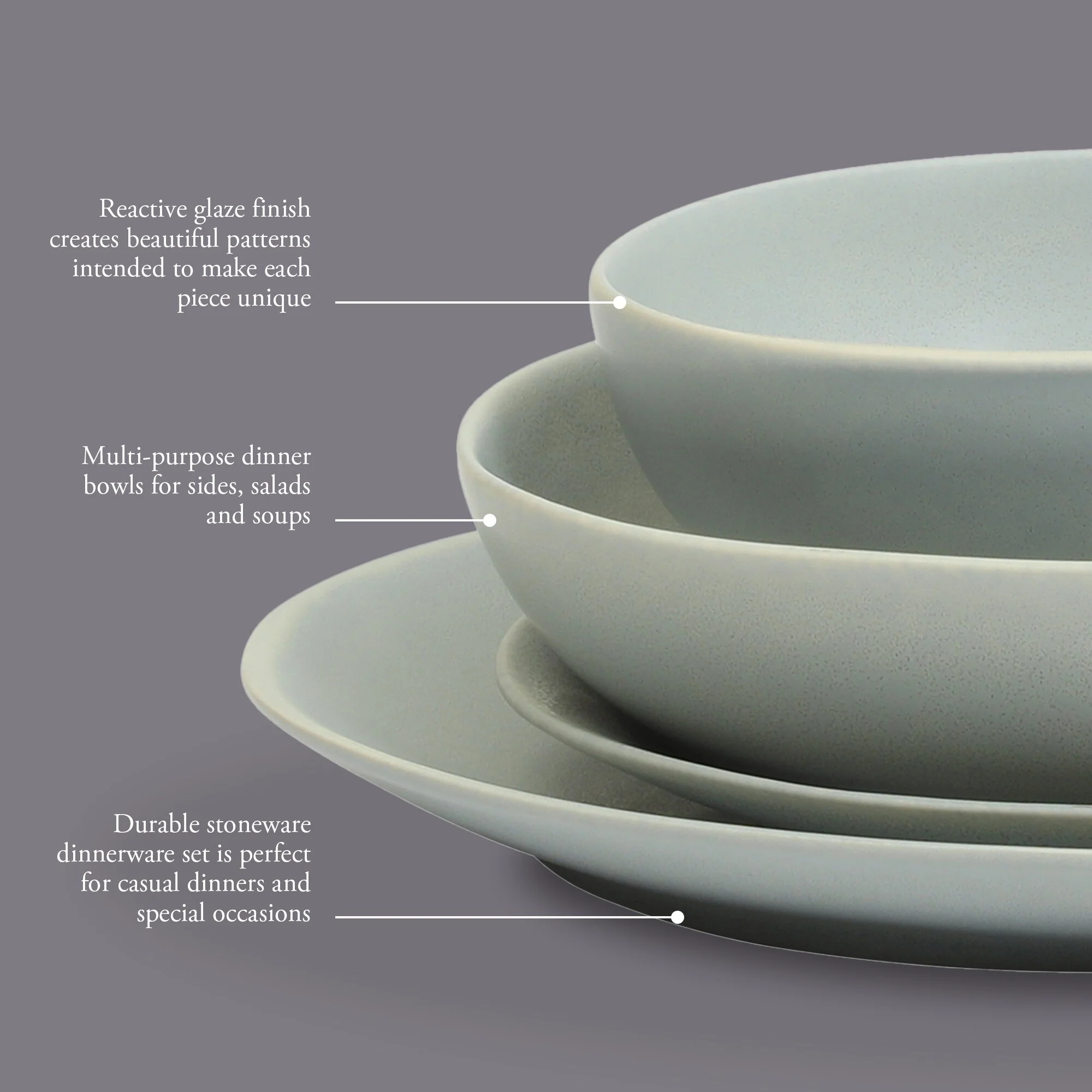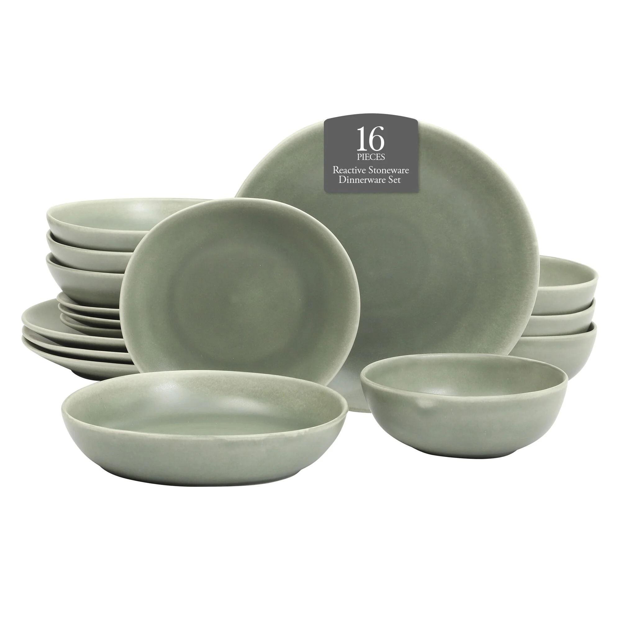 Inspired by the dramatic sandstone mountains and calm river streams of Zion Canyon, this dinnerware set from Gibson Elite captures the landscape's bright and changing colors that unveil every season. The high-gloss finish adds a brilliant shine to each plate and bowl, which are made from thick stoneware for long-lasting use and timeless elegance. Earthy clays transform into beautiful stoneware art that pairs well with any table setting and enhances the vibrant presentation of your favorite recipe. The craftsmanship behind this set is an intricate process, in which the pieces are fired multiple times at high temperatures to create a perfectly wear-resistant and non-porous construction. Finally, each plate and bowl is layered with a reactive glaze finish, bringing it to life with subtle natural variations, ensuring that no two pieces are alike. As a set of stunning home staples, this dinnerware collection makes a tasteful gift for any occasion. Loved for both its practicality and decorative appeal, it also reflects your impeccable taste and conveys warm wishes to family, friends, new homeowners, and newlyweds. Dishwasher and microwave safe.