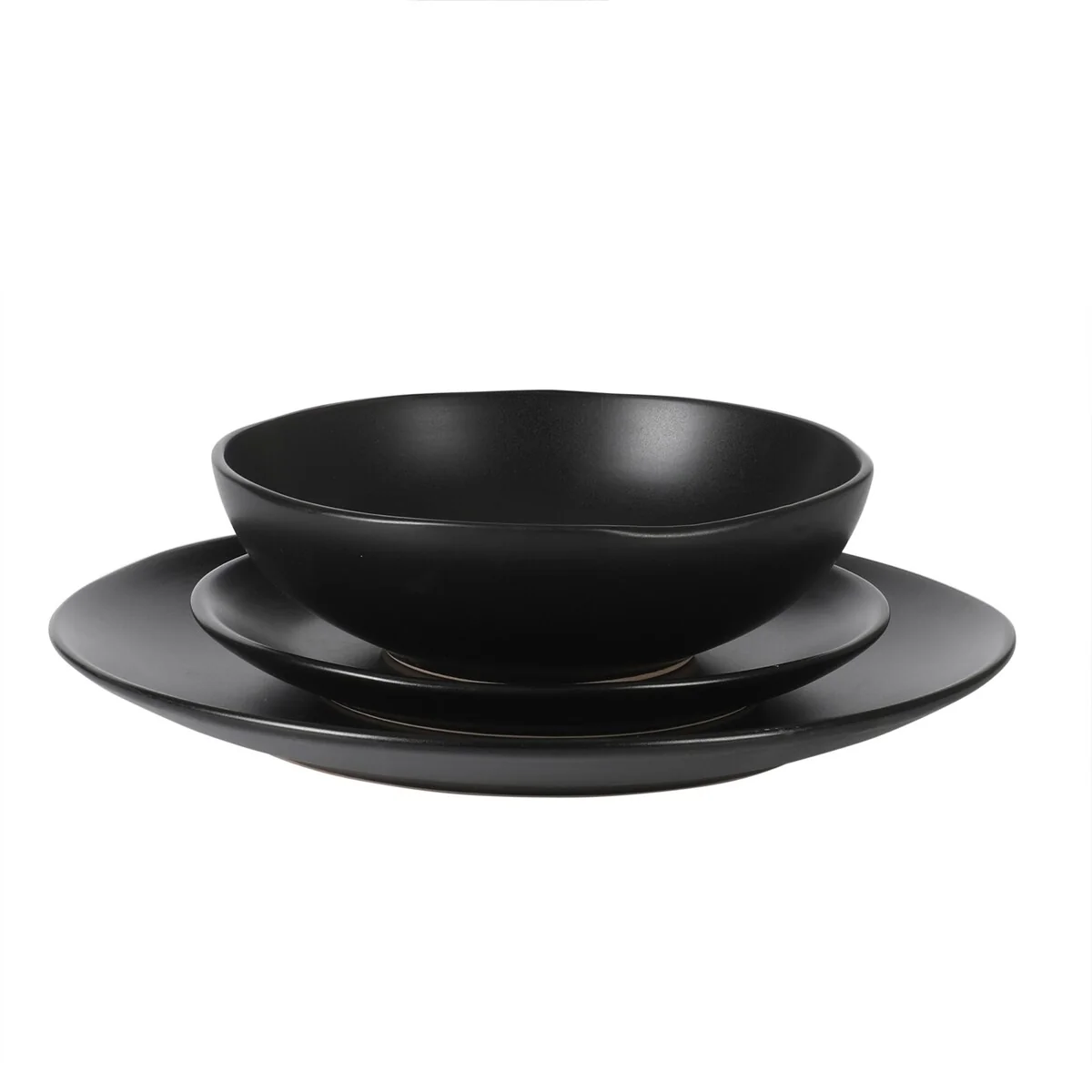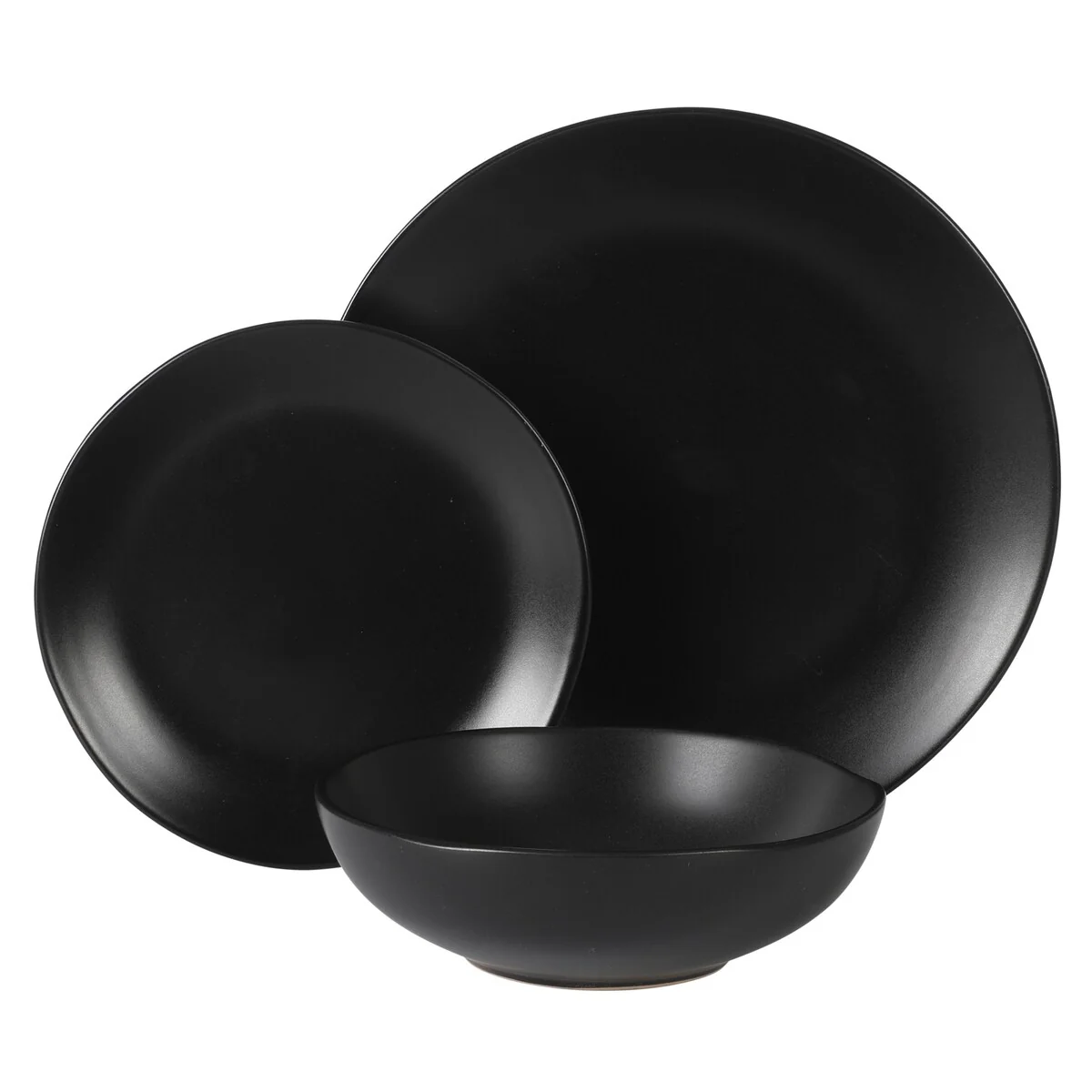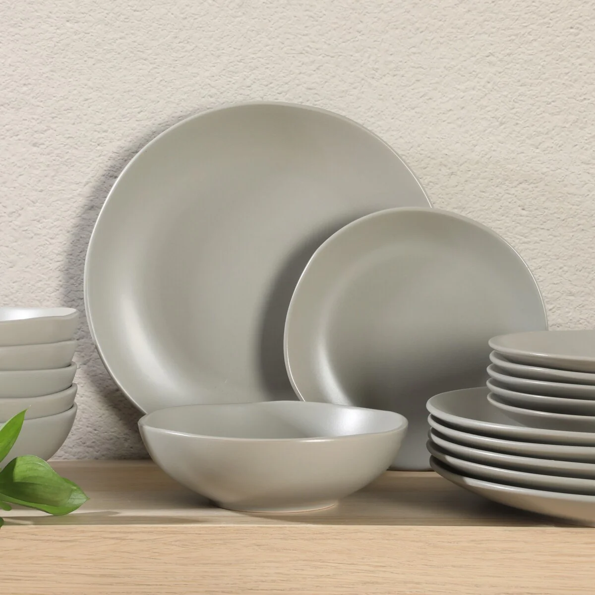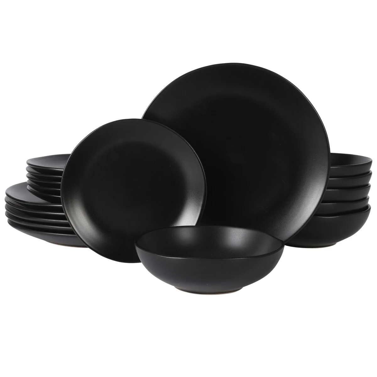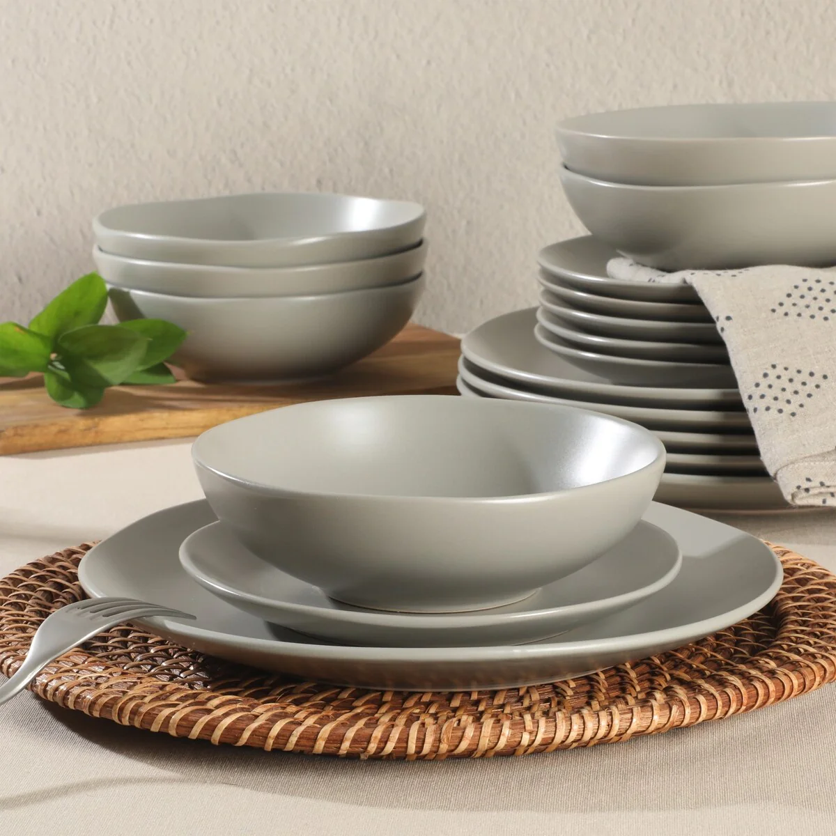 Set the stage for interesting conversations and delicious meals with the Bethel 18-piece Matte Stoneware Dinnerware Set from Gibson Home. A durable selection of stoneware plates and bowls, this collection offers a handmade look and feel through the rustic and organic contours of each piece for beautiful plating options and serving presentations. Matte glazed finish compliments the stylish color of the plates and bowls to fit into any setting and occasion. Pick and play with this dinnerware set by layering them with other pieces in bold colors or vibrant patterns to opt for an easy upgrade to your everyday table. Dishwasher and microwave safe.