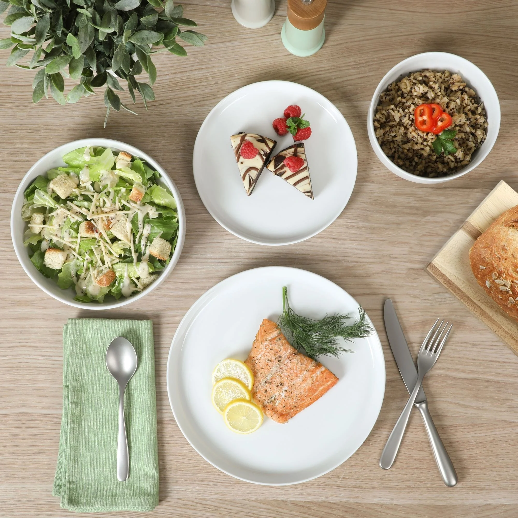 * A COMPLETE SET INCLUDES : Four 10.5-inch dinner plates, four 8-inch dessert plates, four 6-inch cereal bowls and four 8-inch dinner bowls. Suitable for a service for four.