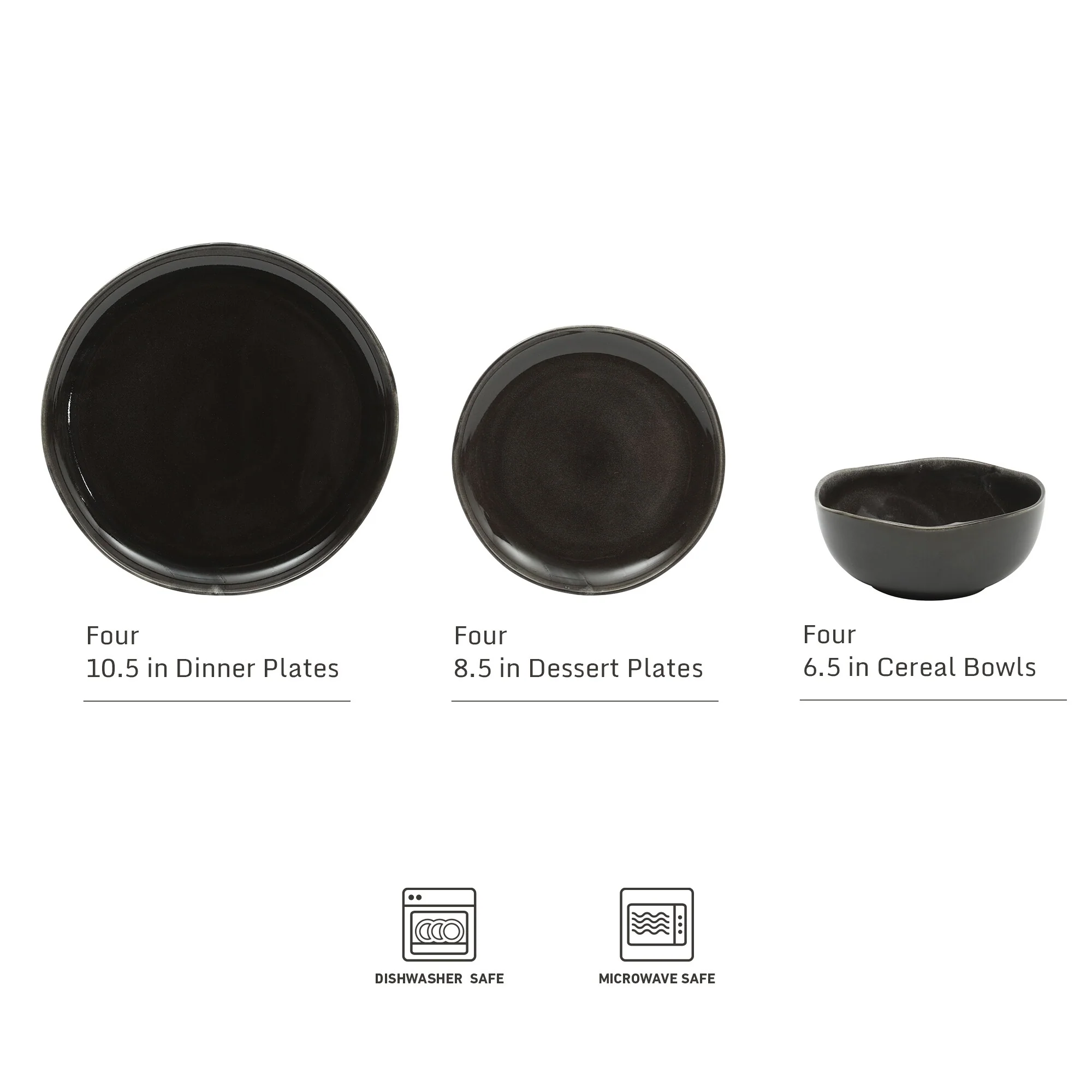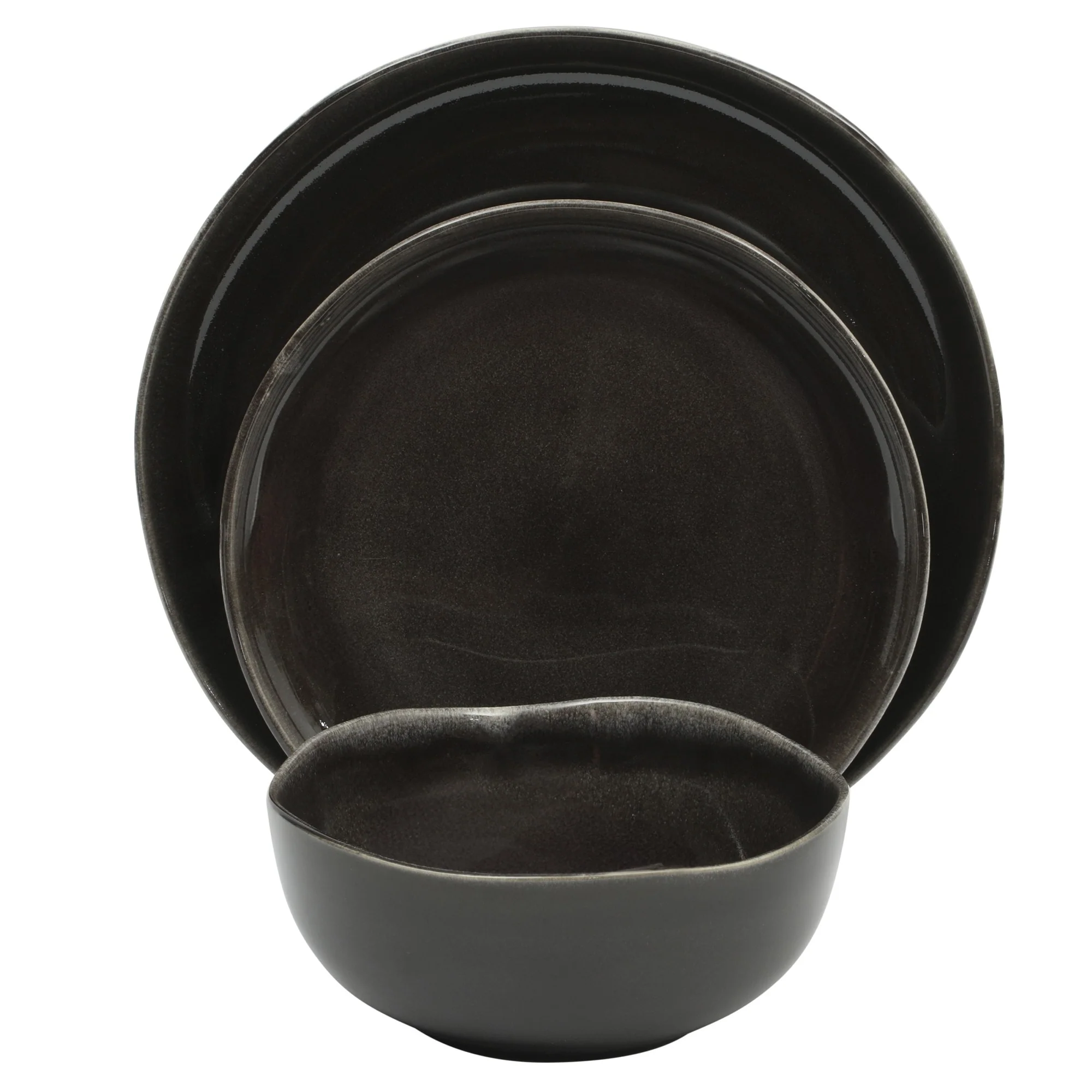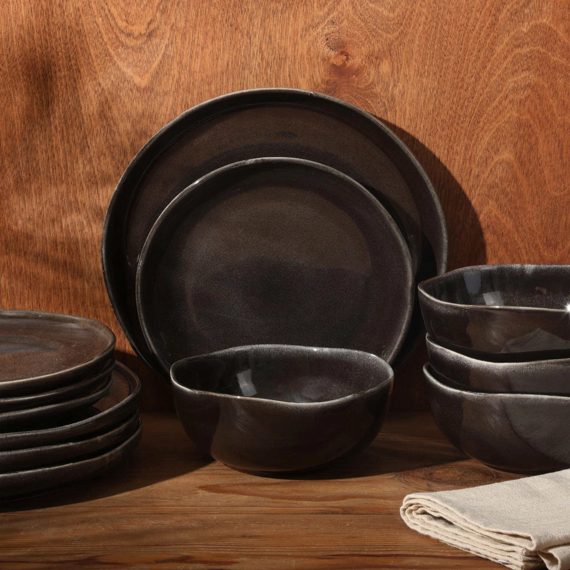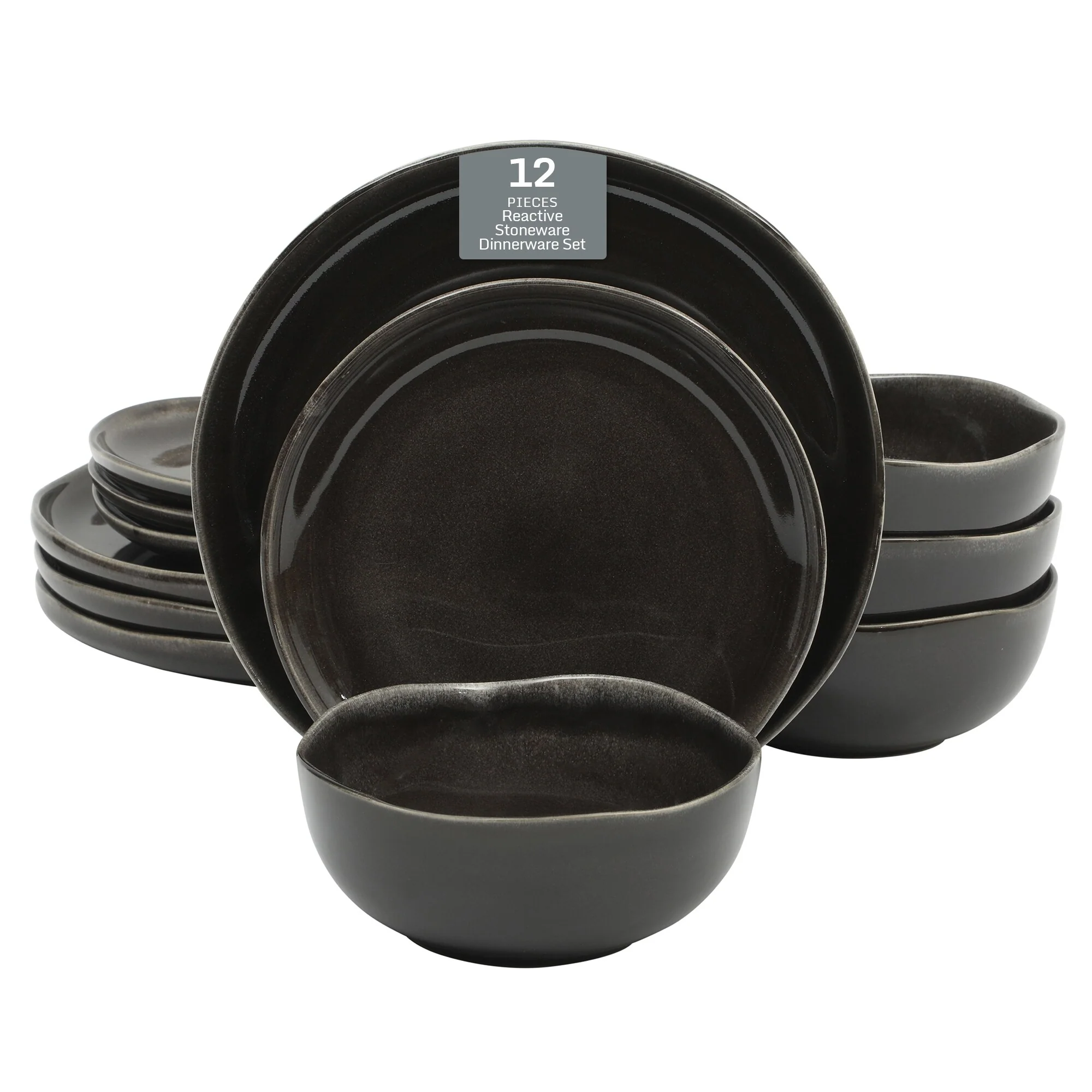 A collection of plates and bowls rich in style and visual appeal, the Soho Lounge Nardini 12-piece Reactive Stoneware Dinnerware Set abounds with artisanal details to spruce up any table spread. Crafted from durable stoneware, each piece is fired at high temperatures for a non-porous surface to resist wear and tear from everyday use. Natural variations due to the reactive glaze technique make each piece special and one-of-a-kind. Put a bow on each box to present as a thoughtful gift for birthdays, weddings, housewarming, and other special holidays. Dishwasher and microwave safe.