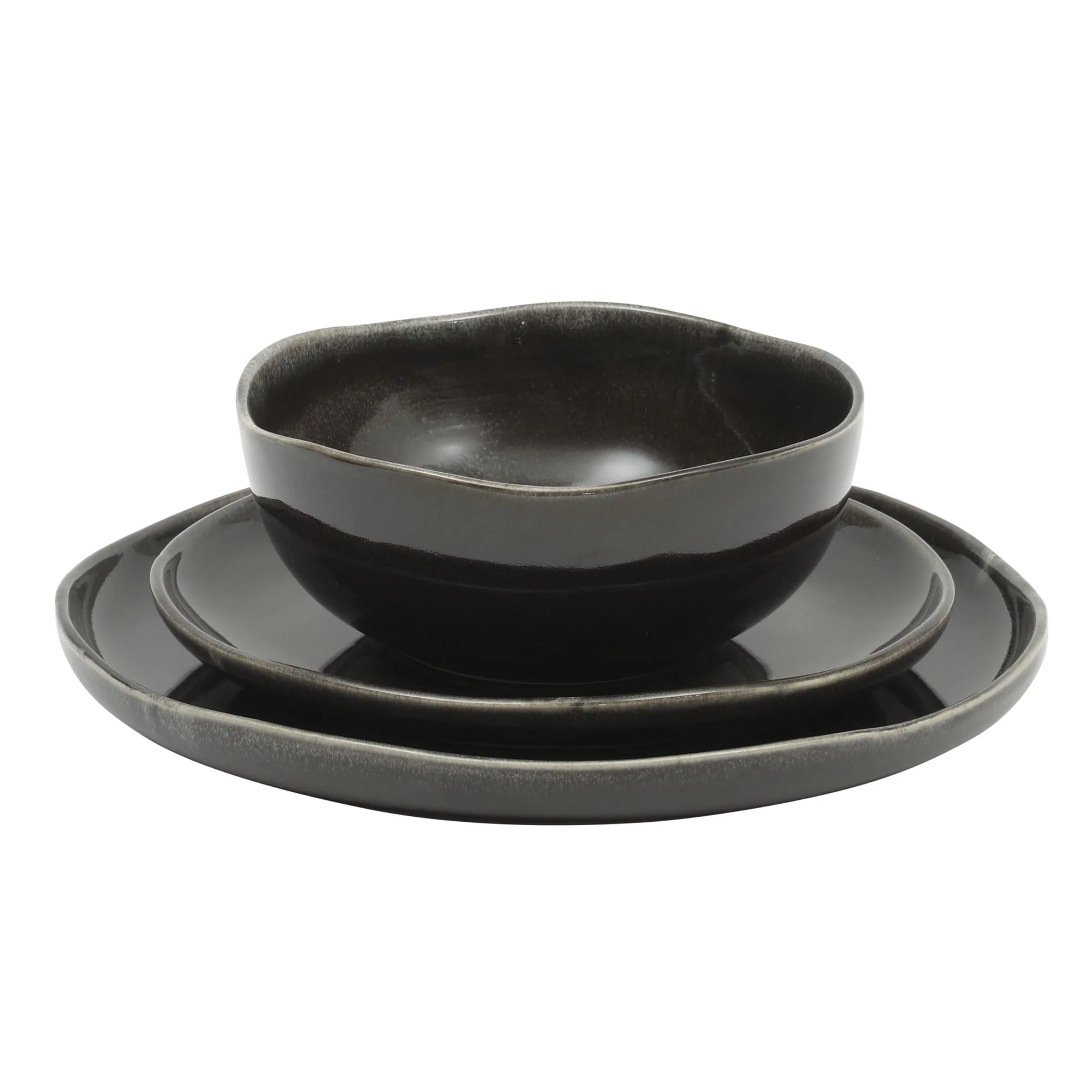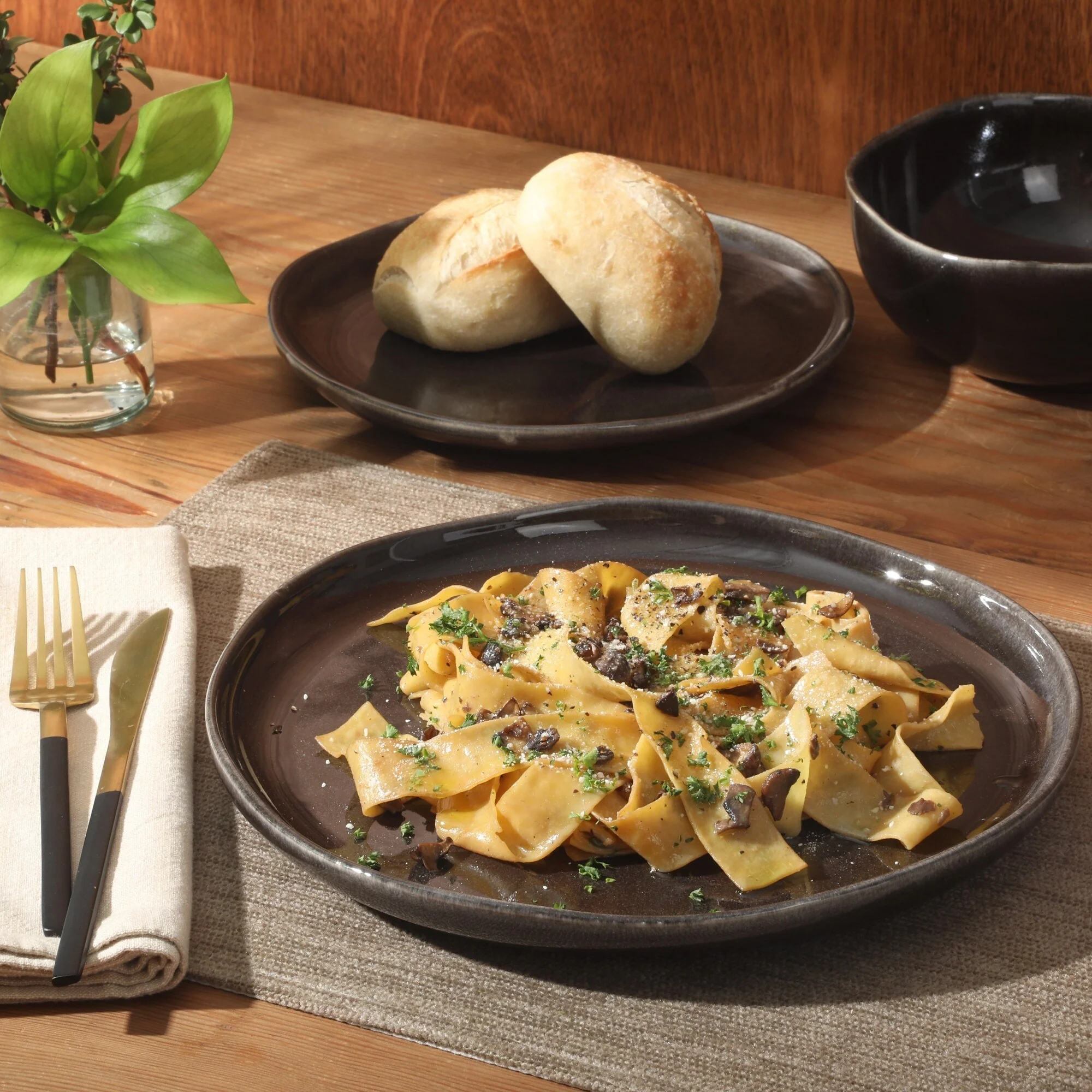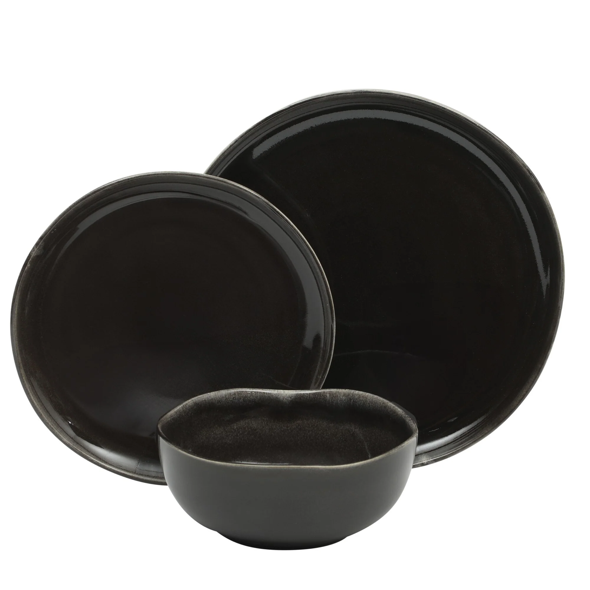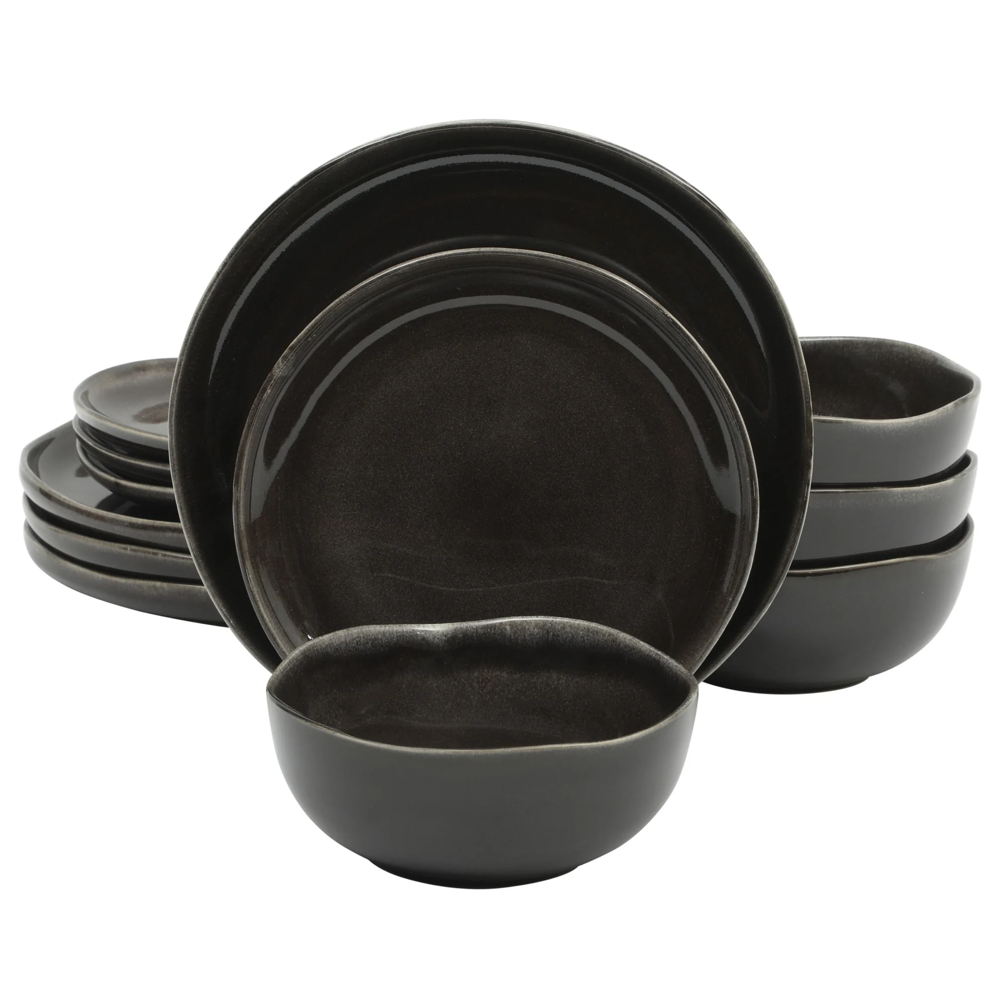 A collection of plates and bowls rich in style and visual appeal, the Soho Lounge Nardini 12-piece Reactive Stoneware Dinnerware Set abounds with artisanal details to spruce up any table spread. Crafted from durable stoneware, each piece is fired at high temperatures for a non-porous surface to resist wear and tear from everyday use. Natural variations due to the reactive glaze technique make each piece special and one-of-a-kind. Put a bow on each box to present as a thoughtful gift for birthdays, weddings, housewarming, and other special holidays. Dishwasher and microwave safe.