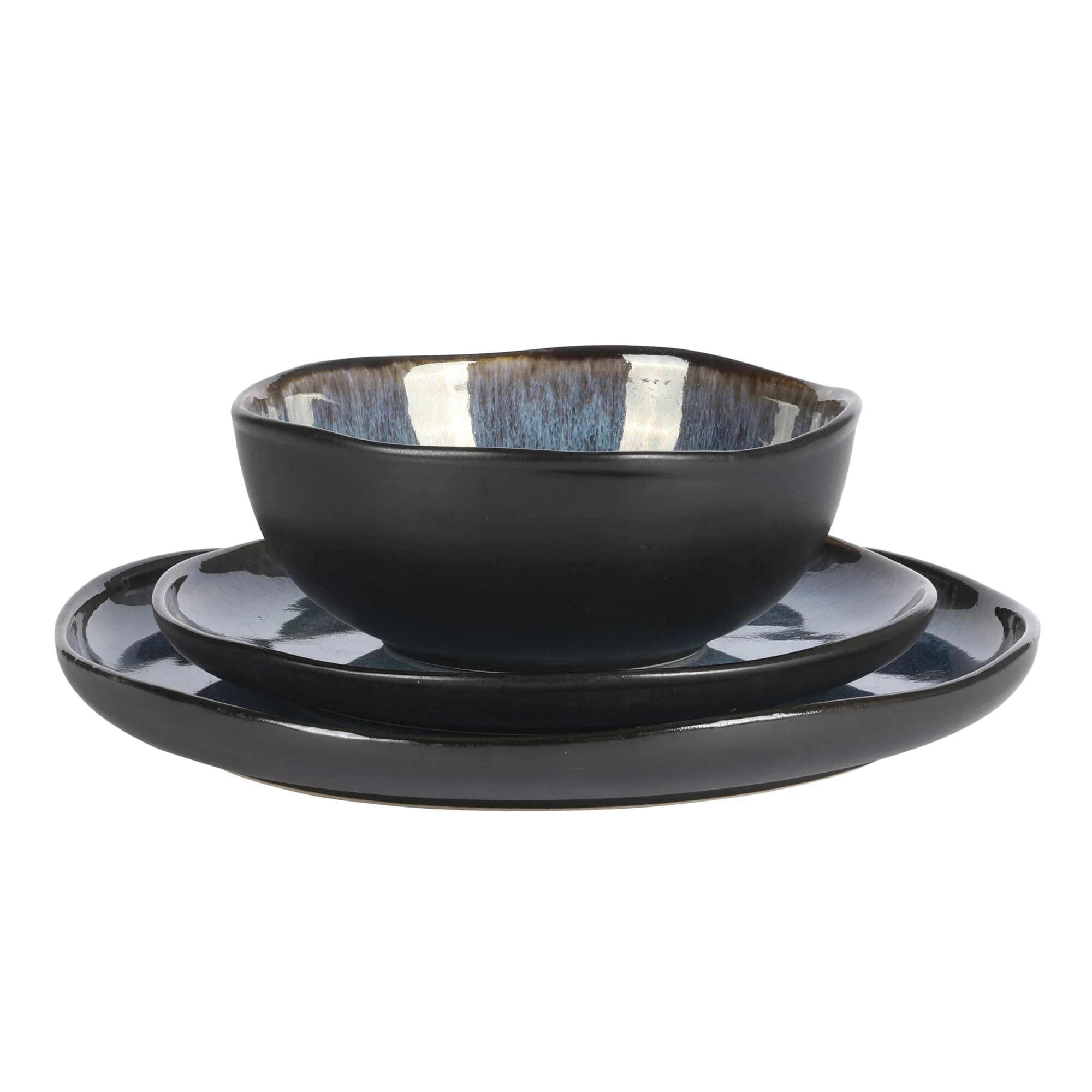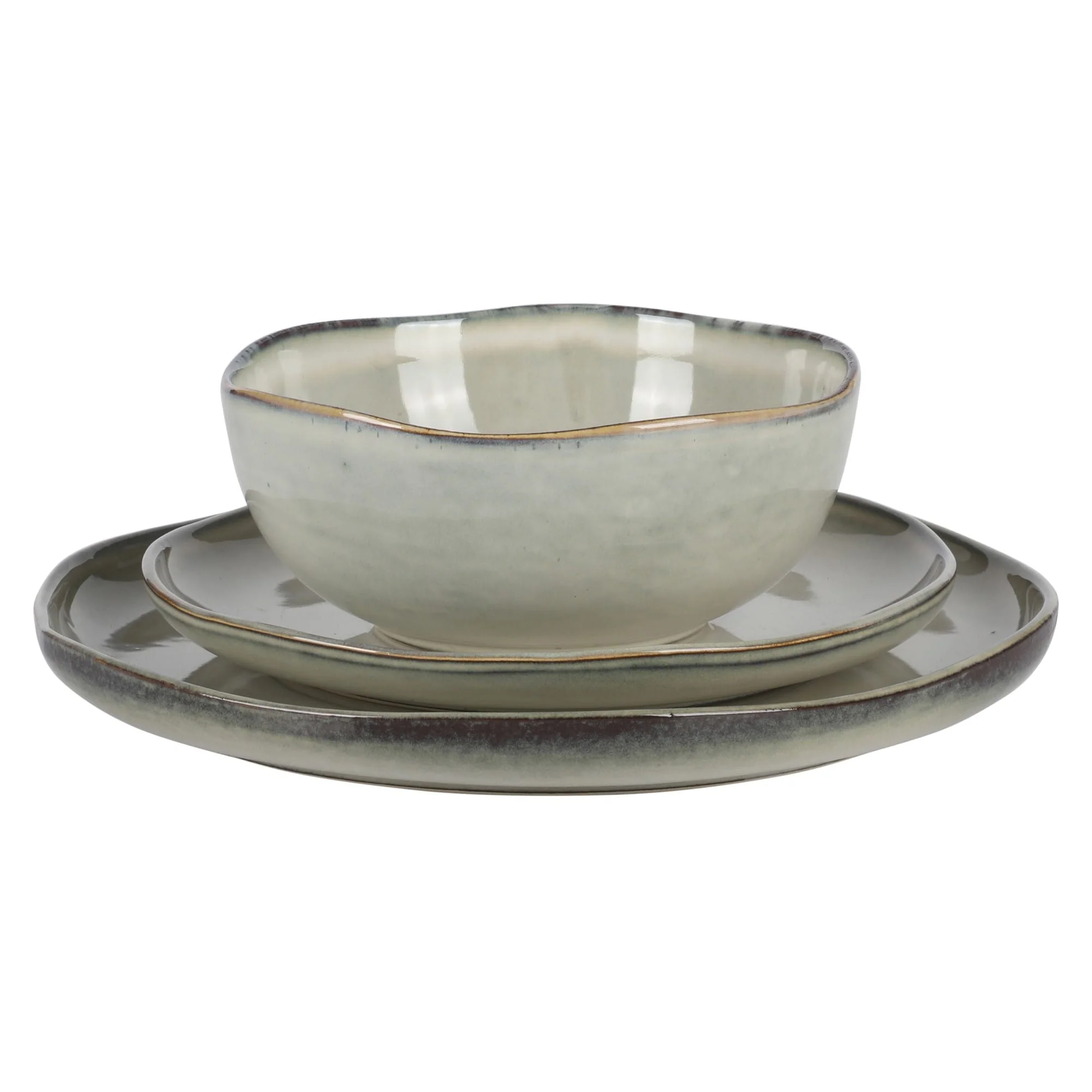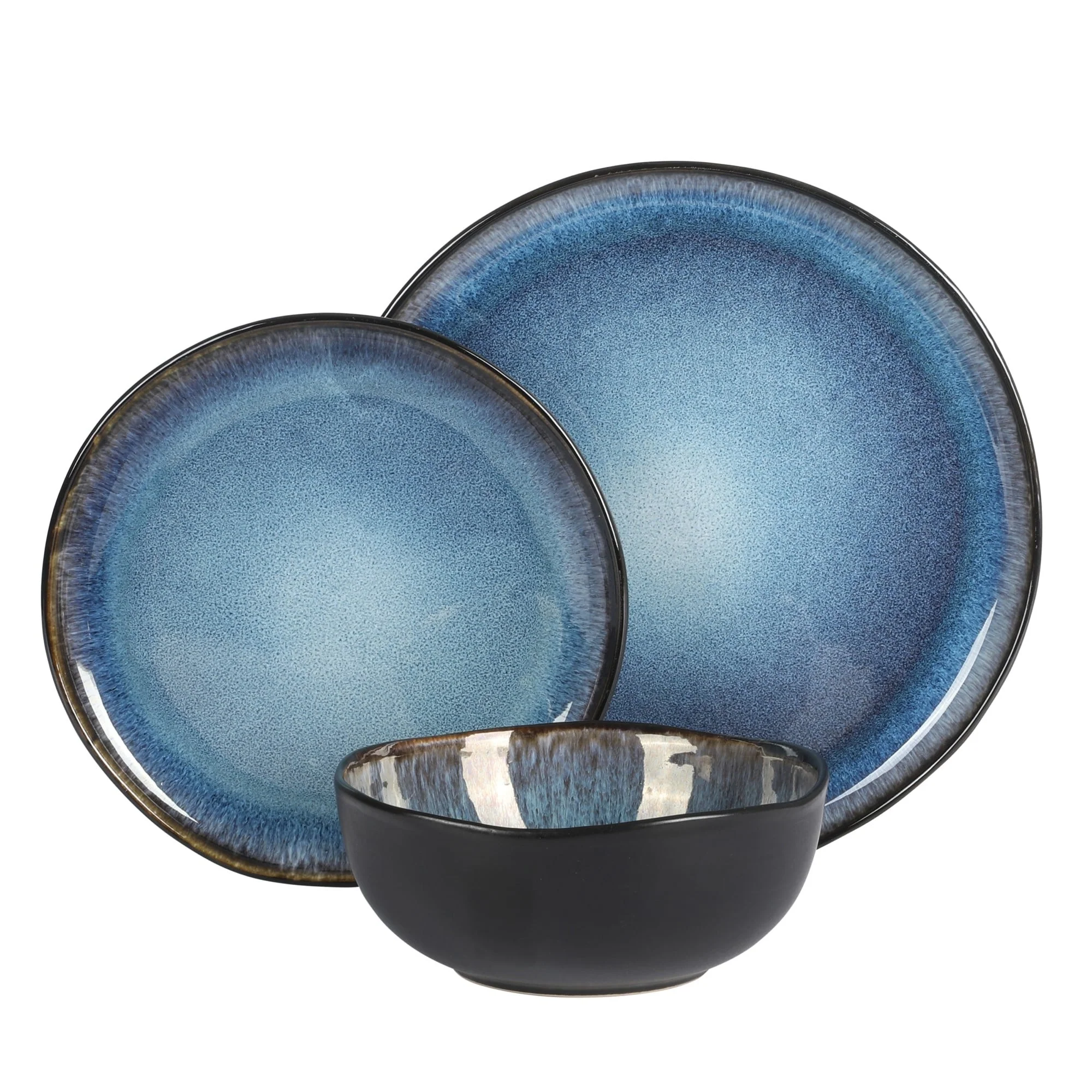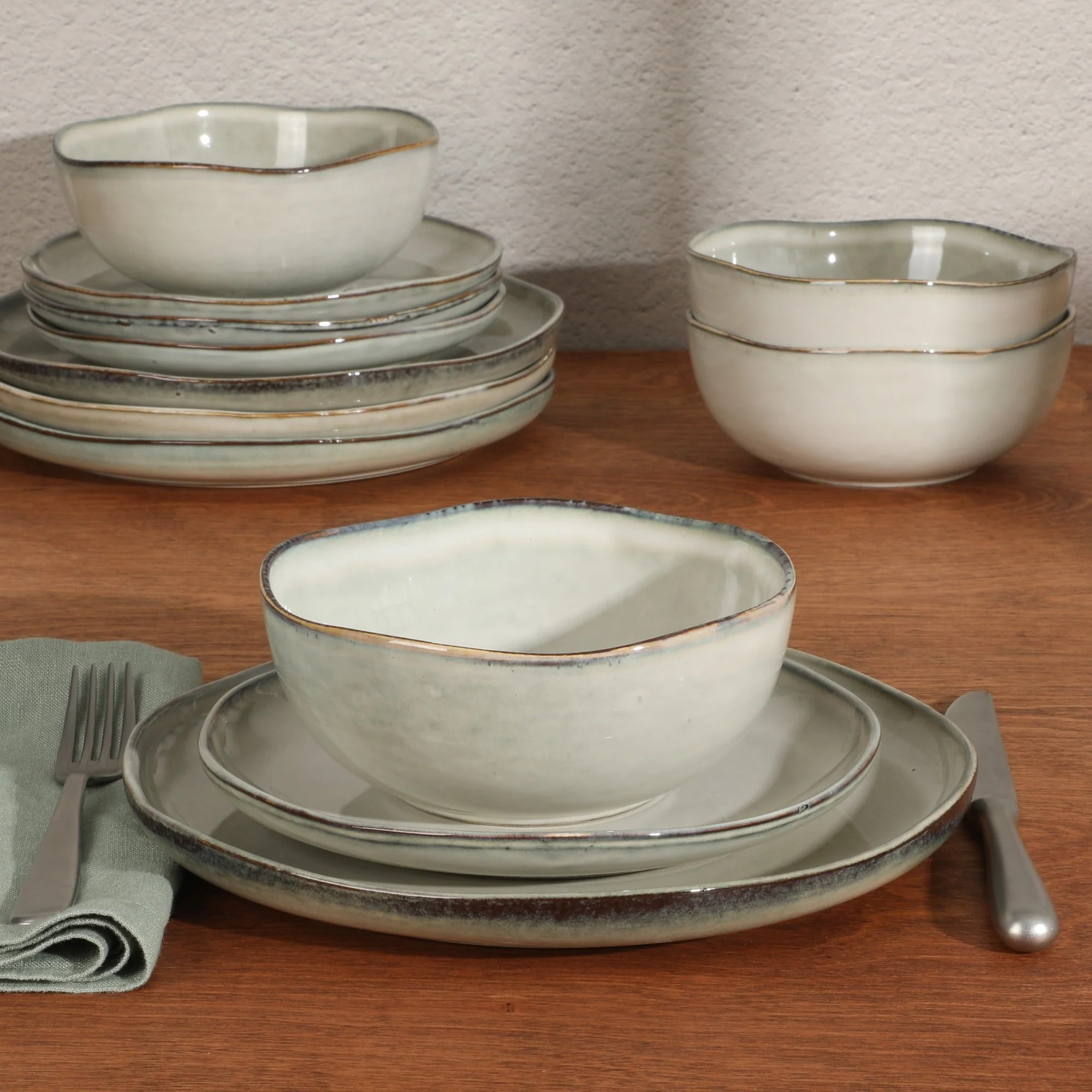 A collection of plates and bowls rich in style and visual appeal, the Soho Lounge Nardini 12-piece Reactive Stoneware Dinnerware Set abounds with artisanal details to spruce up any table spread. Crafted from durable stoneware, each piece is fired at high temperatures for a non-porous surface to resist wear and tear from everyday use. Natural variations due to the reactive glaze technique make each piece special and one-of-a-kind. Put a bow on each box to present as a thoughtful gift for birthdays, weddings, housewarming, and other special holidays. Dishwasher and microwave safe.