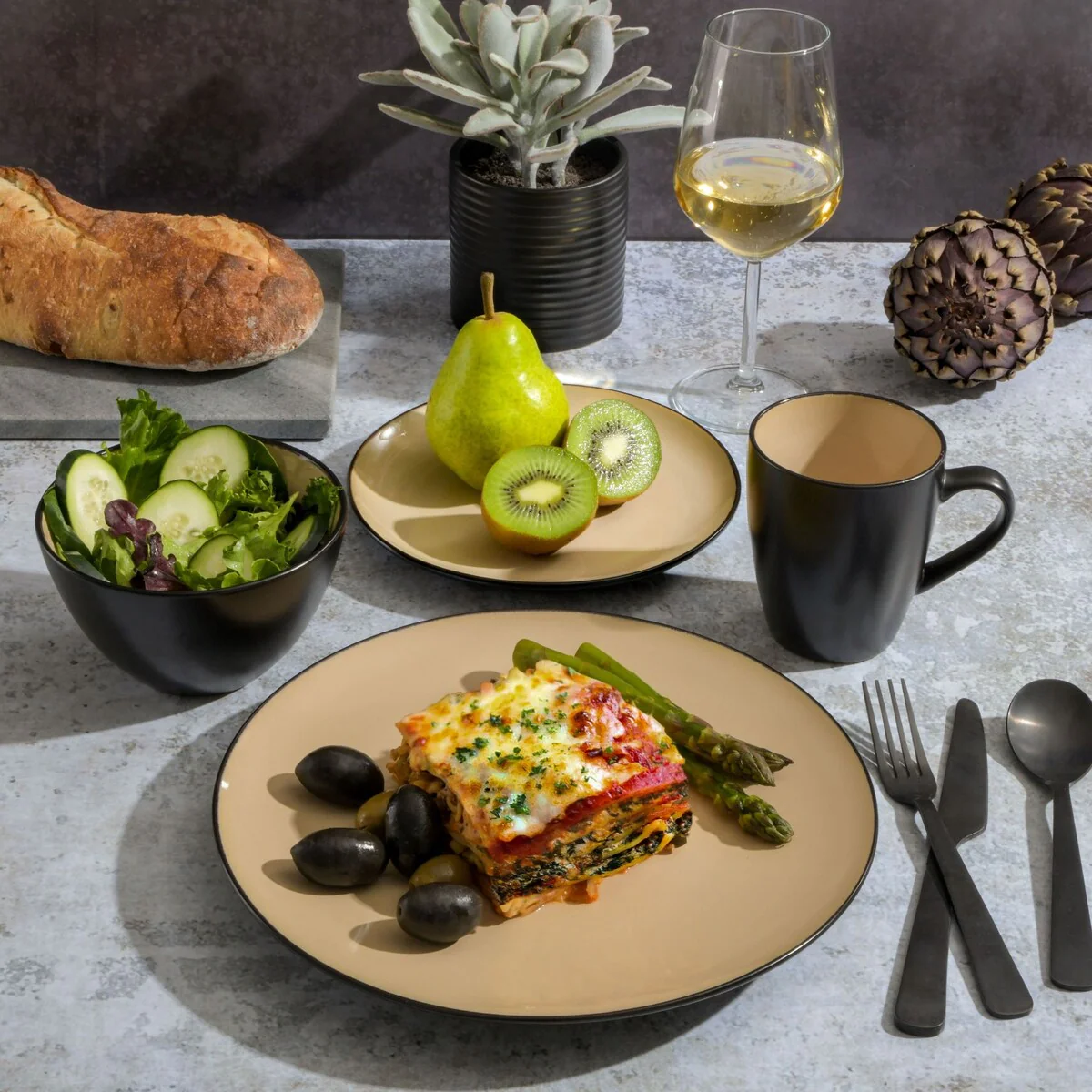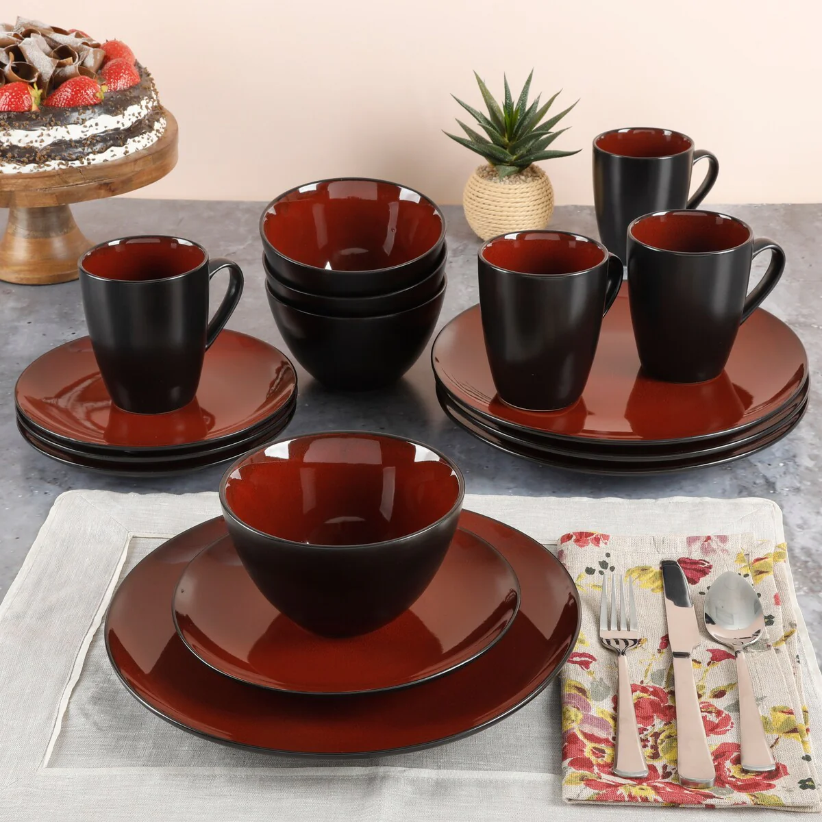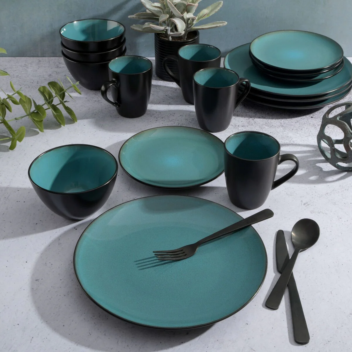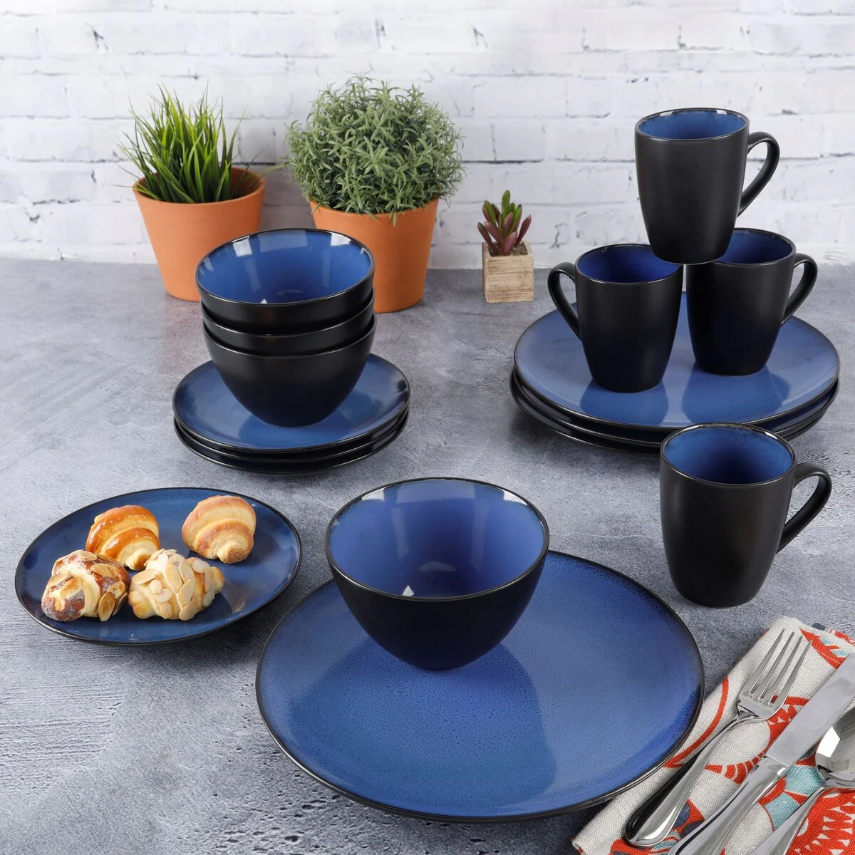 * CONTEMPORARY DESIGN: artisanal reactive glaze featuring natural organic blue hues creating a modern elegance to the dinnerware set. The durable stoneware and reactive glaze make these sets difficult to scratch and break