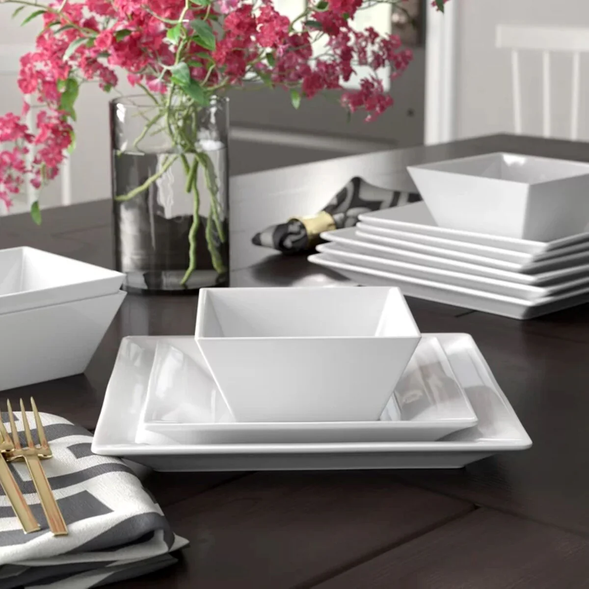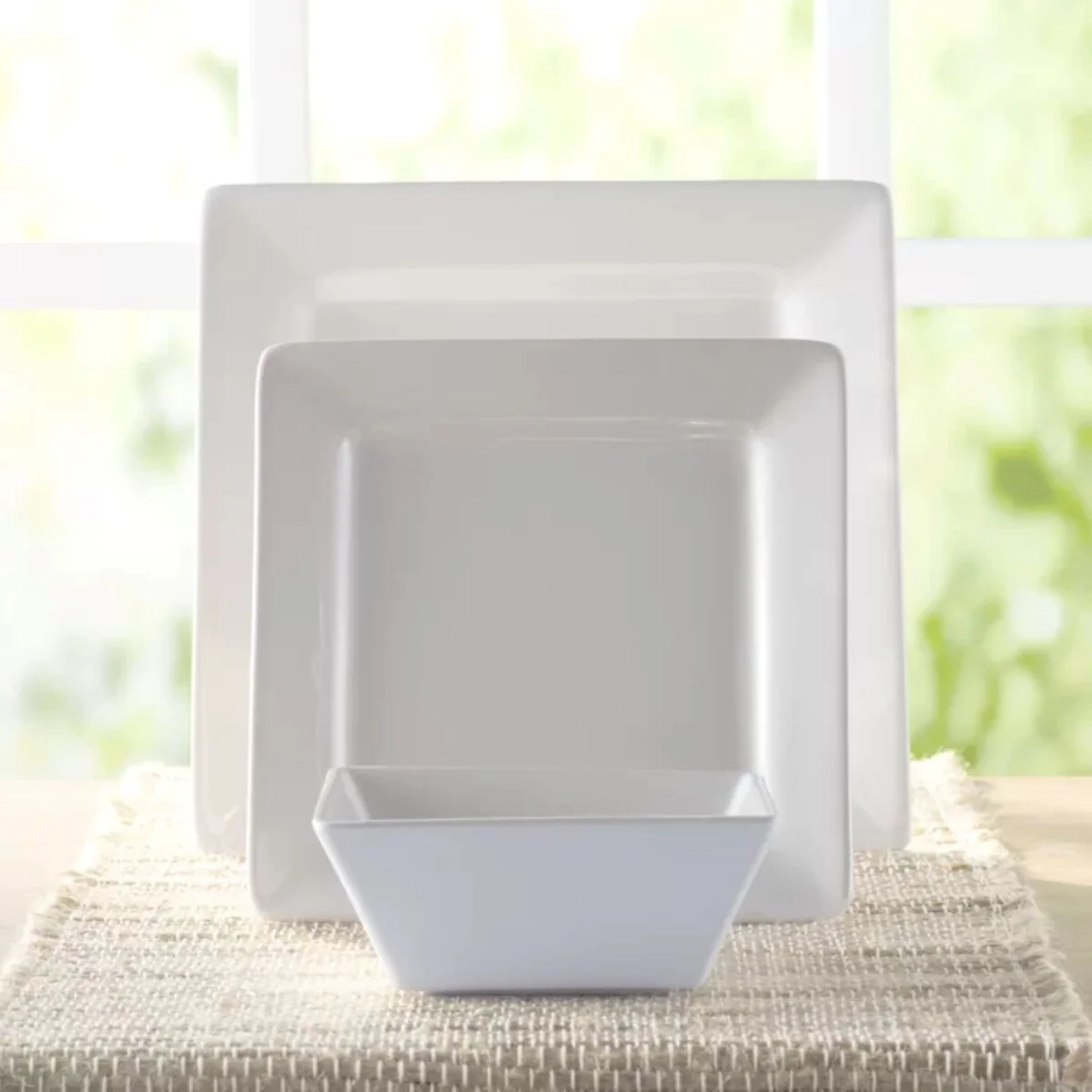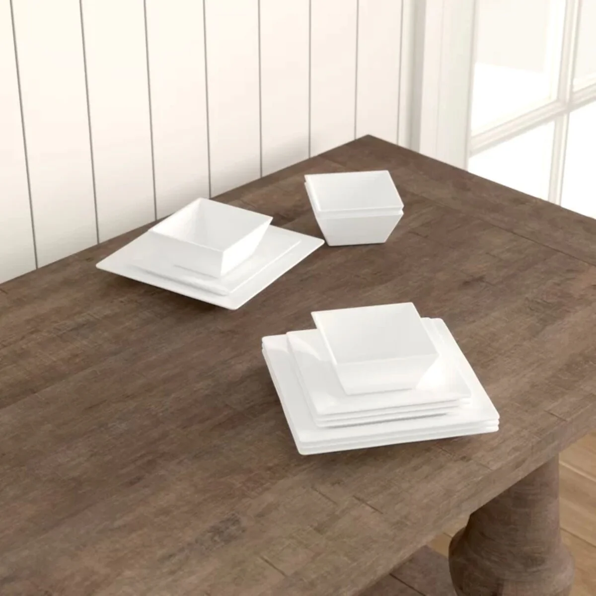 - Set includes: Four (4) Dinner Plates, Four (4) Salad Plates, and Four (4) Bowls.