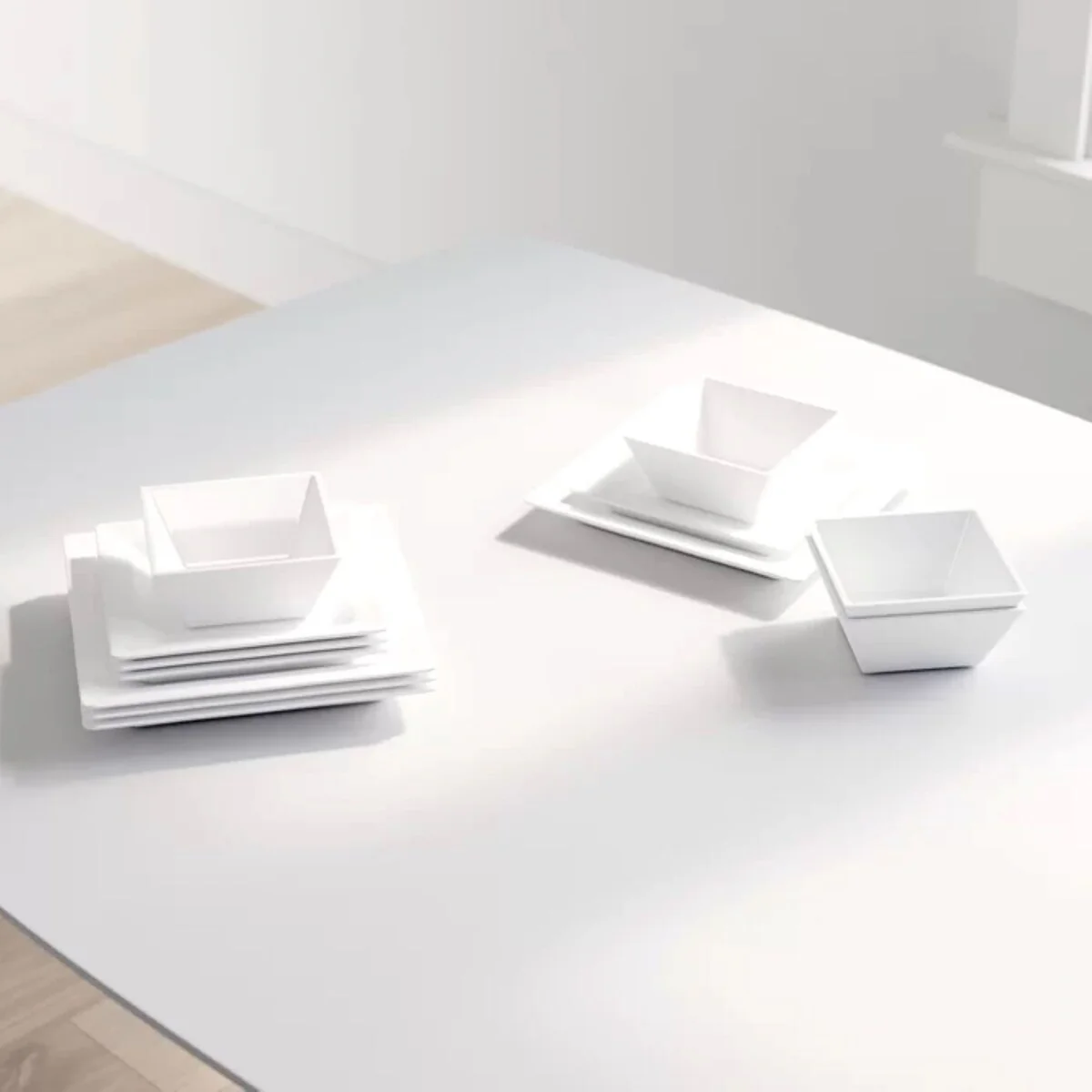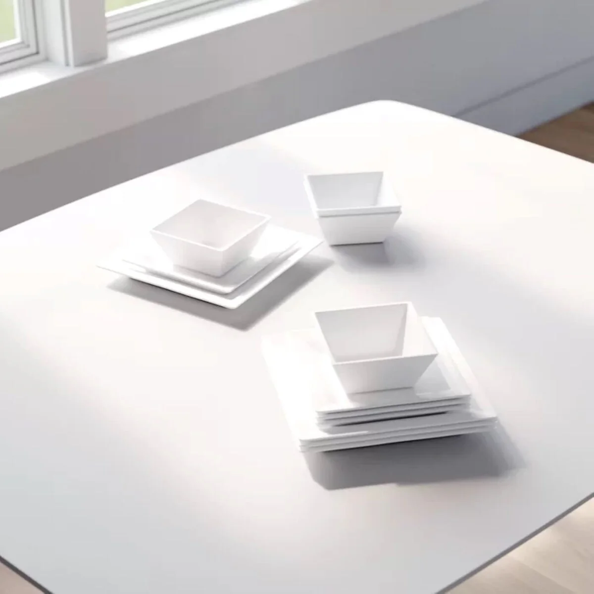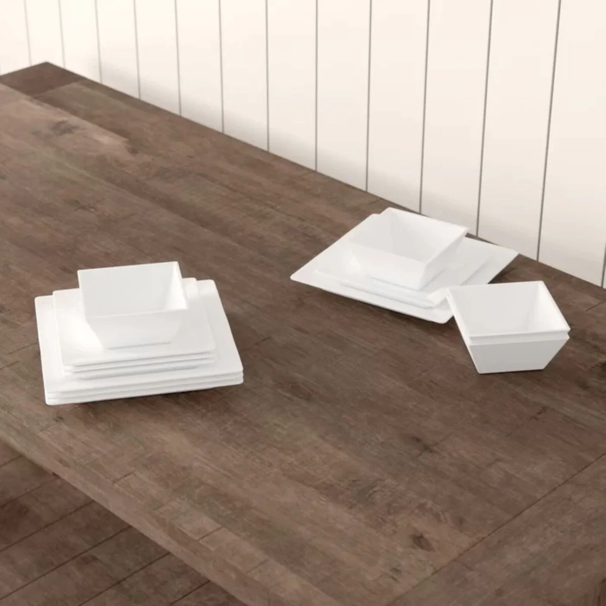 - Set includes: Four (4) Dinner Plates, Four (4) Salad Plates, and Four (4) Bowls.