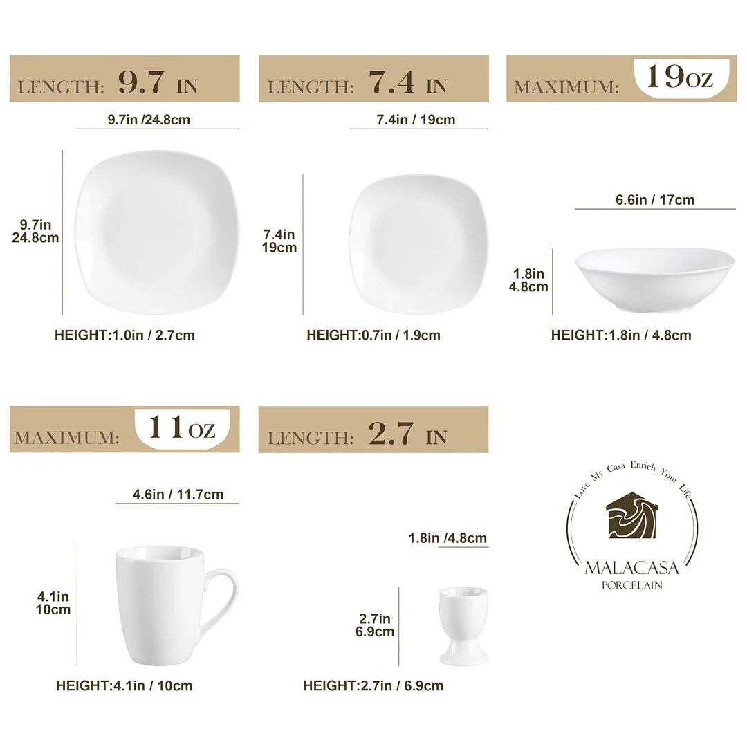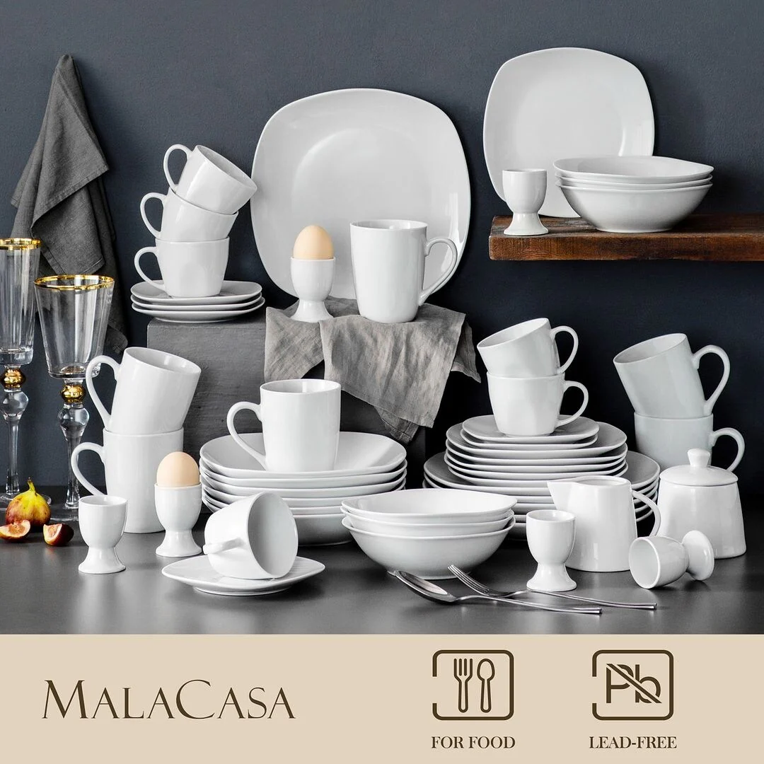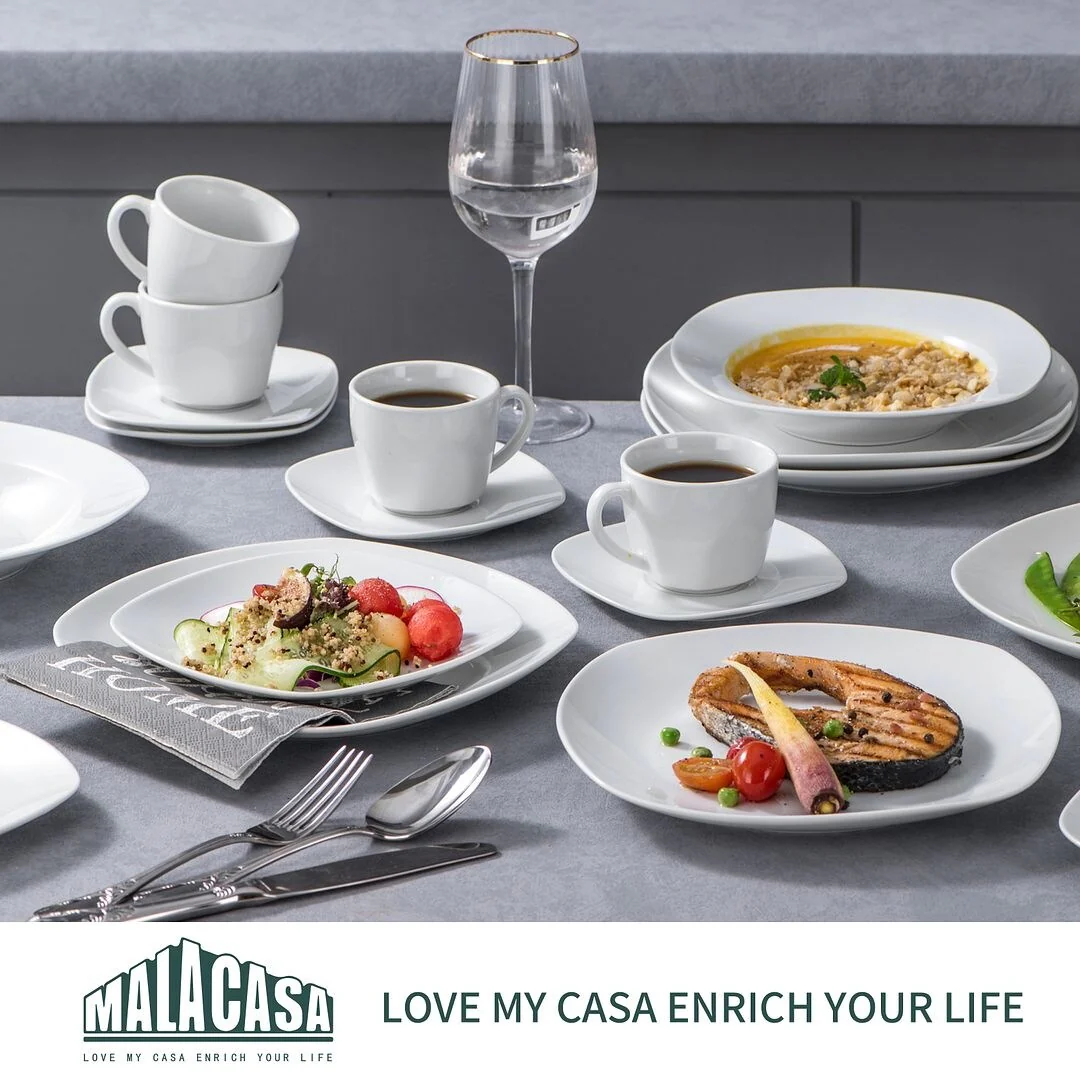 Upgrade your dinnerware collection with MALACASA Elisa Basic Porcelain Dinnerware Set. With a sleek, modern design, this high-quality porcelain set is perfect for daily use and special occasions. The set features three different sizes of plates and your choice of exclusive cup & saucer set or bowl set. It's FDA certified, BPA free, non-lead, and non-cadmium, ensuring safety and durability. This microwave, dishwasher, and freezer safe set is hassle-free to clean, making it perfect for family get-togethers and dining with friends. Enjoy the beauty of life with this exquisite and elegant porcelain dinnerware set.