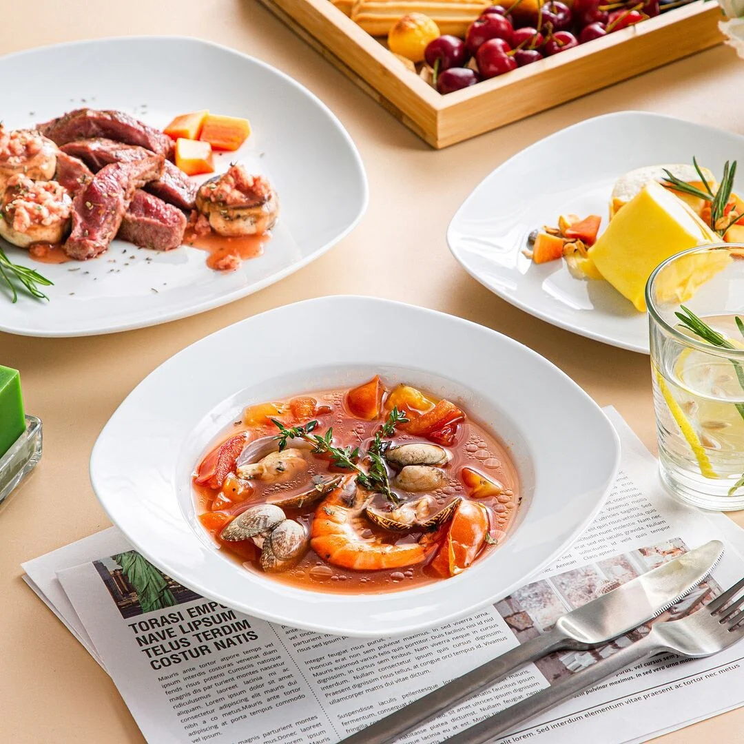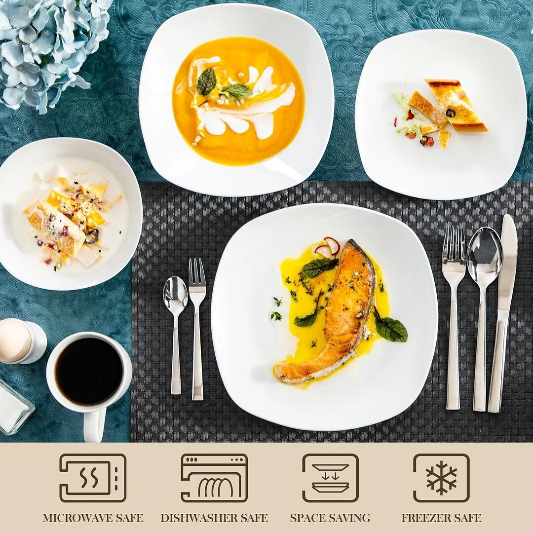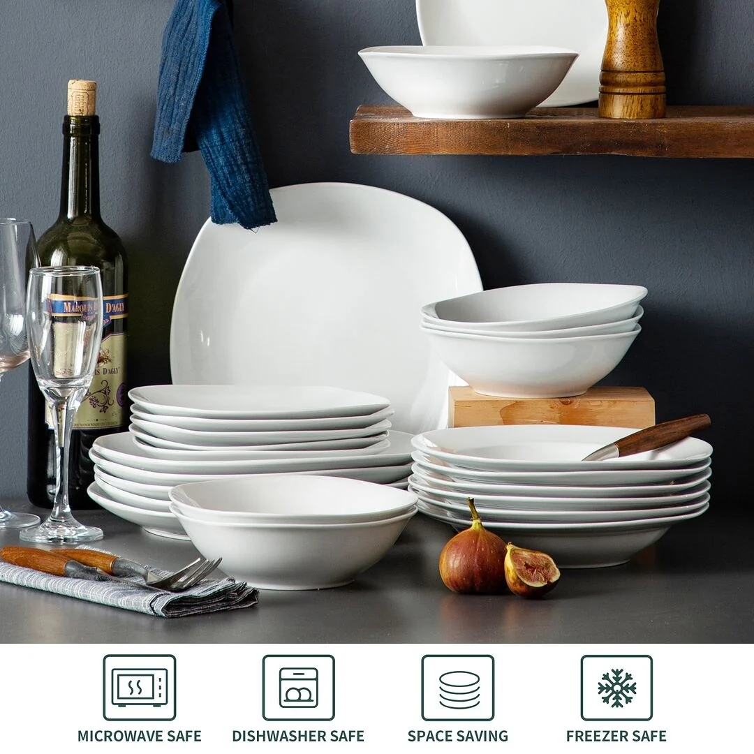 Upgrade your dinnerware collection with MALACASA Elisa Basic Porcelain Dinnerware Set. With a sleek, modern design, this high-quality porcelain set is perfect for daily use and special occasions. The set features three different sizes of plates and your choice of exclusive cup & saucer set or bowl set. It's FDA certified, BPA free, non-lead, and non-cadmium, ensuring safety and durability. This microwave, dishwasher, and freezer safe set is hassle-free to clean, making it perfect for family get-togethers and dining with friends. Enjoy the beauty of life with this exquisite and elegant porcelain dinnerware set.