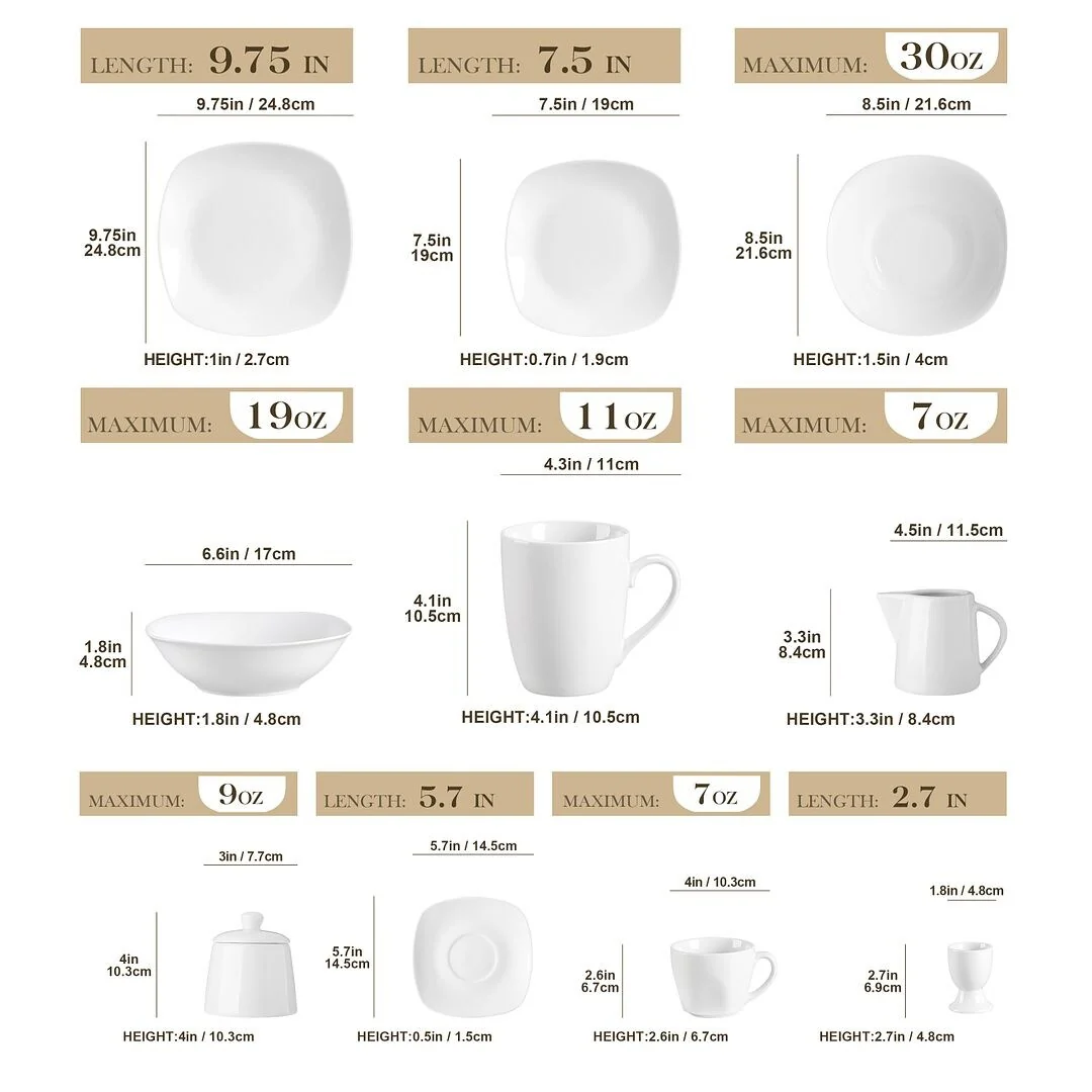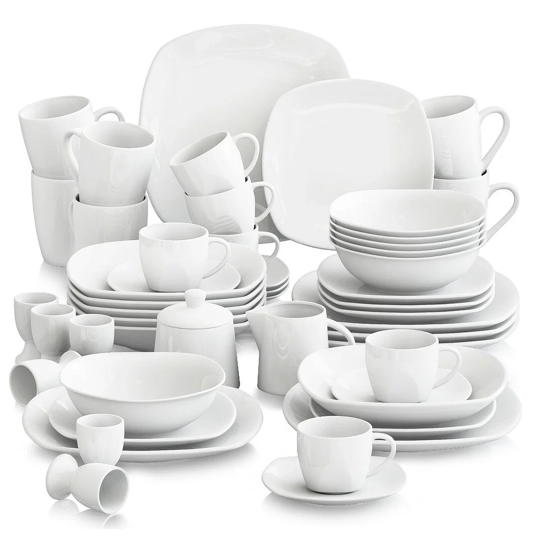 Elevate your dining experience with this MALACASA Elisa White Porcelain 50-piece Dinnerware Set. Crafted from high-quality porcelain, this set features a contemporary rounded square design that is both simple and stylish.