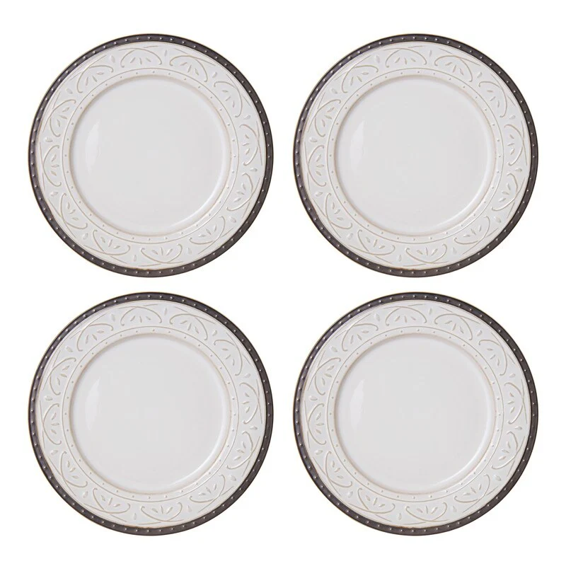 Bring simple style to family meals with this Pfaltzgraff Promenade Scroll 16-piece dinnerware set. The subtle ringed pattern offers timeless beauty, and the durable stoneware construction is dishwasher and microwave safe for added versatility. This set features service for four, making it easy to set the table for weeknight feasts or intimate dinner parties.