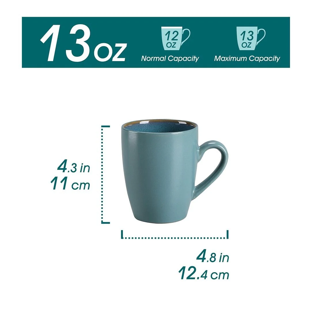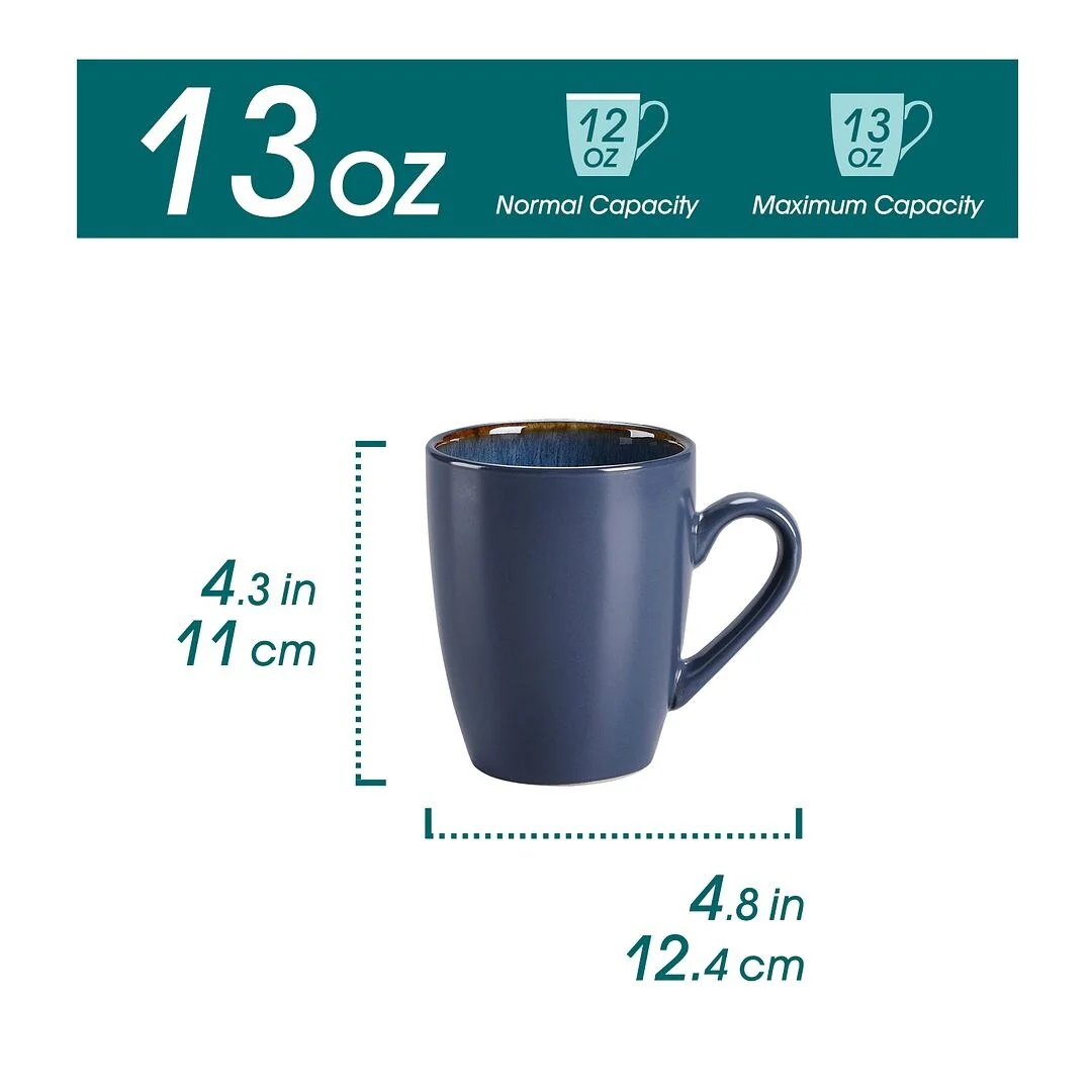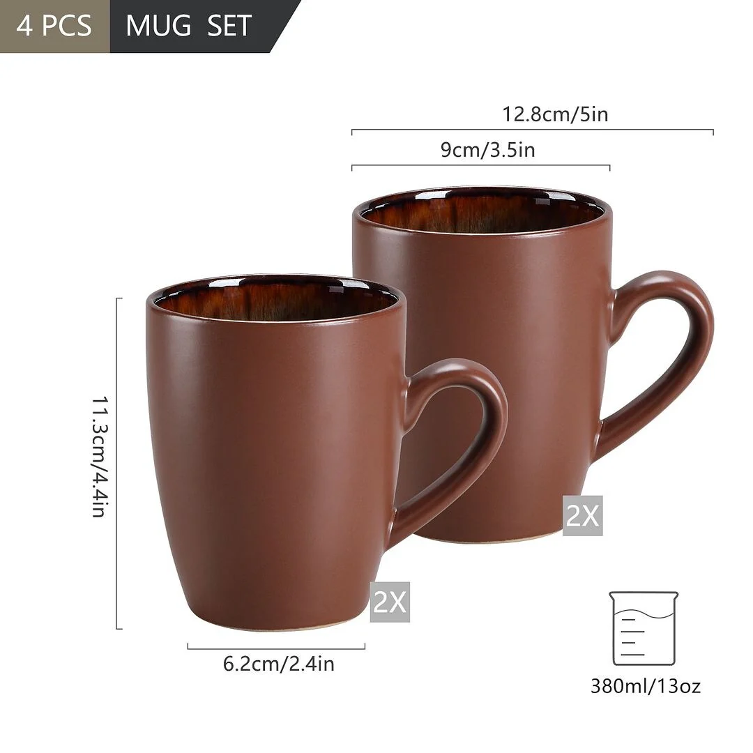 - 4pcs coffee mugs Includes: 4pc 6.2' Mug 13 Oz.