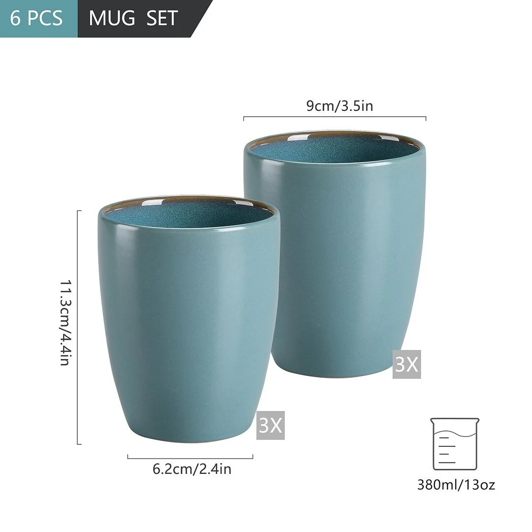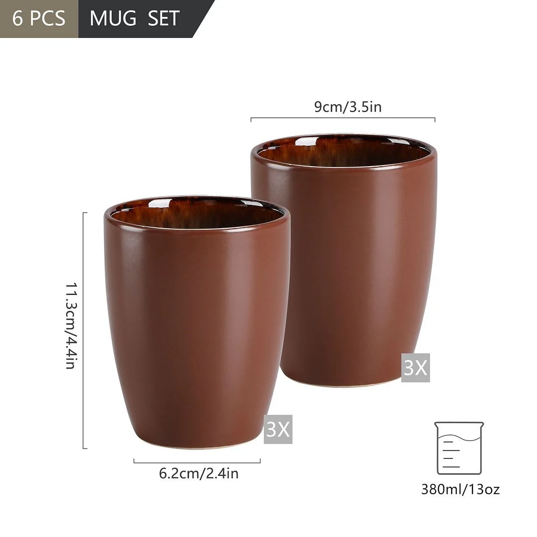 - 6pcs Handleless Mug Includes: 6pc 6.2' Mug 13 Oz.