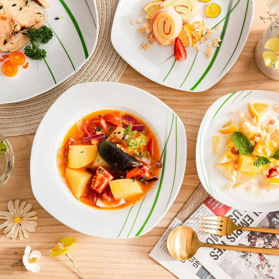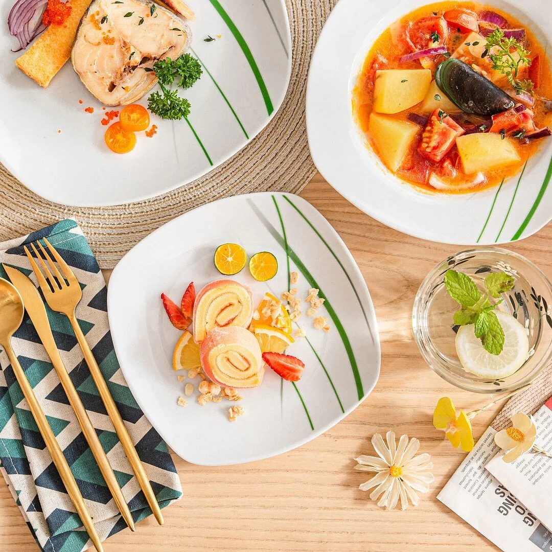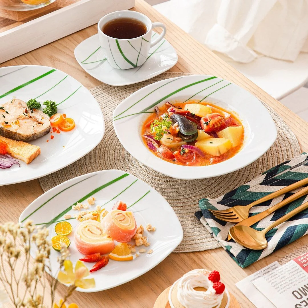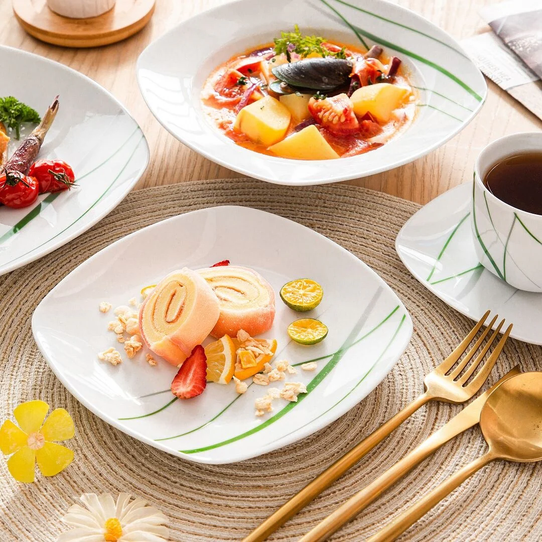 The exquisite green striped dinner plate set adds a sense of luxury, which can highlight the deliciousness of exquisite dishes in daily life and special dinner days. It is the best choice for festival gifts and daily use.