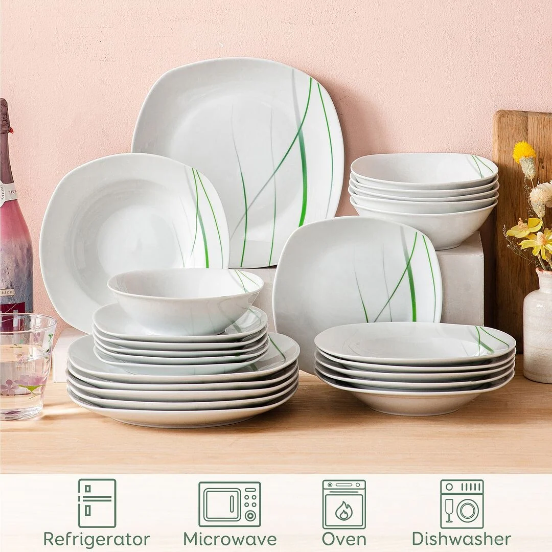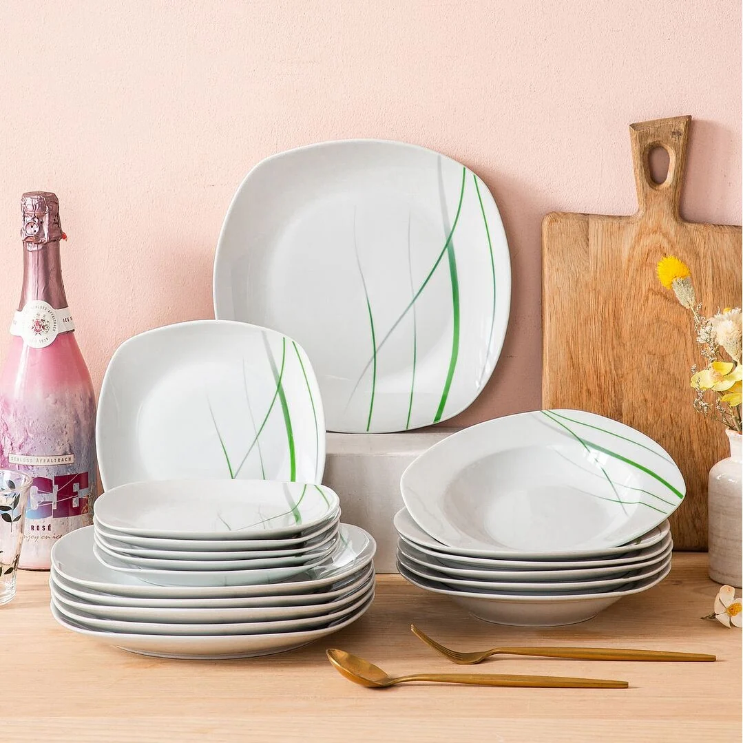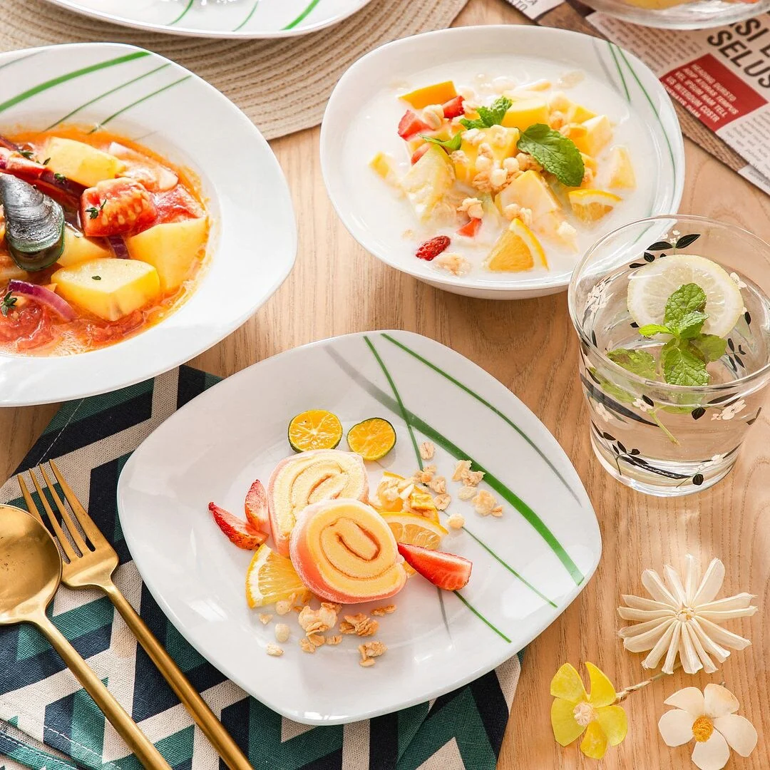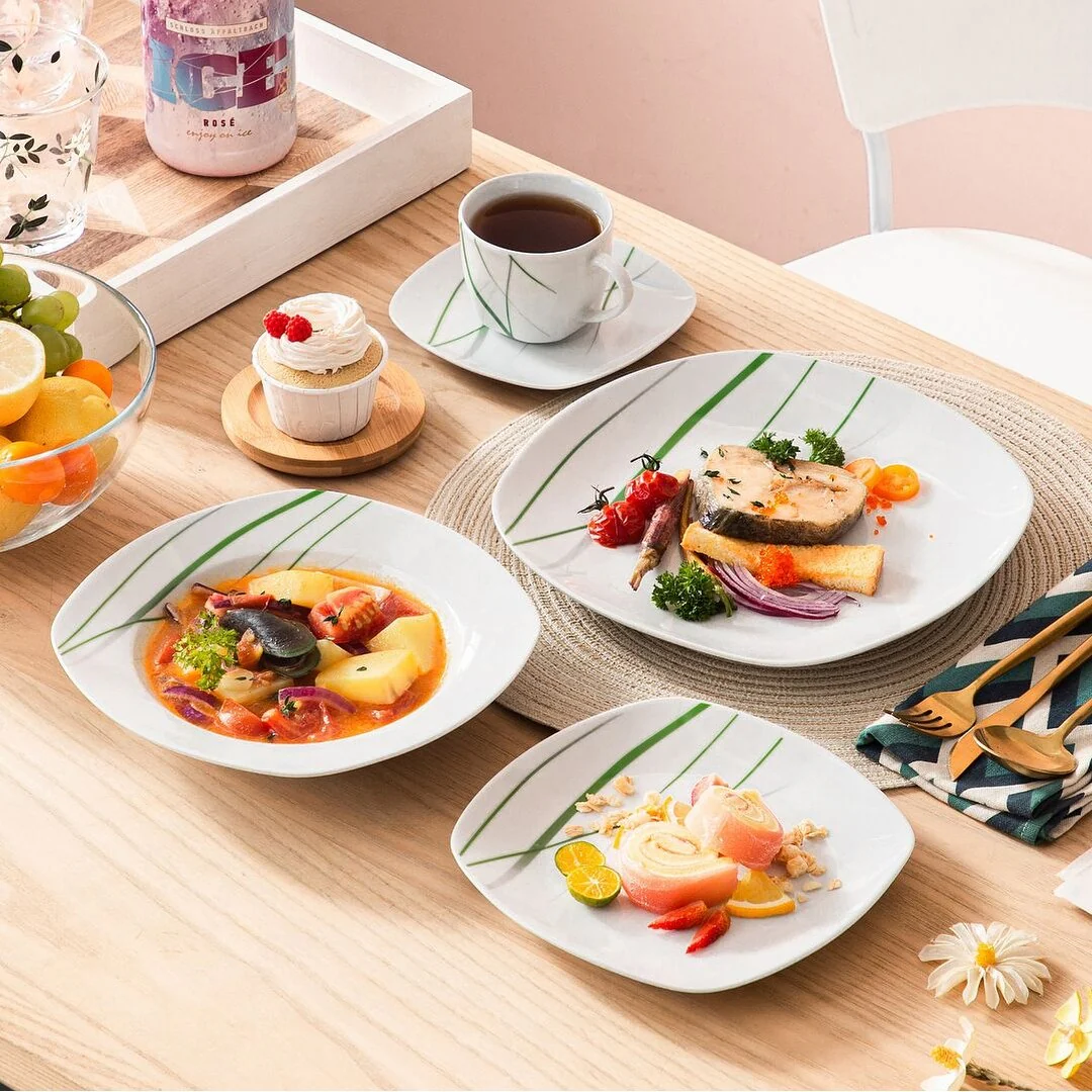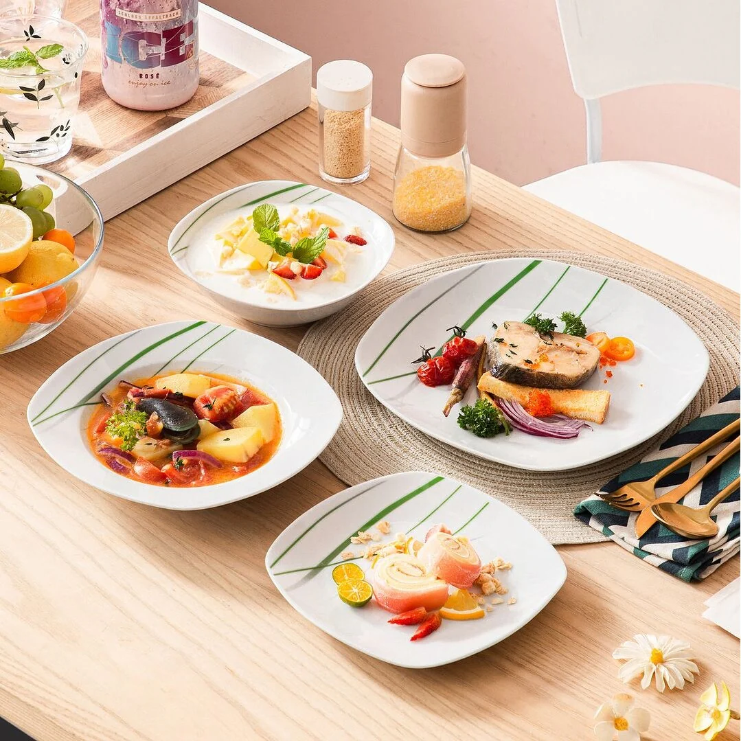 The exquisite green striped dinner plate set adds a sense of luxury, which can highlight the deliciousness of exquisite dishes in daily life and special dinner days. It is the best choice for festival gifts and daily use.