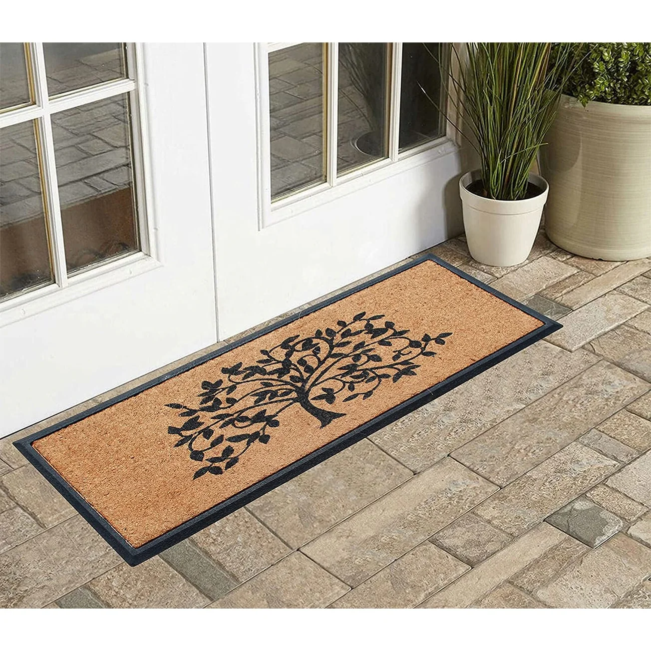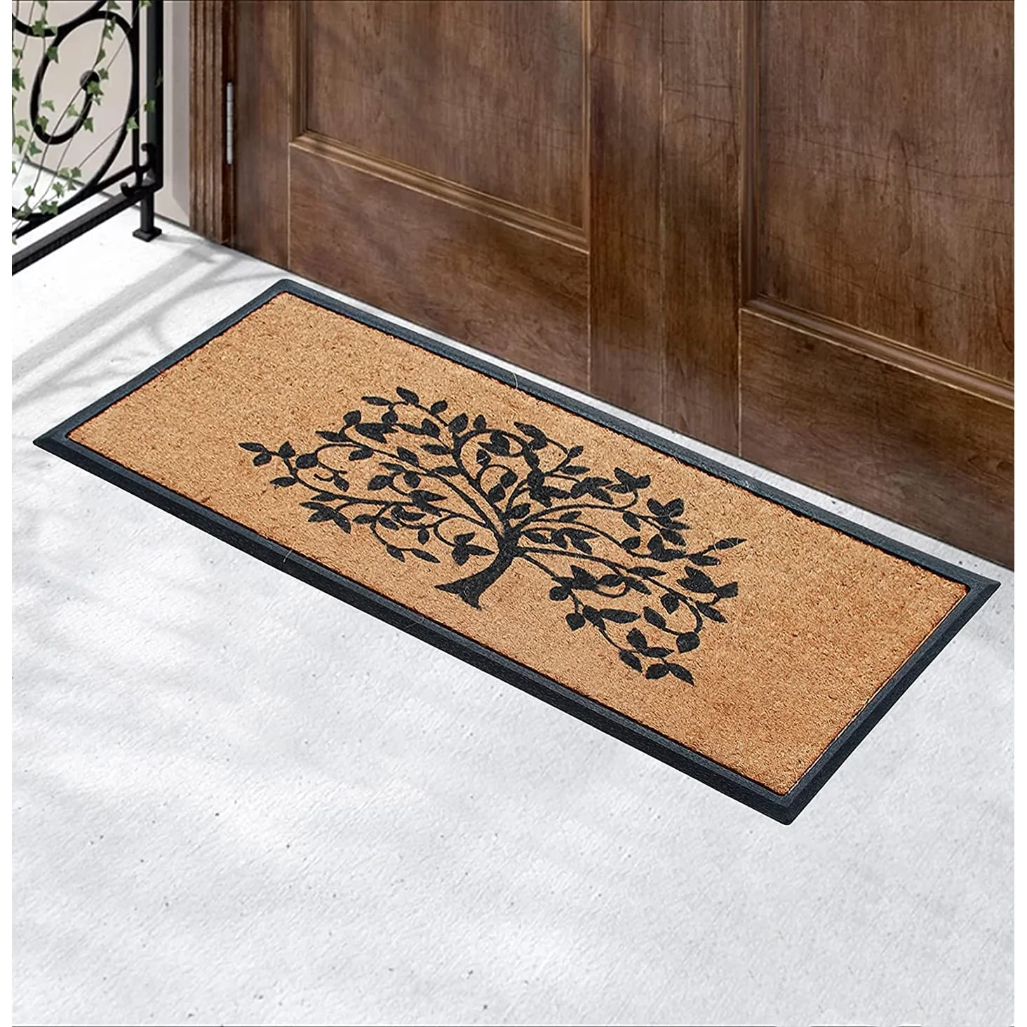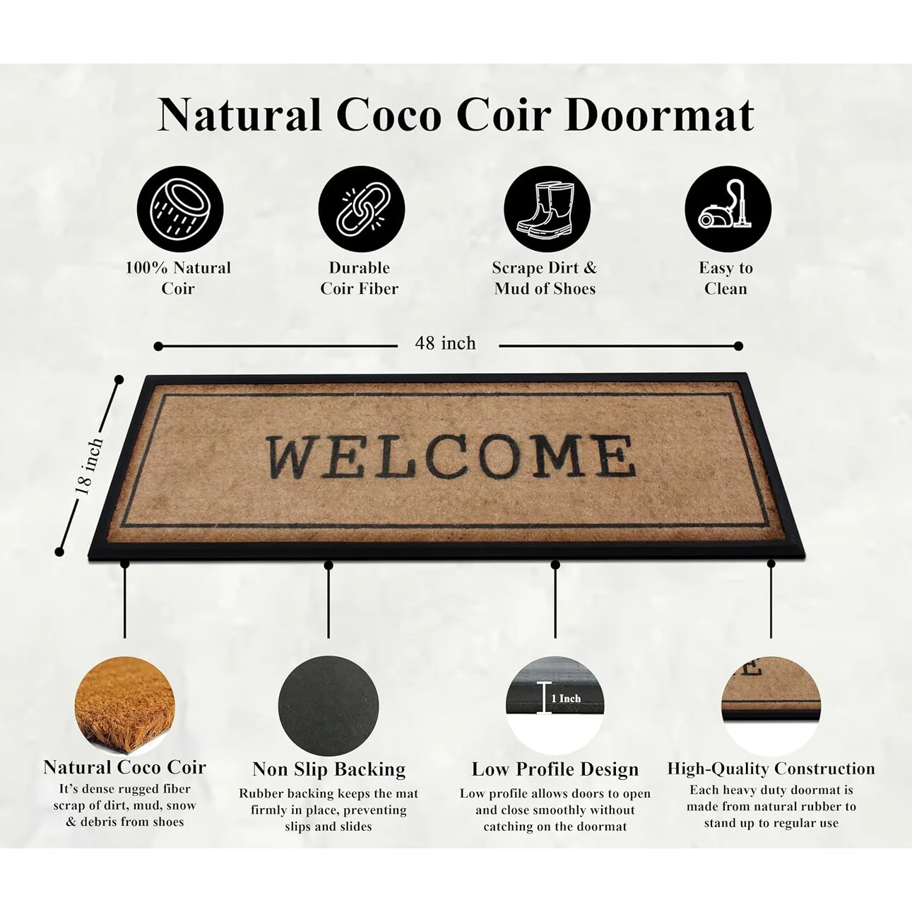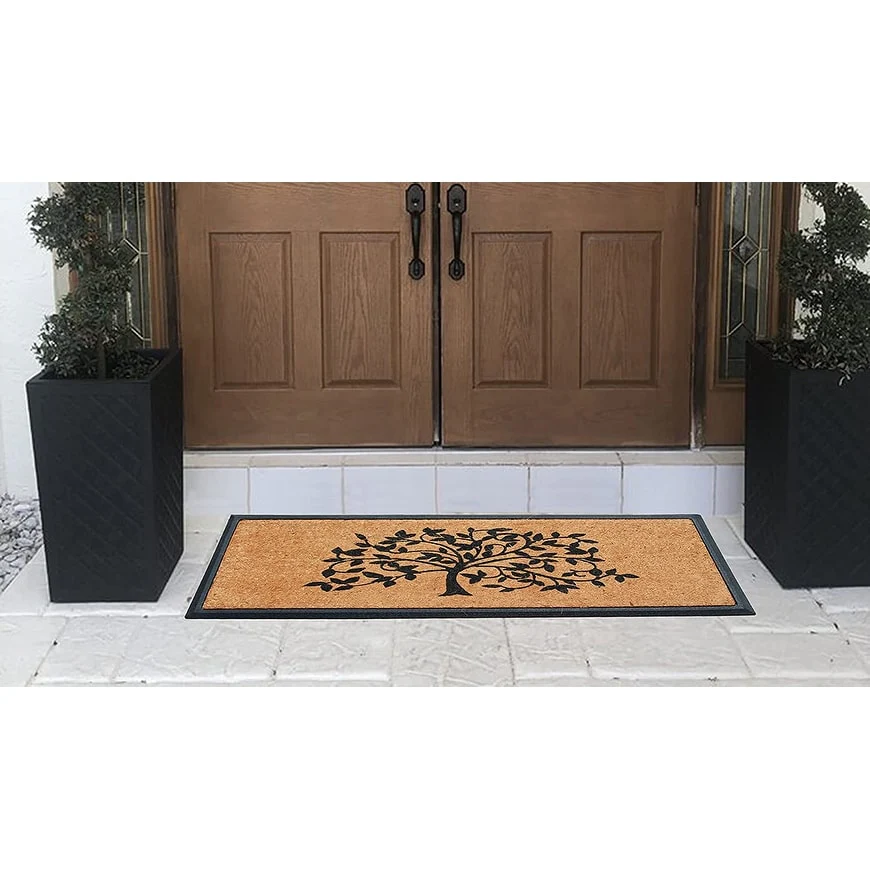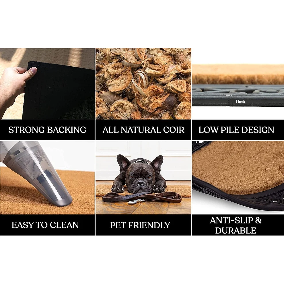 - SUPER TOUGH DOOR MAT: Constructed with thick coir bristles on the topside molded with rubber base, the doormat is built tough by nature; its strong bristles create a wiping area and the rubber base adds to the sturdiness. This premium outdoor rug will help stop dirt, debris, moisture and other particles from being tracked into your home and will last at least 3 times longer than regular door mats.