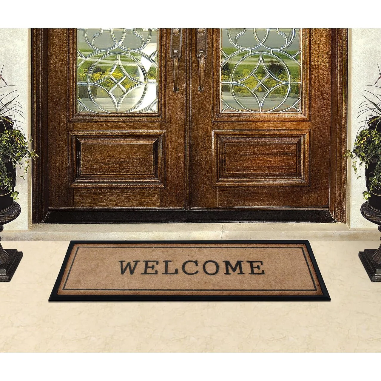 - PLACE WELCOME MAT BEFORE EVERY EXTERIOR DOOR: Use this welcome mat on a patio, in a garage, laundry room, entryway, and anywhere there is high traffic from outside. Recommended to be used in covered outdoor areas.