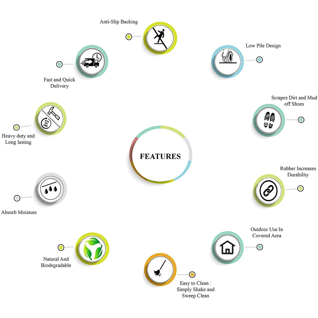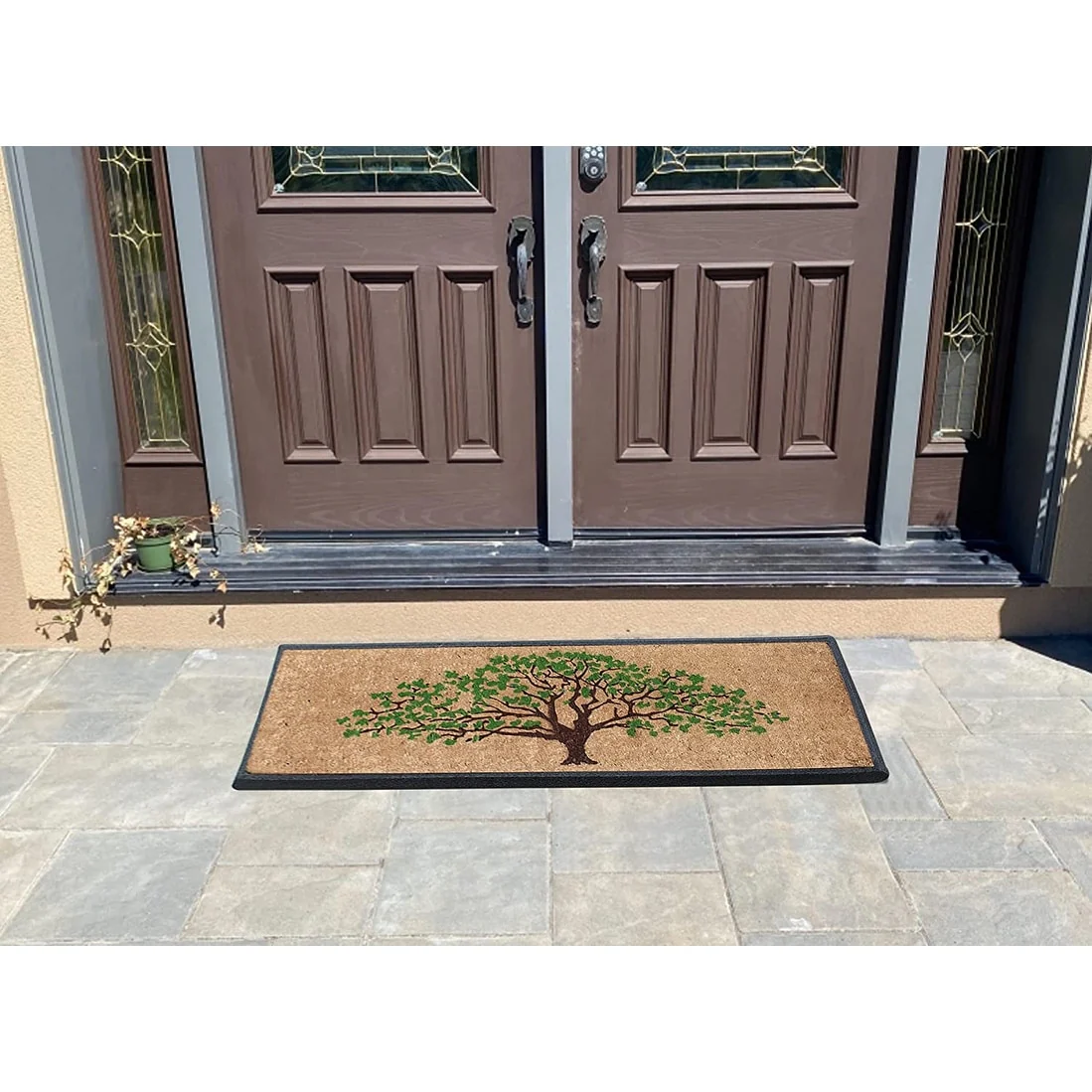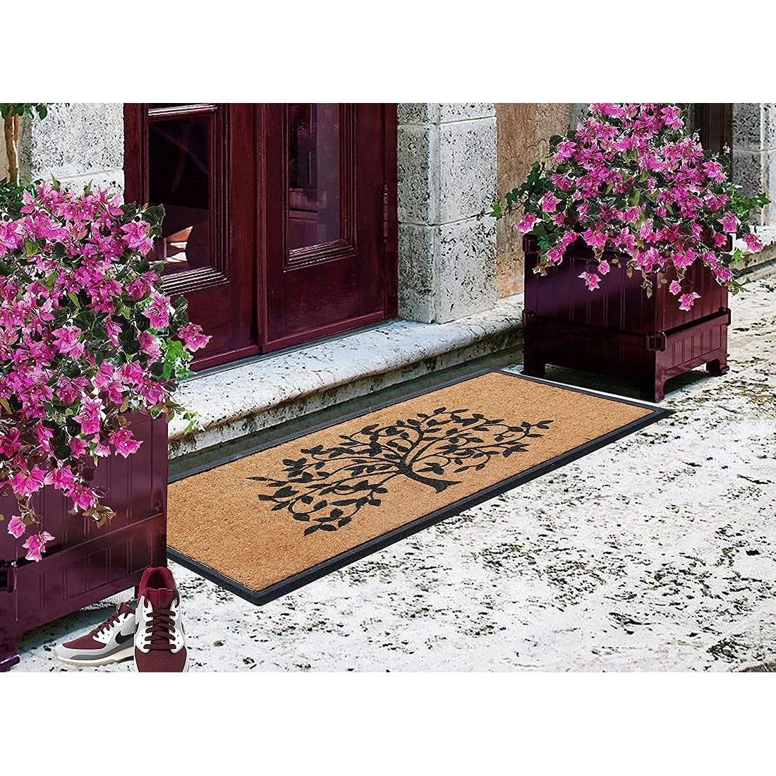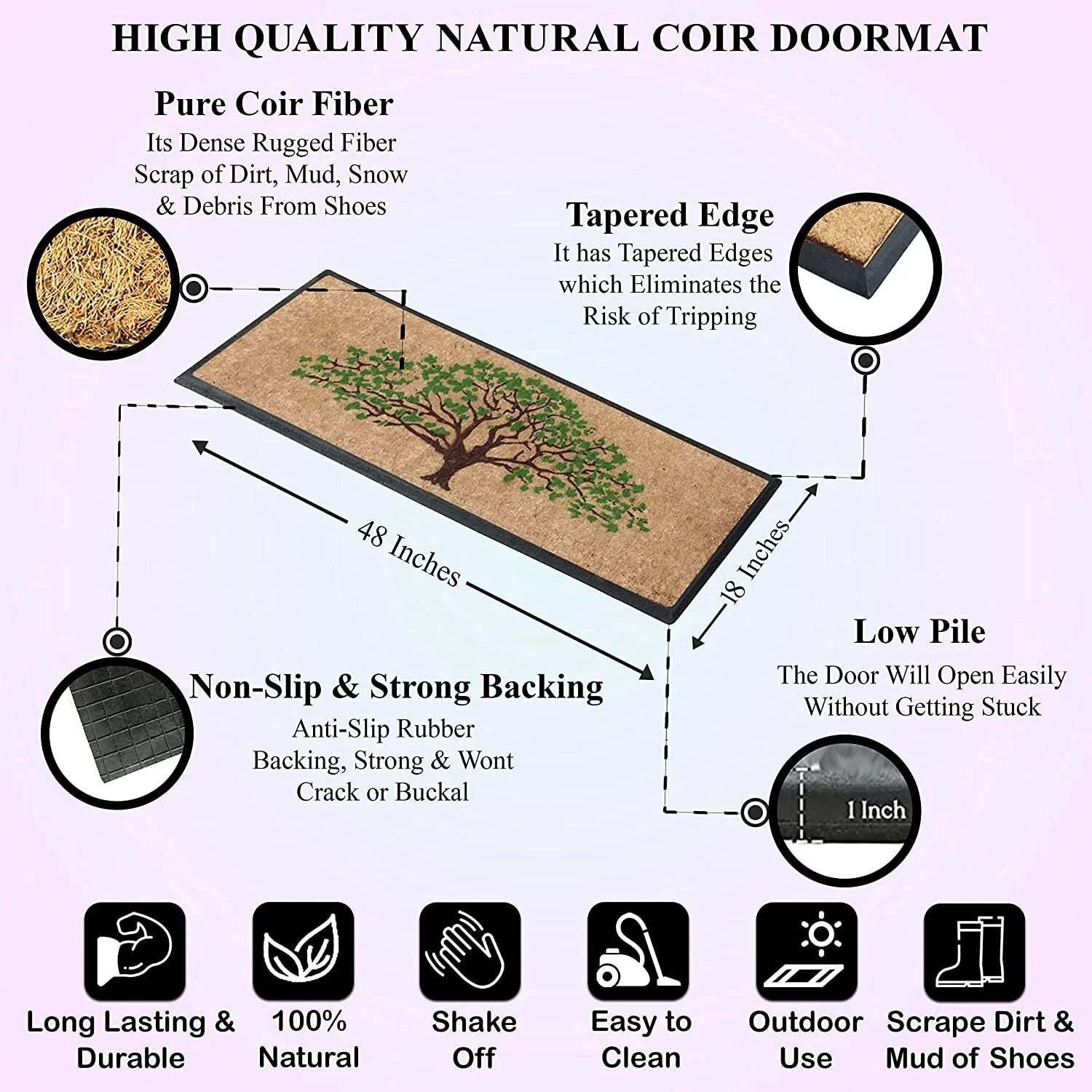- ENVIRONMENTAL FRIENDLY OUTDOOR RUG: Made from 100% Hard Wearing Coir Eco friendly Rubber base .Adds a unique touch to your front door or back door while being very functional.