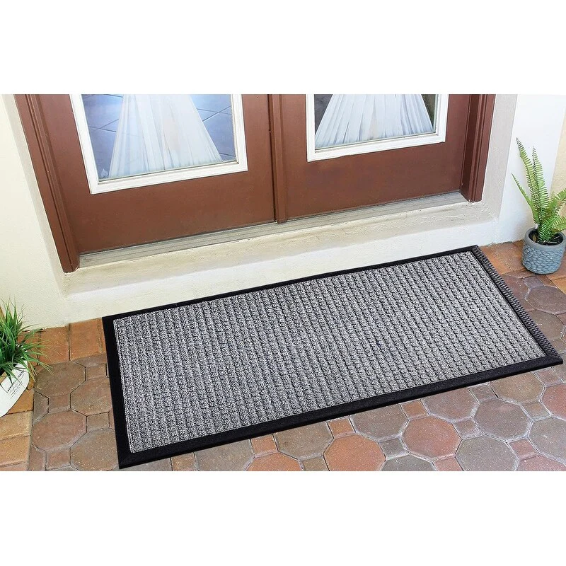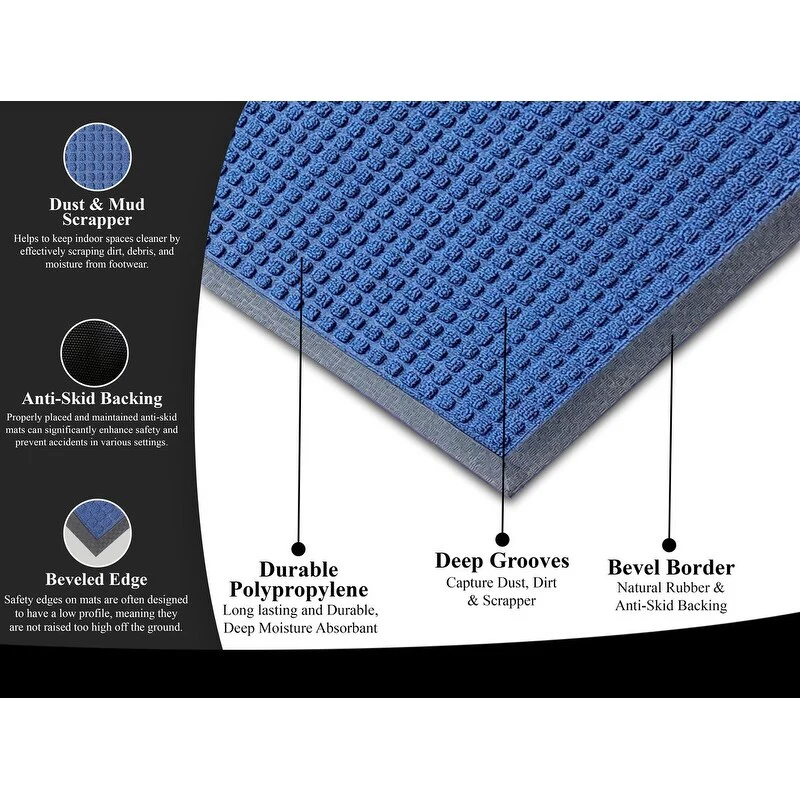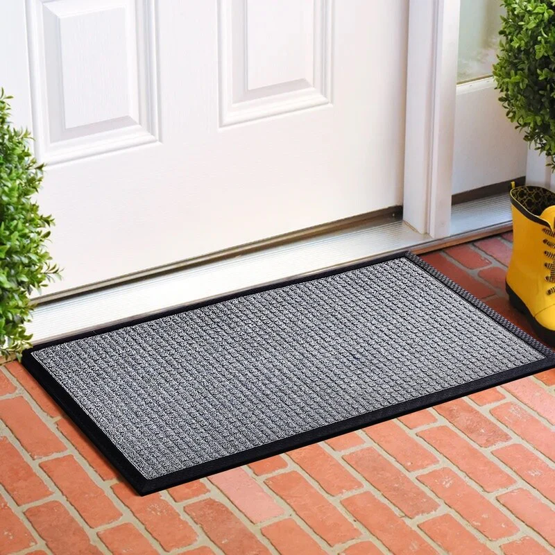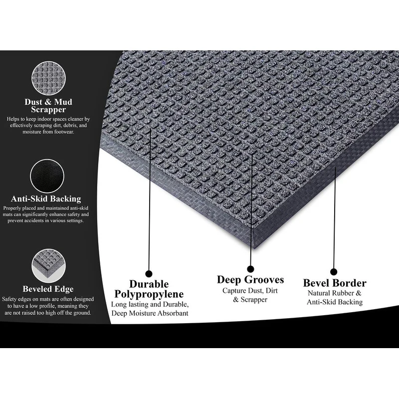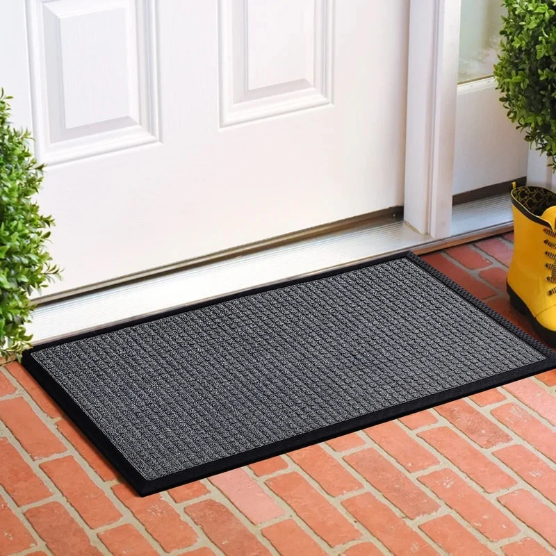 PREMIUM QUALITY MATERIALS: Crafted from high-grade polypropylene and rubber, our rubber door mats are built to withstand heavy foot traffic and outdoor elements without losing their shape or functionality. Easily Captures dirt debris and moisture.