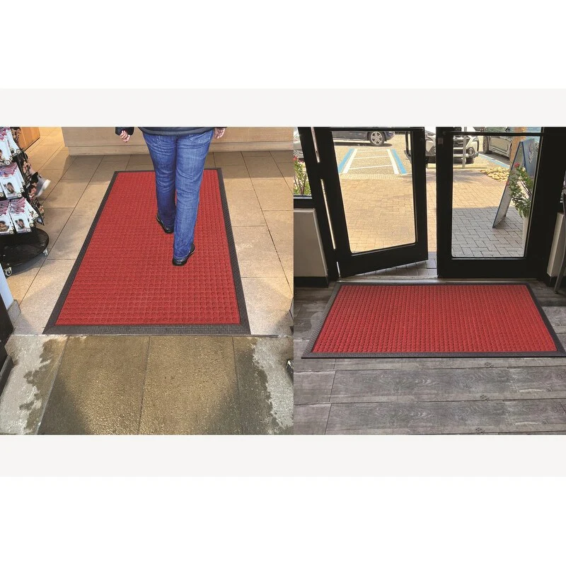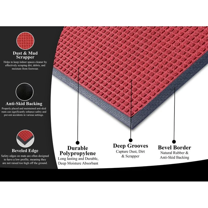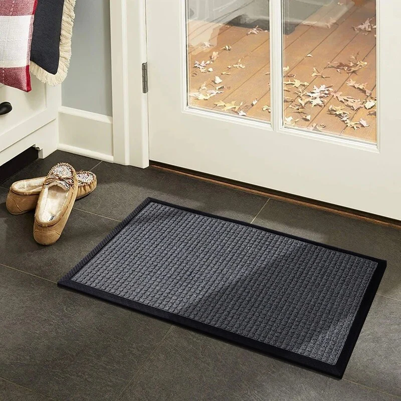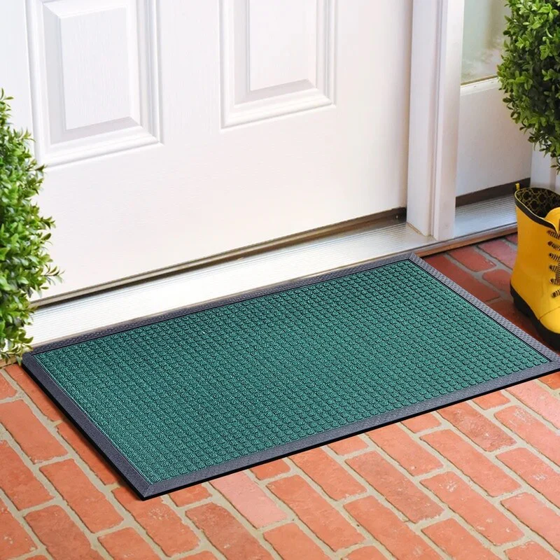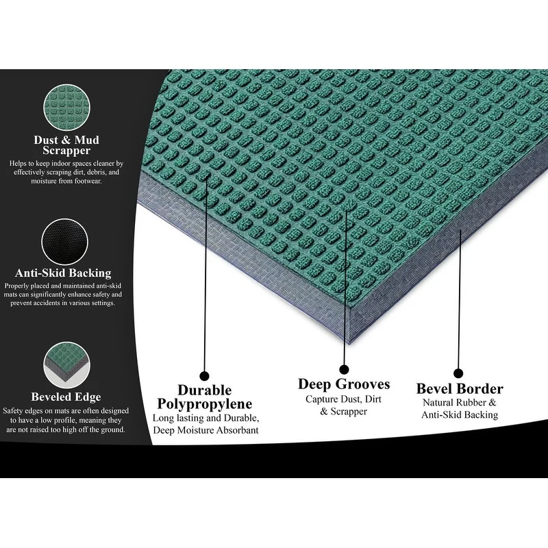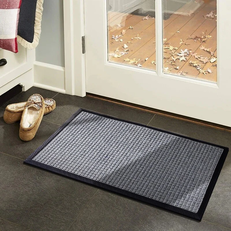 PREMIUM QUALITY MATERIALS: Crafted from high-grade polypropylene and rubber, our rubber door mats are built to withstand heavy foot traffic and outdoor elements without losing their shape or functionality. Easily Captures dirt debris and moisture.