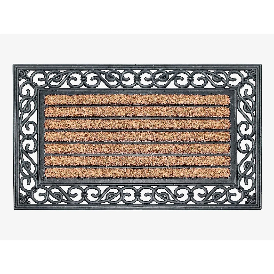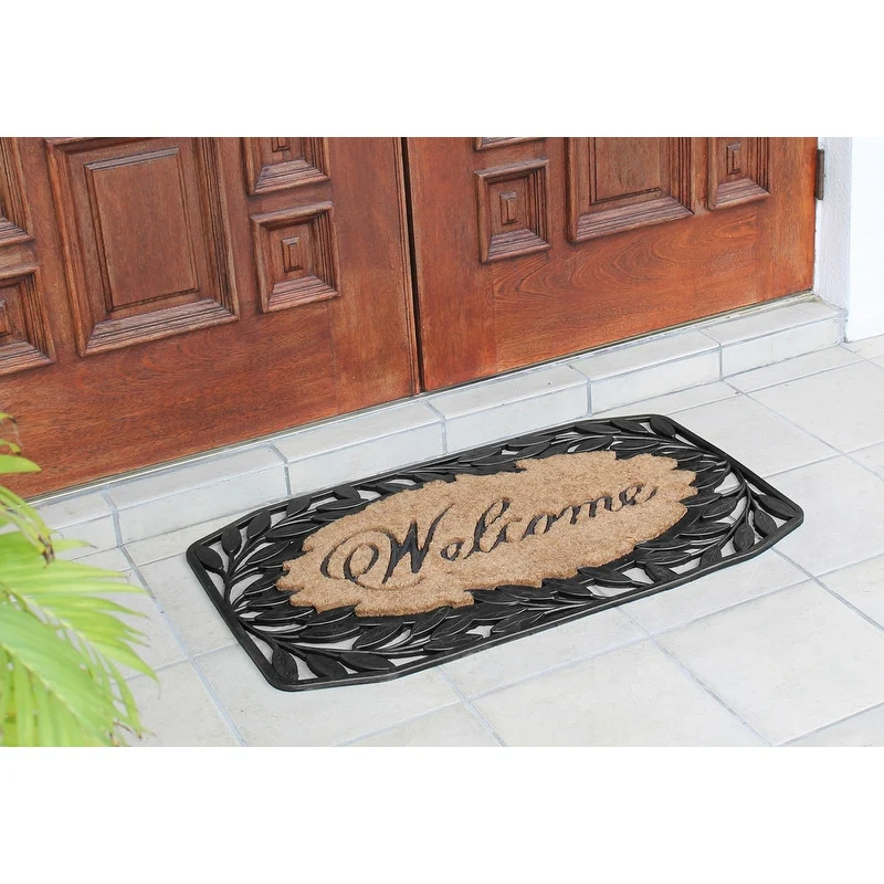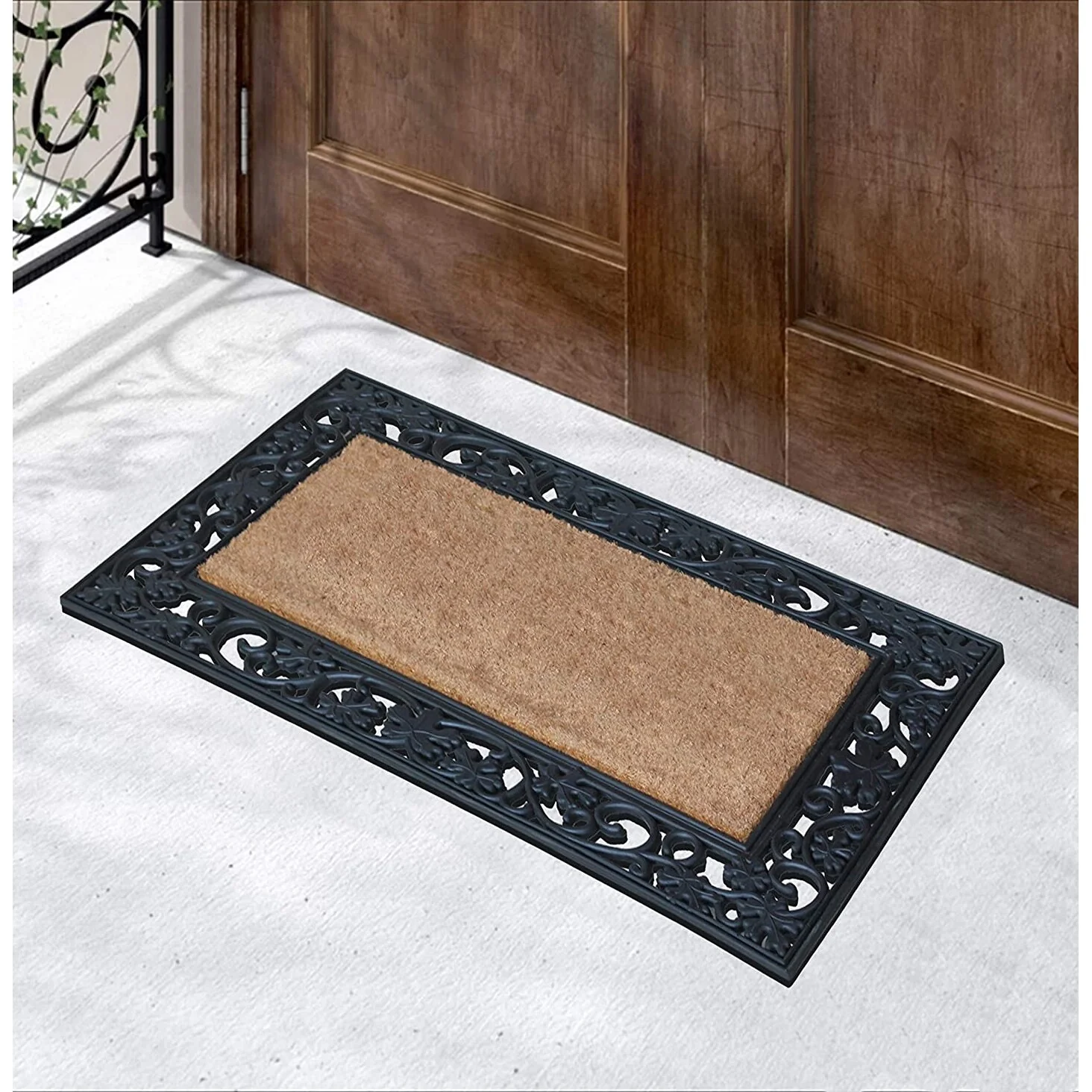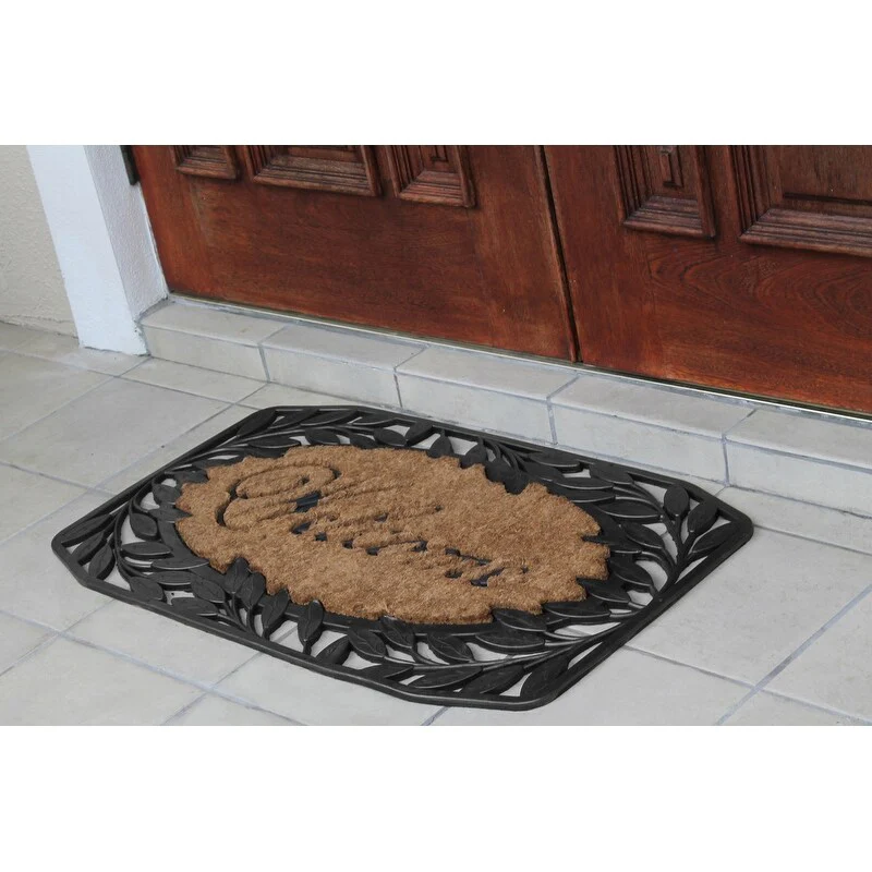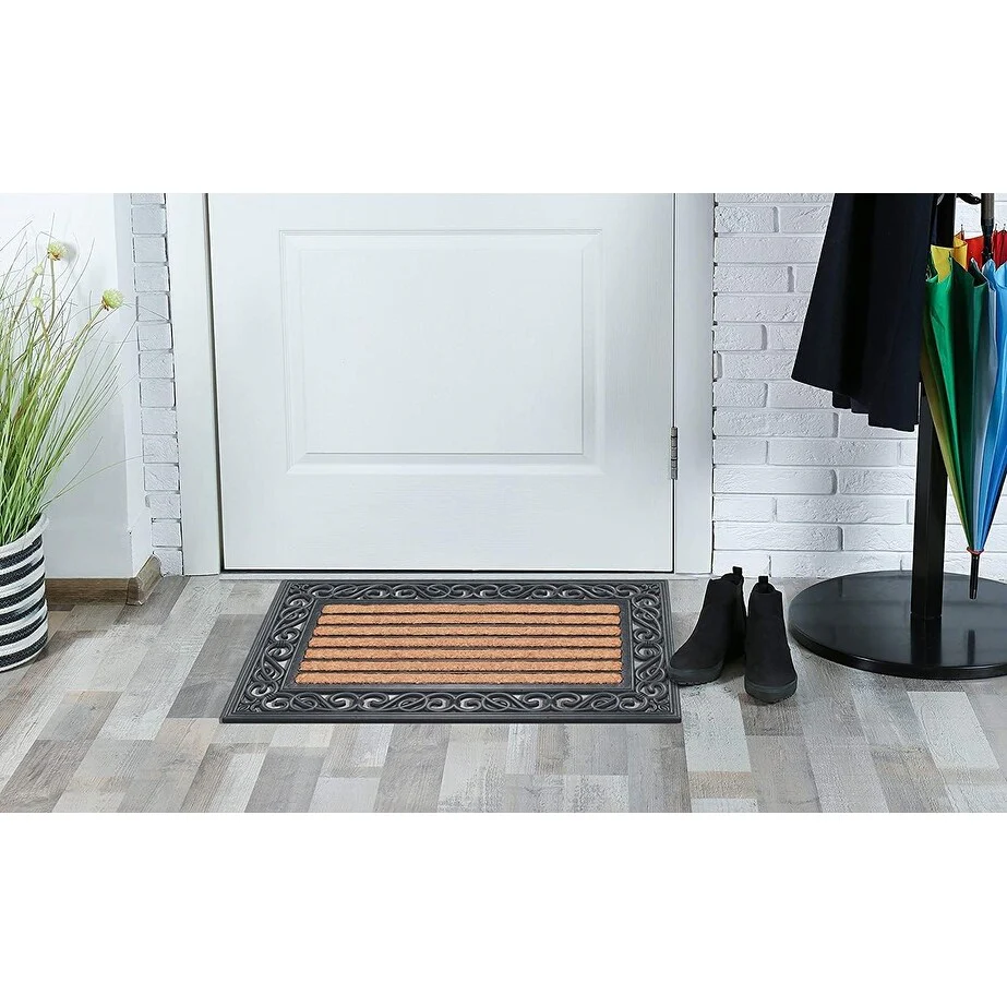 More than a decorative enhancement this rubber & coir molded doormat is made With a heavy rubber backing that anchors it in place while you brush dirt & debris from shoes & boots. The tufted coco-fiber facilitates scrubbing soles clean.