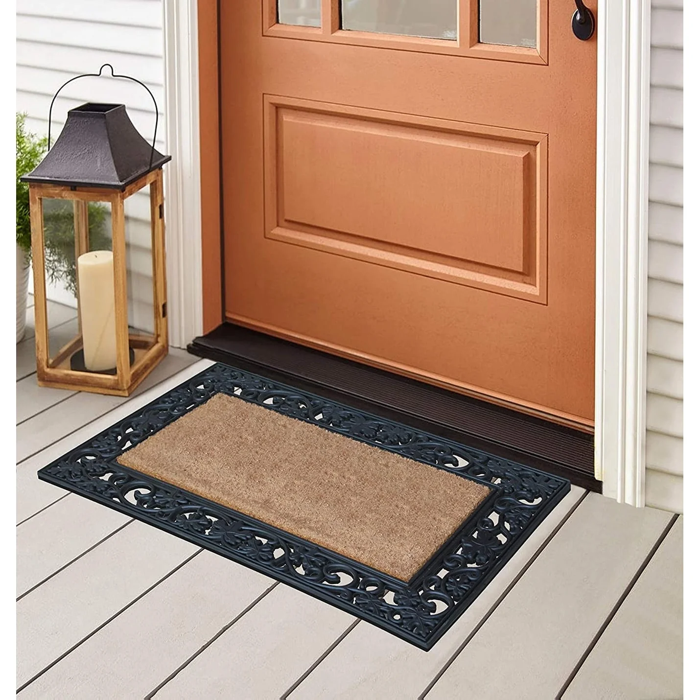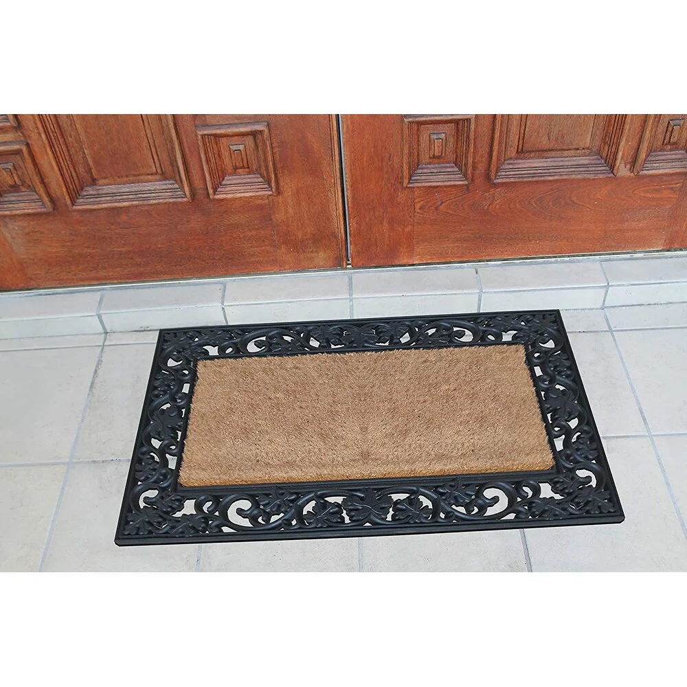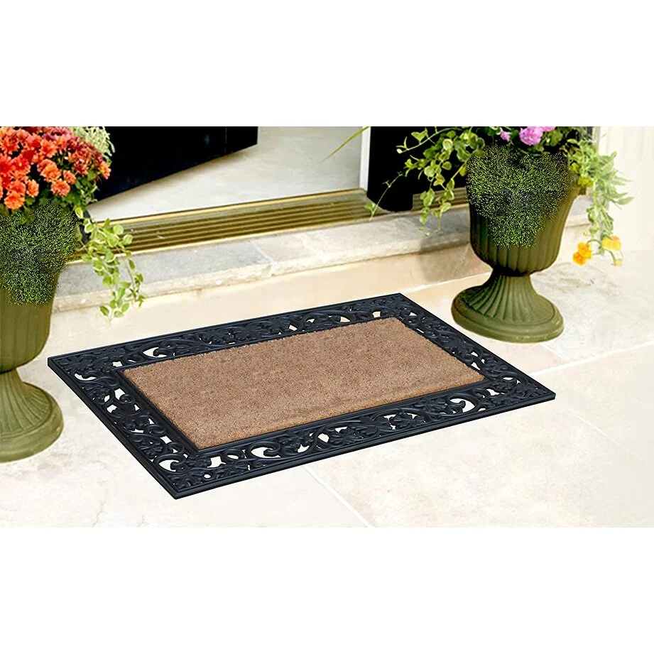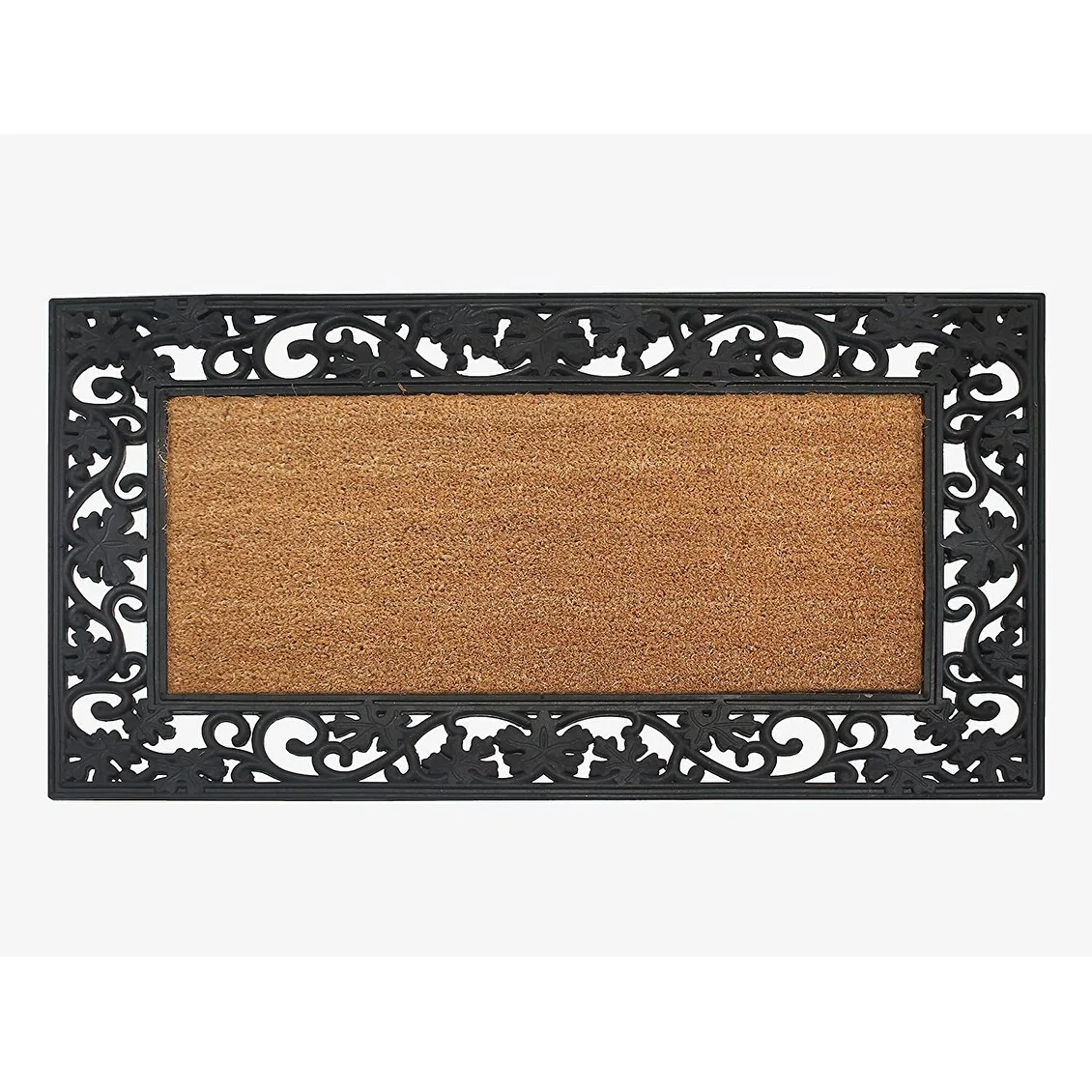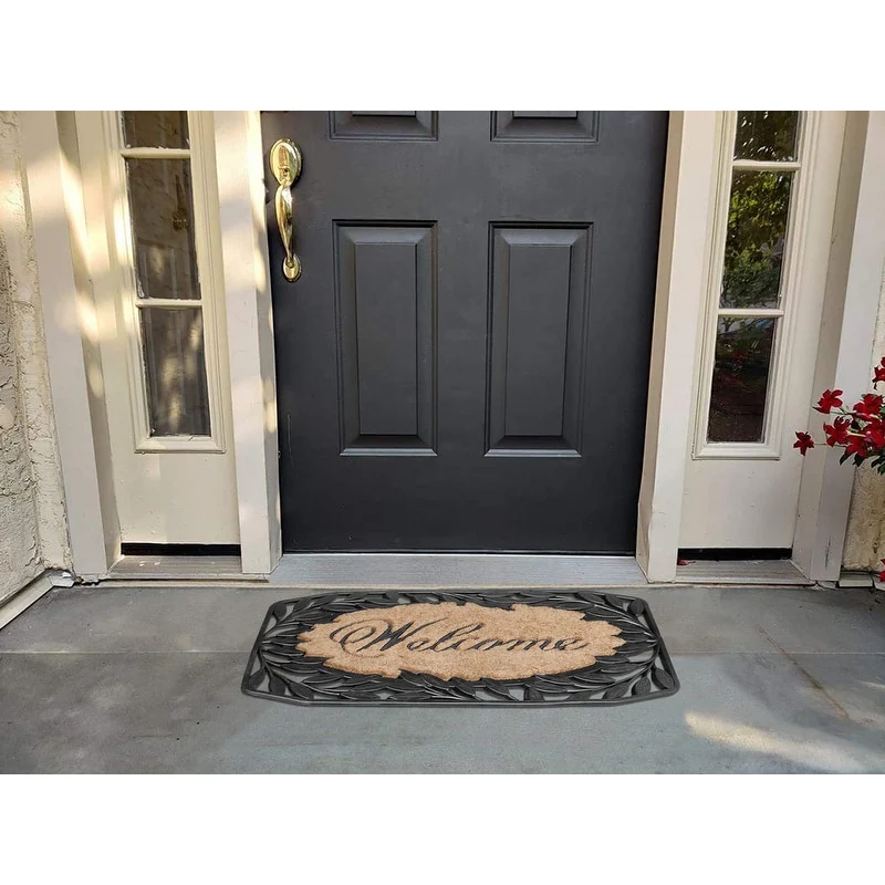 More than a decorative enhancement this rubber & coir molded doormat is made With a heavy rubber backing that anchors it in place while you brush dirt & debris from shoes & boots. The tufted coco-fiber facilitates scrubbing soles clean.