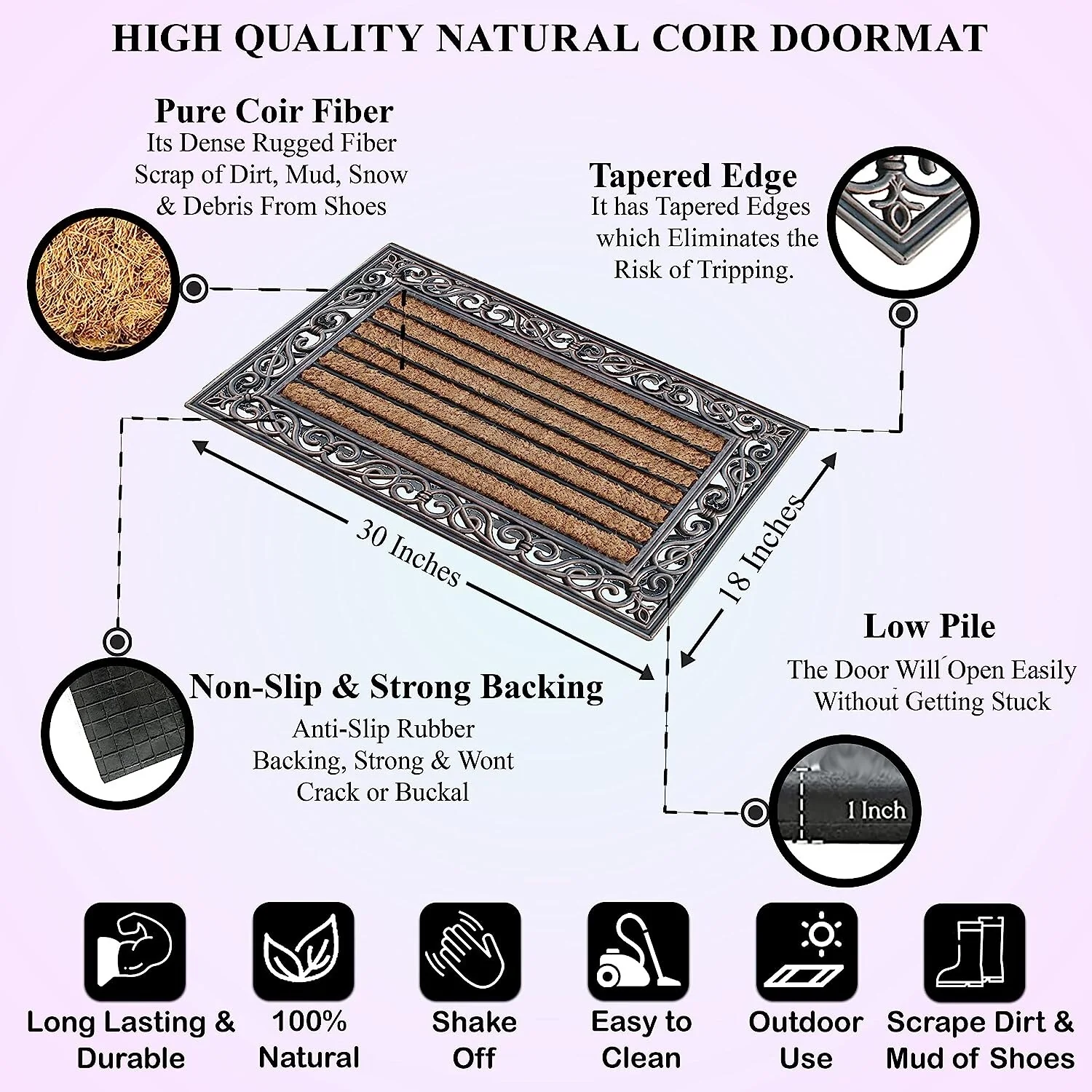 - 100% COCONUT COIR FIBER: Natural fiber face provides the perfect surface for guests to wipe their shoes before entering your home.