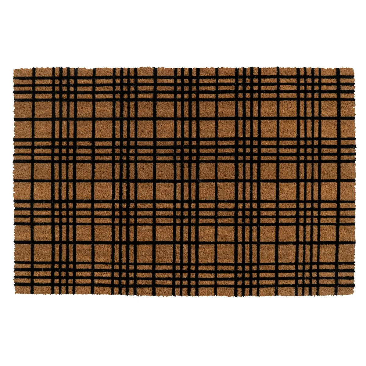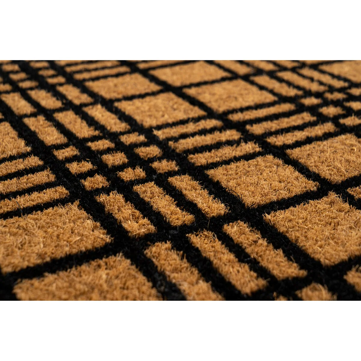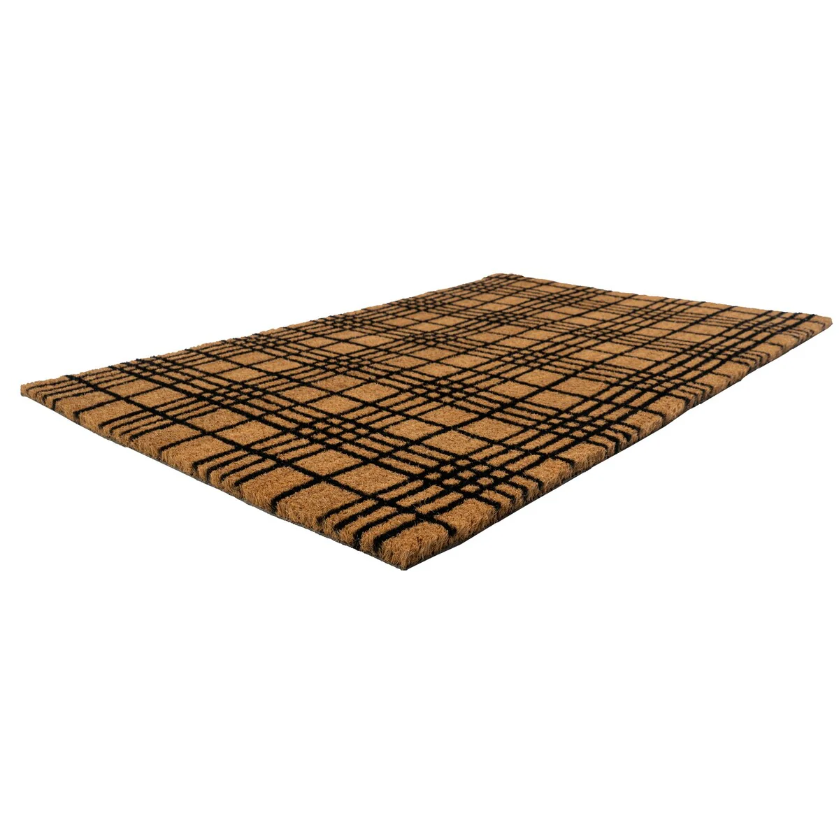 Criss-crossing lines in a fine plaid formation create an eye-catching display out of simplicity. Handsome and practical, the mat is hand-painted using eco-friendly dyes and has a durable PVC backing. It's available in three versatile sizes: 18' x 30', 24' x 36', and 24' x 60', all 1/2' thick. Shake, sweep, or vacuum to clean. Recommended for use in a sheltered area.