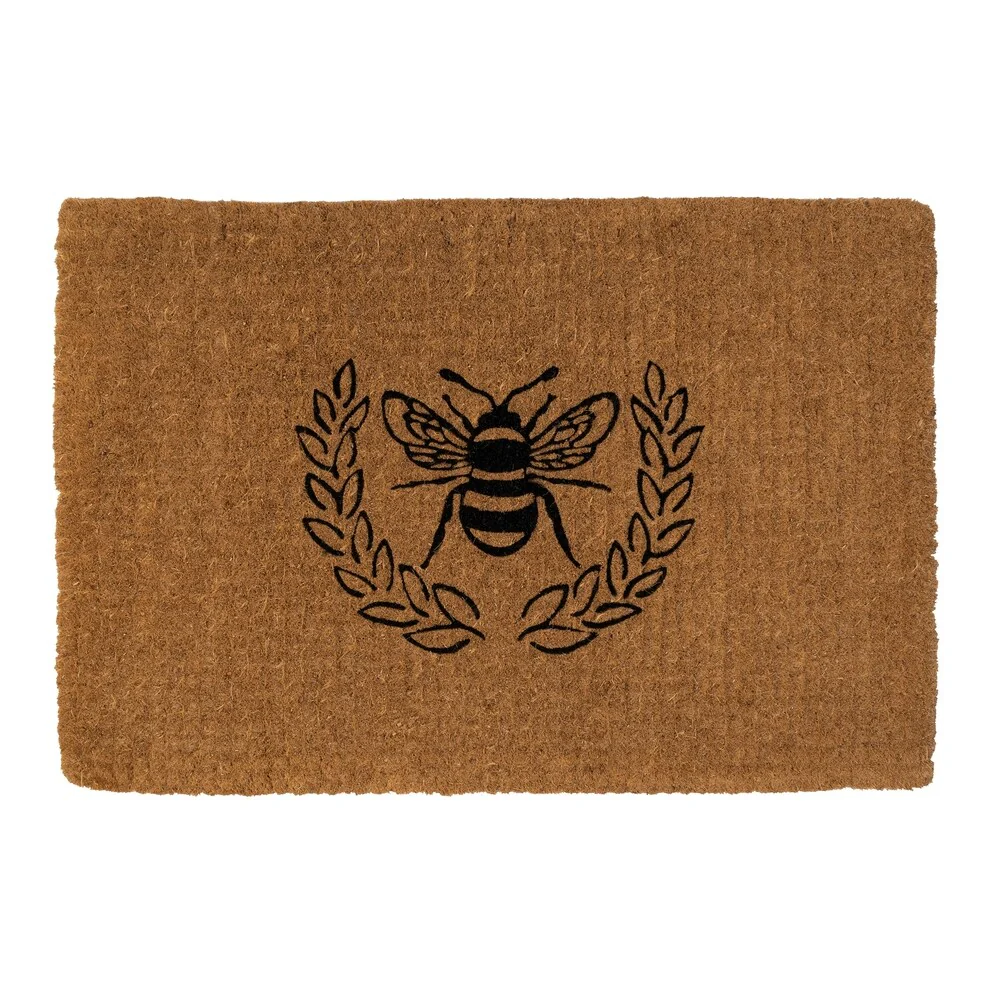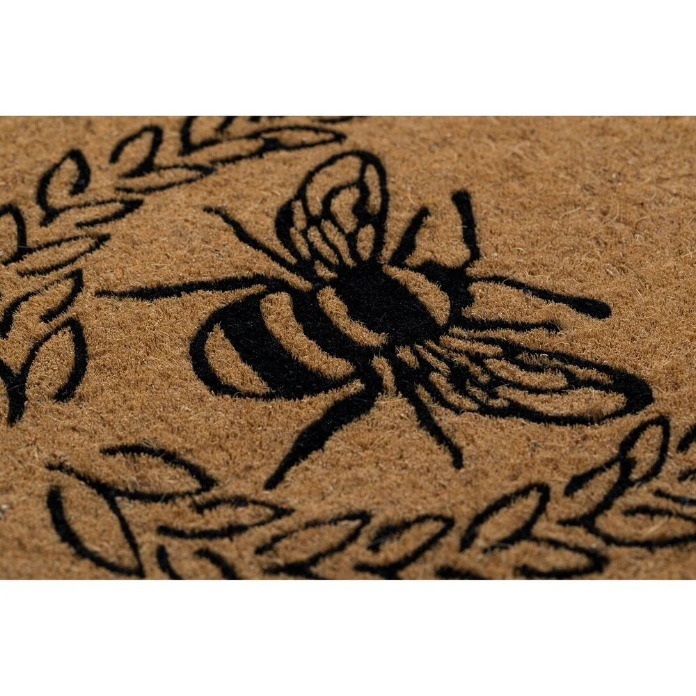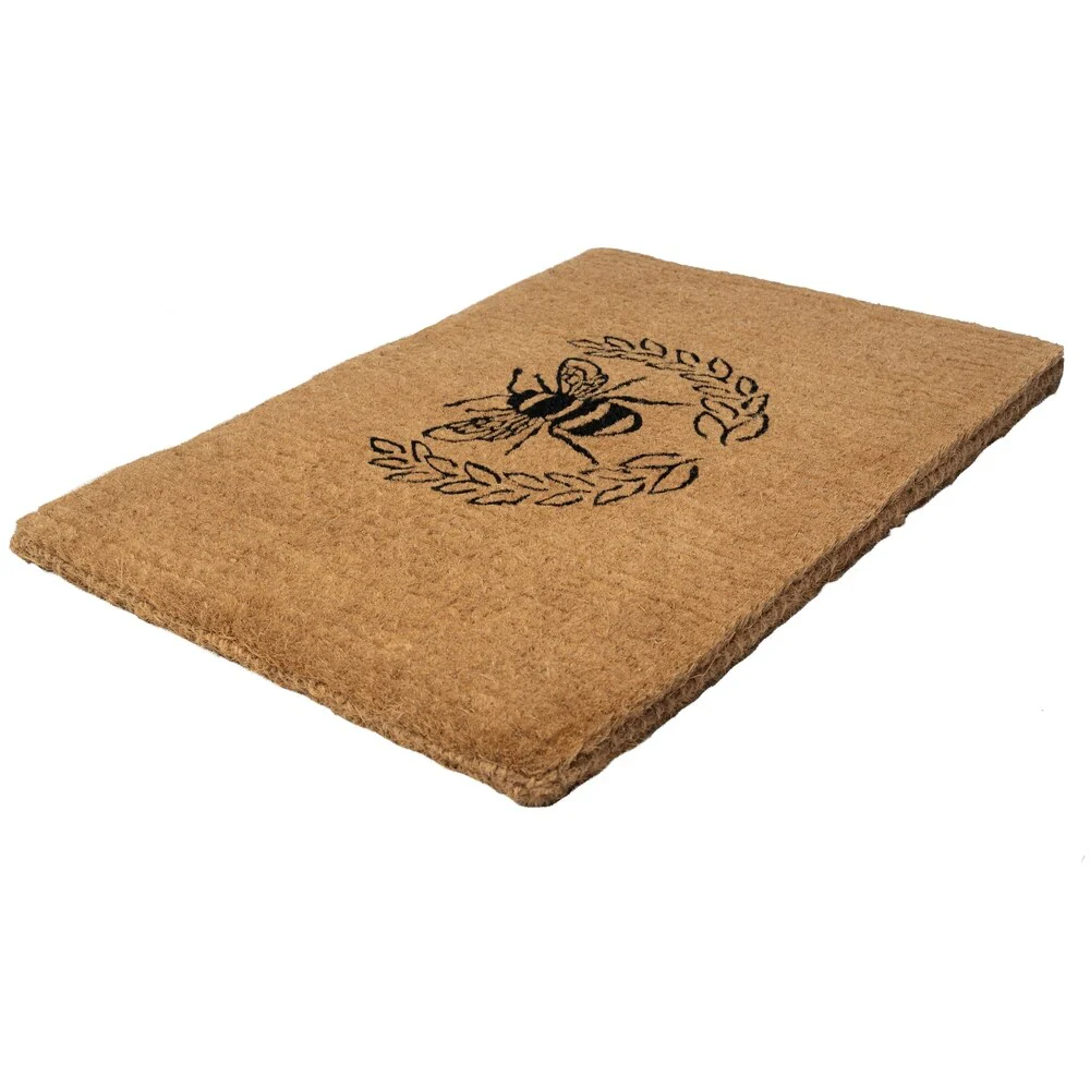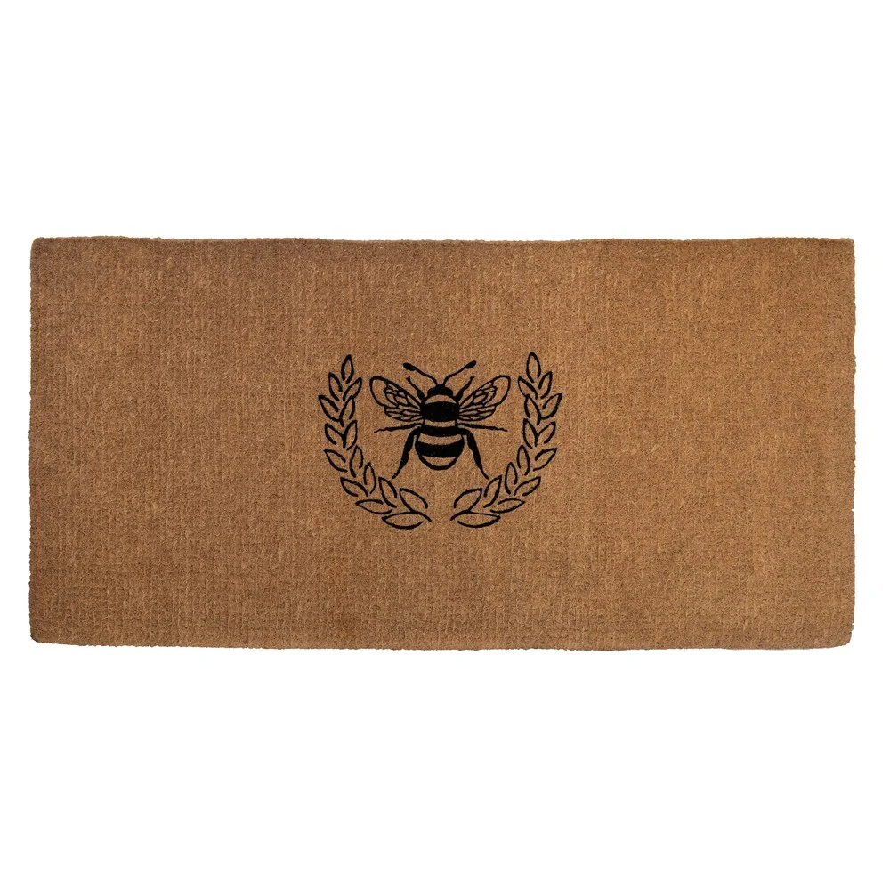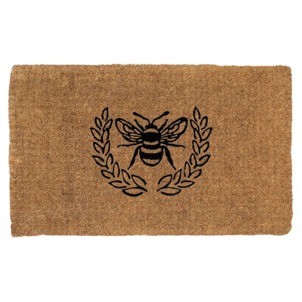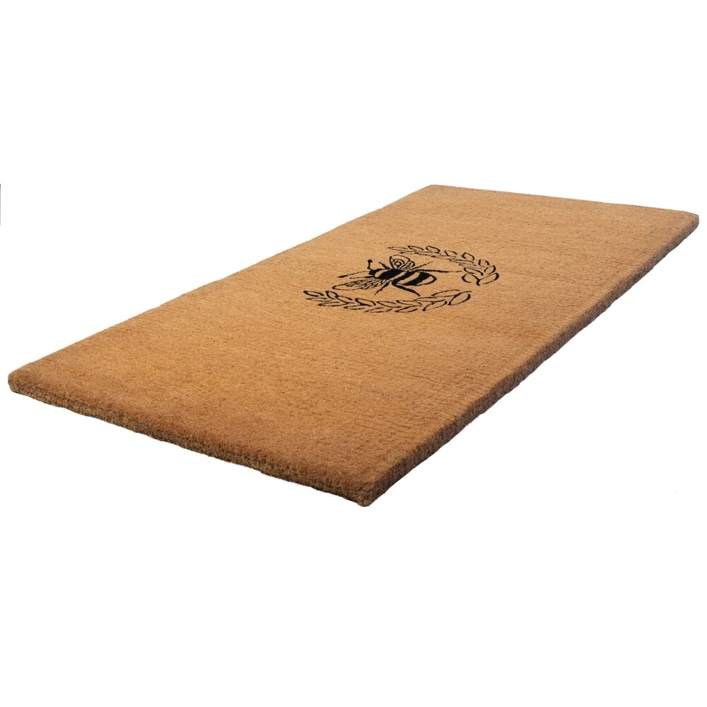 Give your front door the royal treatment with this regal bee inside a laurel wreath. This extra-thick, handwoven coconut fiber doormat is available in three sizes: 18' by 30', 24' by 36', and our extra-large 36' by 72' mat.