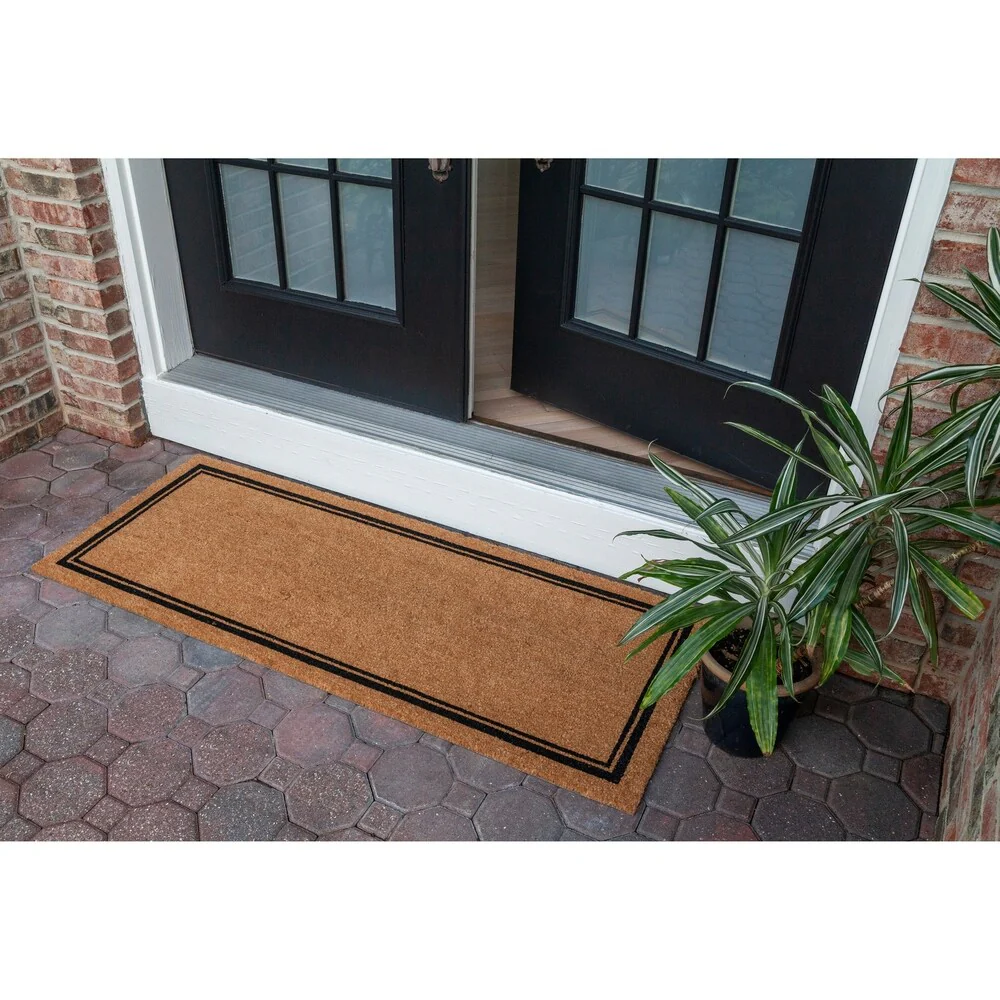 Show off a rugged construction and elegant design with this border-accent doormat embellishing your entryway. The mat's flatweave and shed-resistant construction using all-natural coir fiber help it keep grime and dirt away from your abode, while its PVC backing keeps it in place.