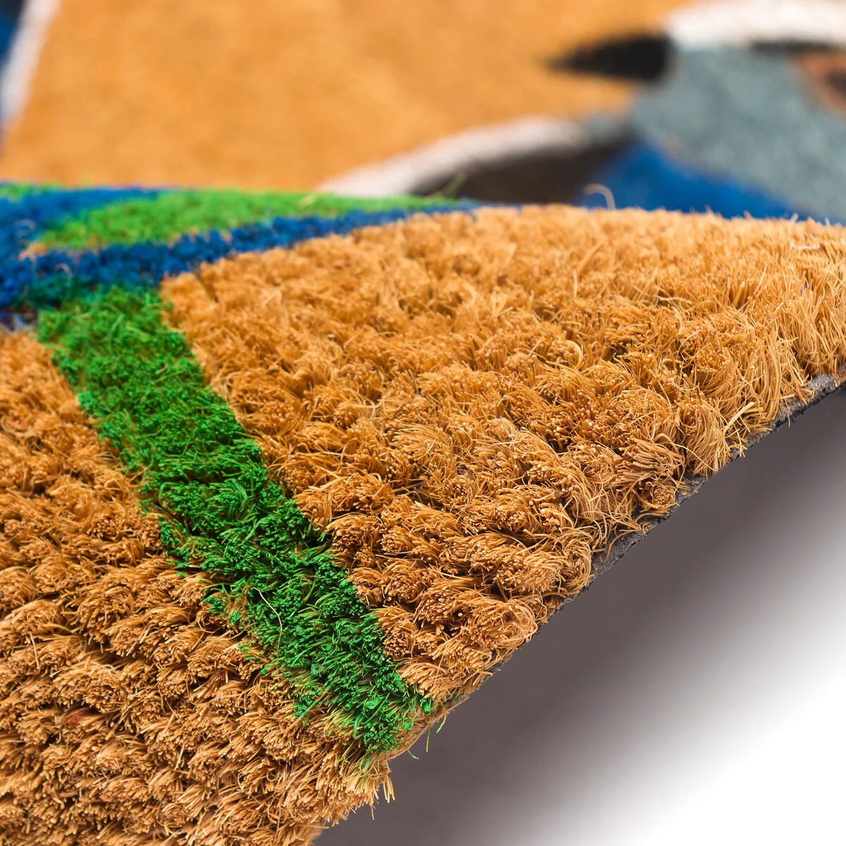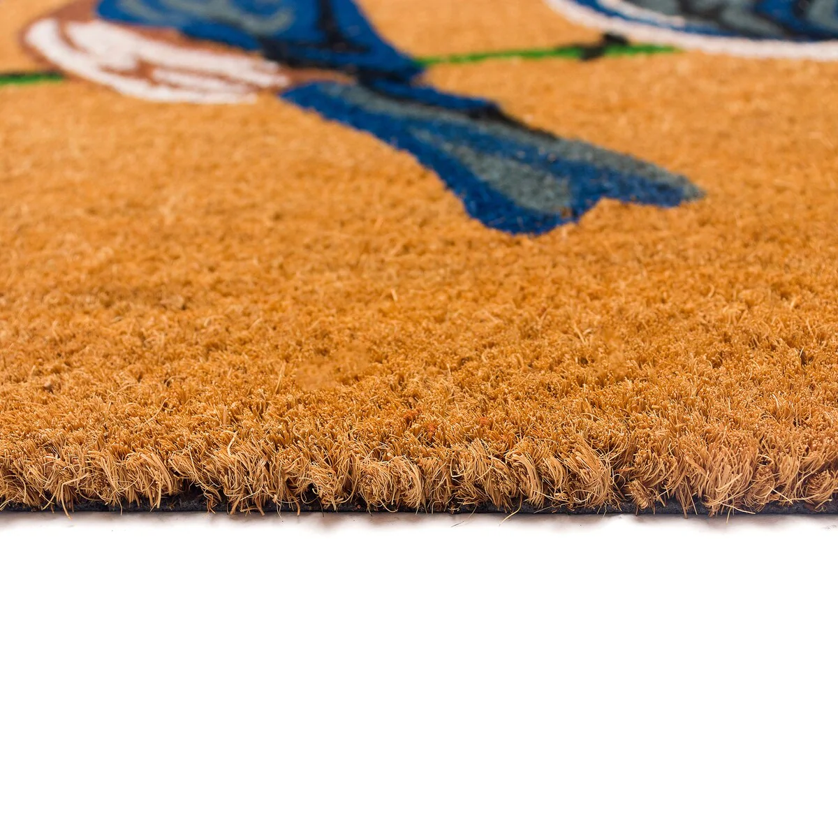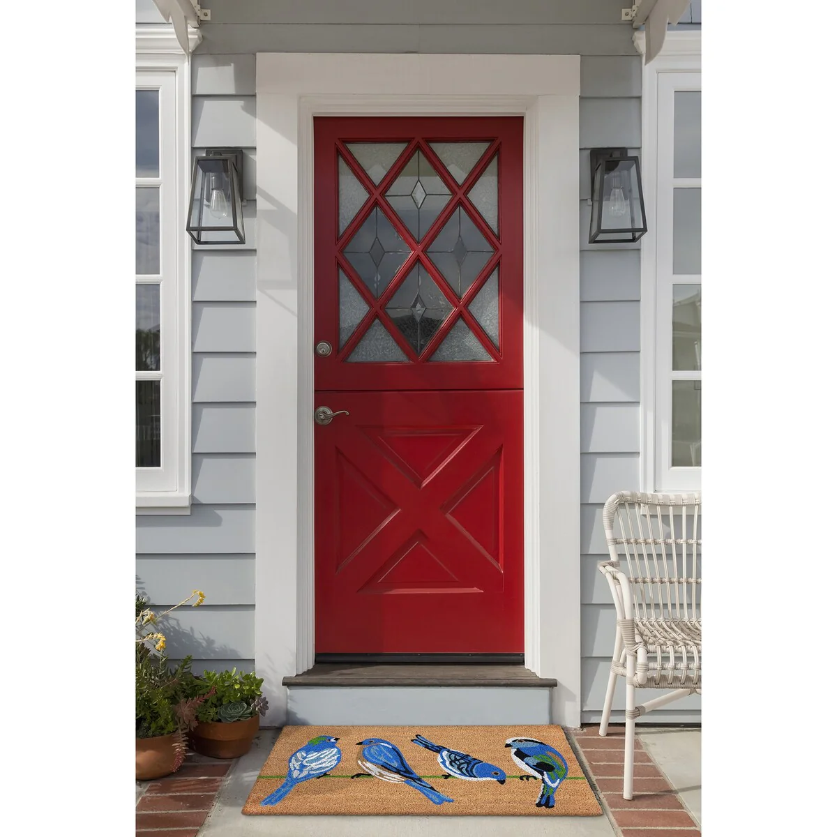 Welcome your friends with this Liora Manne door mat. This door mat is made using 100-percent natural coir, so it's eco-friendly and highly durable. The mat also features a quartet of lively birds that provides a fun and festive touch, and the blue hue adds a splash of color.