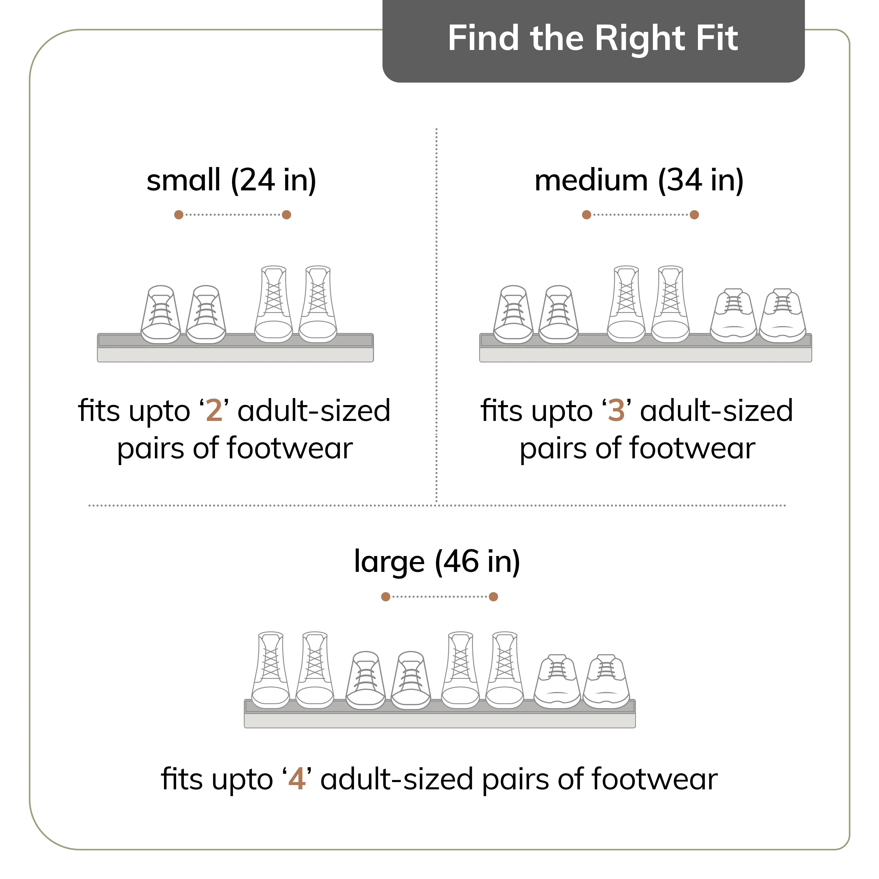 - Available in multiple sizes to easily hold 2 - 4 pairs of adult-sized boots per tray.