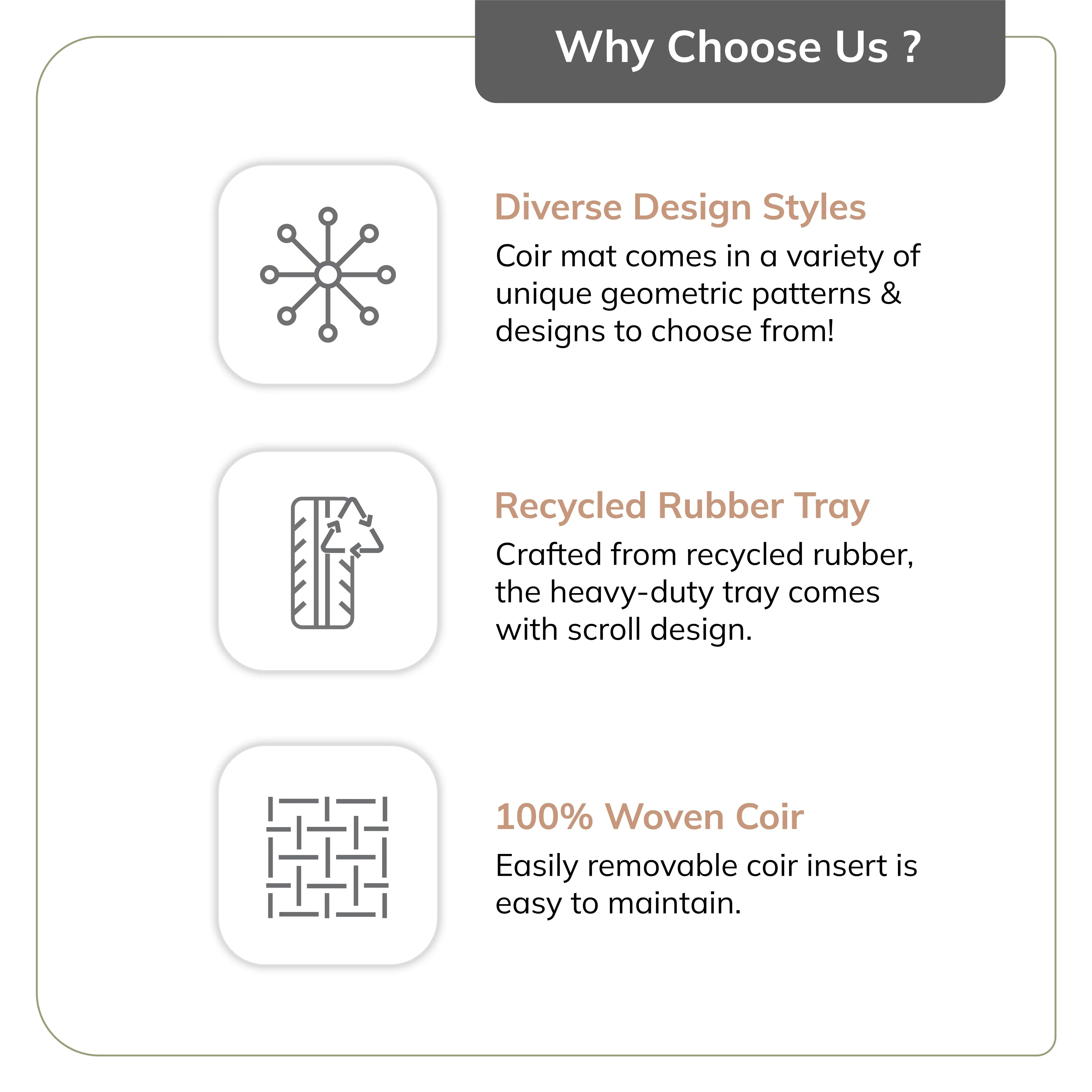 - An easily removable mat is made using 100% coir (coconut fiber).