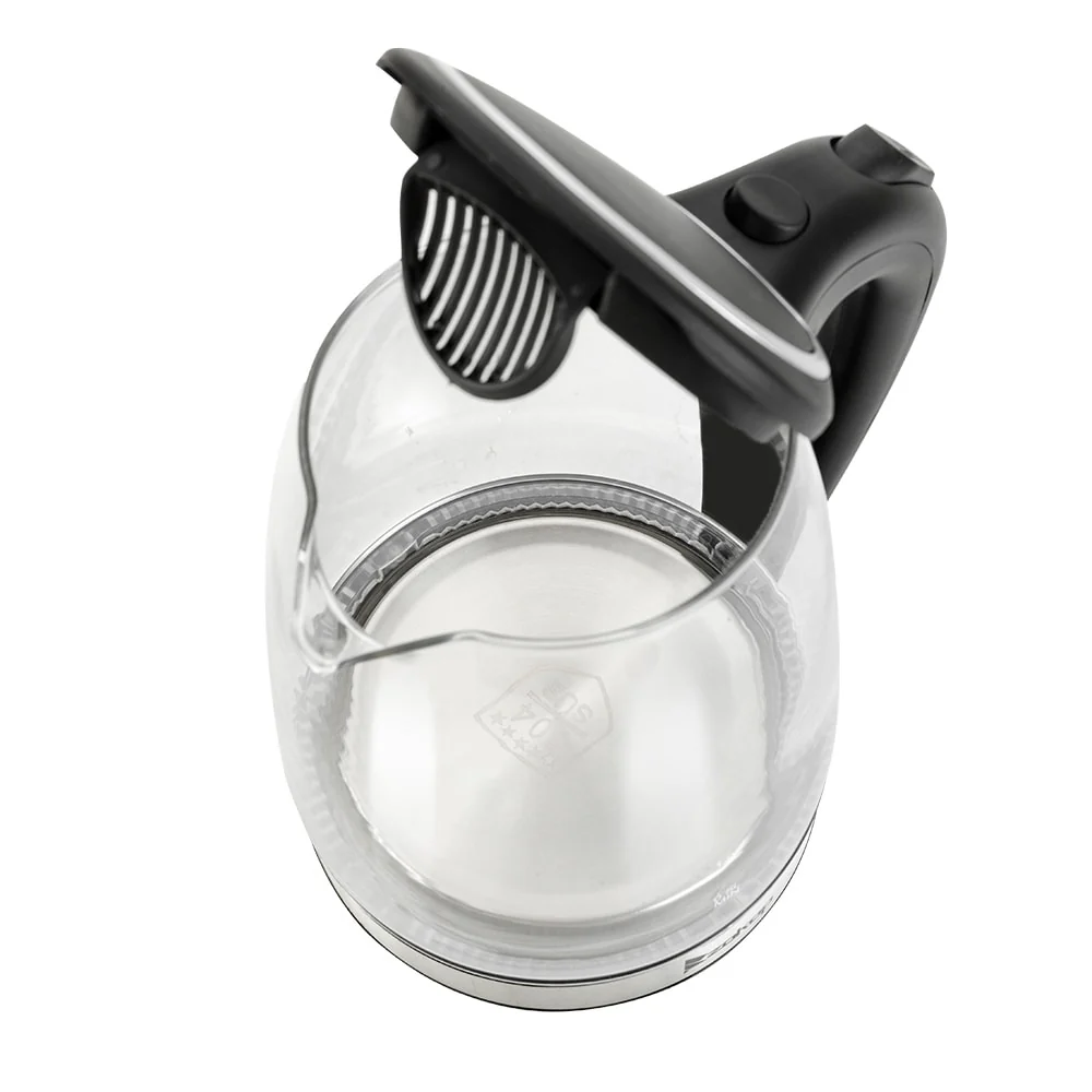 The ZOKOP HD-1857-A 110V 1500W 1.8L Electric Glass Kettle is the perfect blend of elegance and functionality. Not only is this kettle a beautiful addition to any kitchen countertop, but it also boils water efficiently, saving time and energy over the use of conventional stovetop kettles. A halo of blue LED lights beautifully illuminates the pot when it's in use, so it's not only practical, but very attractive to look at. In a matter of minutes, hot water will be ready to use for instant coffee, tea, hot cereal, instant macaroni, soup, or oatmeal.