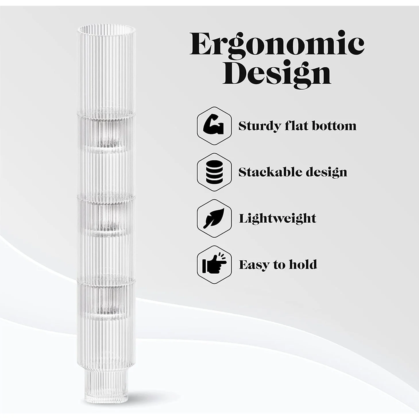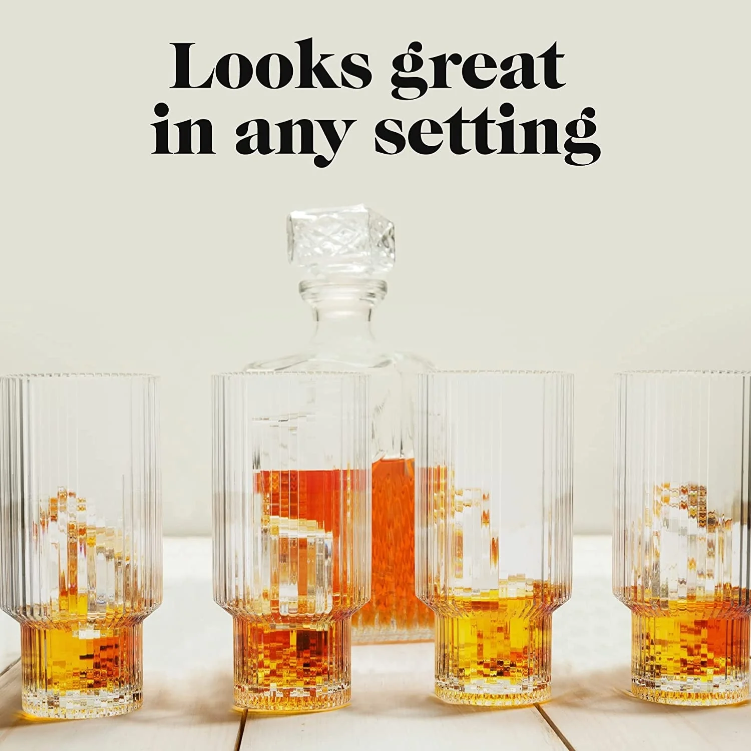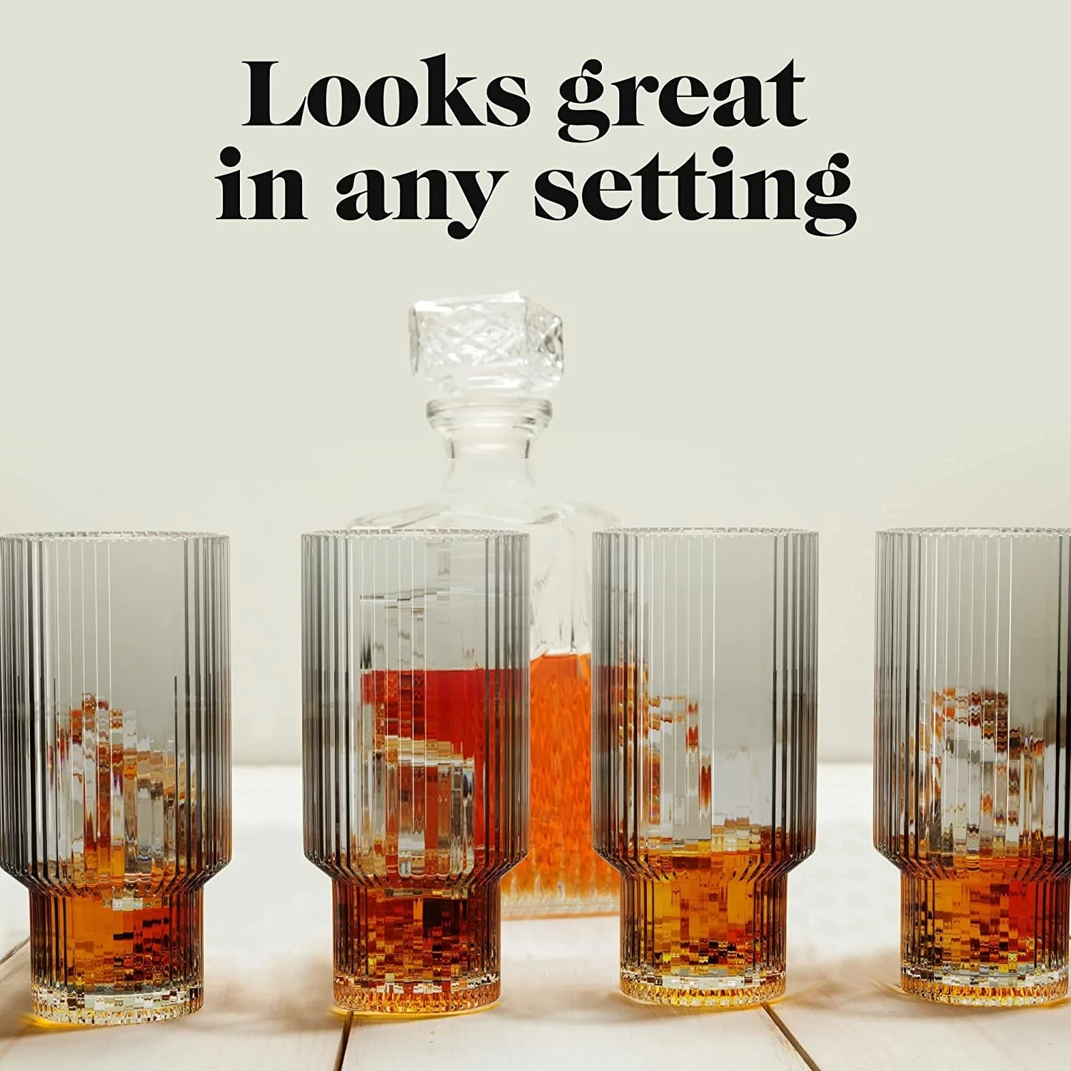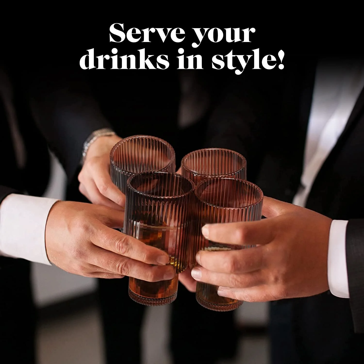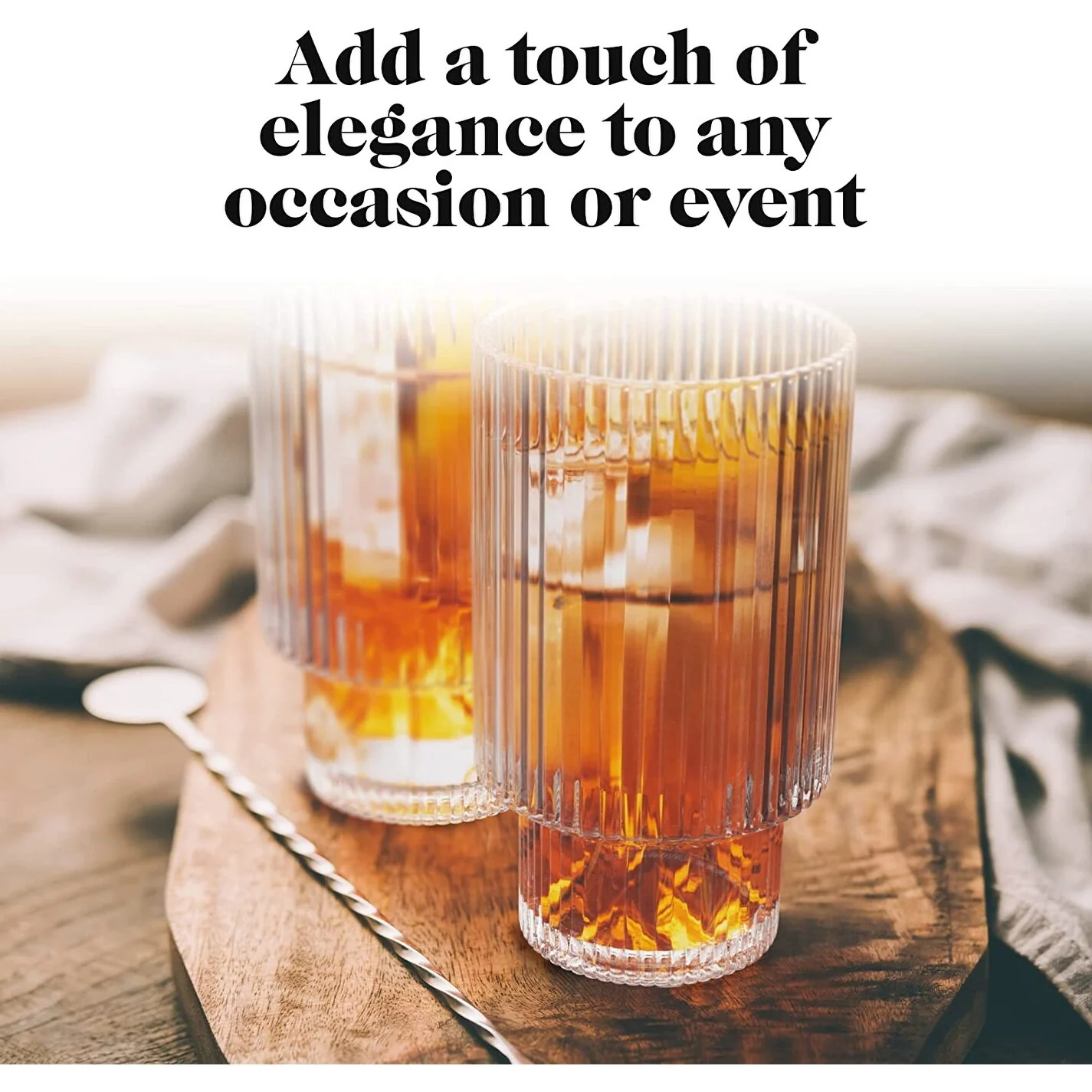 - Use these glasses drinking with friends or have the glassware set ready for mealtimes. The ribbed glassware is even suitable for party cocktails. This drinkware set is so versatile that the possibilities are endless