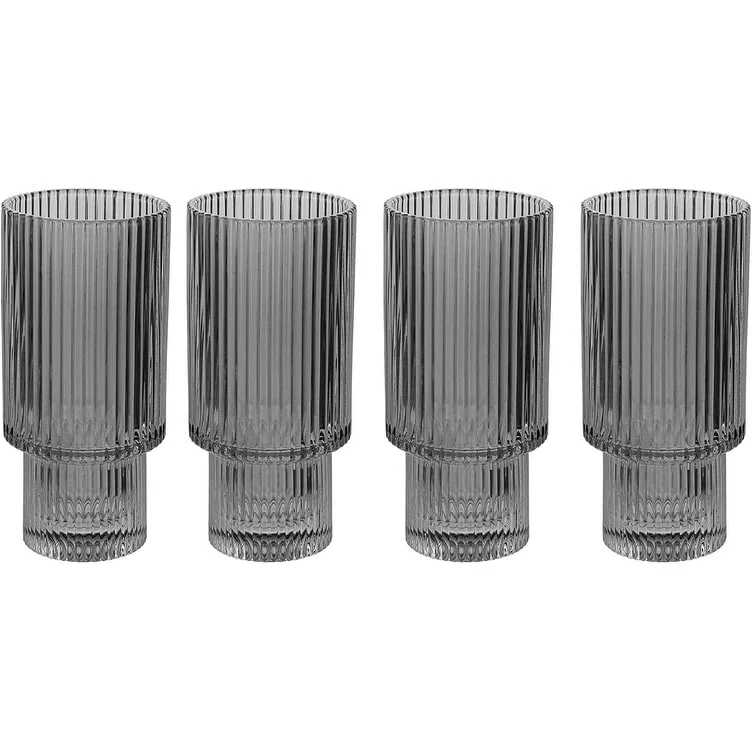 - Set of (4) American Atelier Vintage Art Deco 11 oz. Ribbed Fluted Drinking Glasses