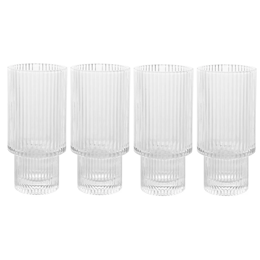 American Atelier Vintage Art Deco 11 oz. Ribbed Fluted Drinking Glasses, Set of 4 - New
