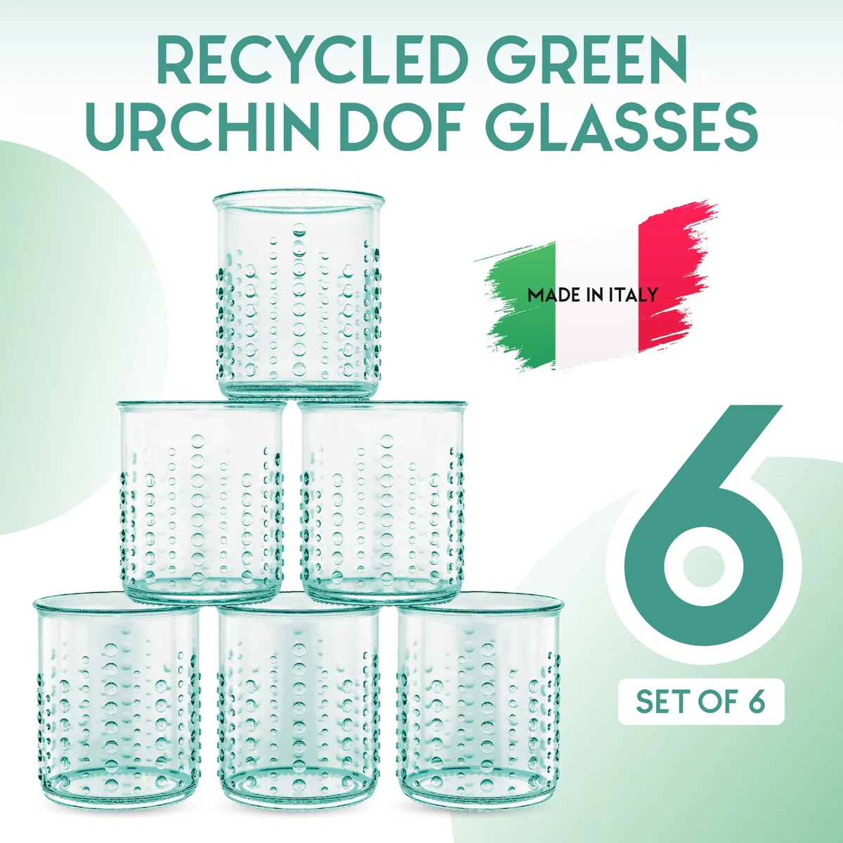 - (6) Amici Home Italian Recycled Green Urchin DOF Glasses