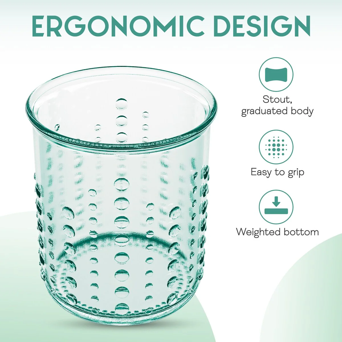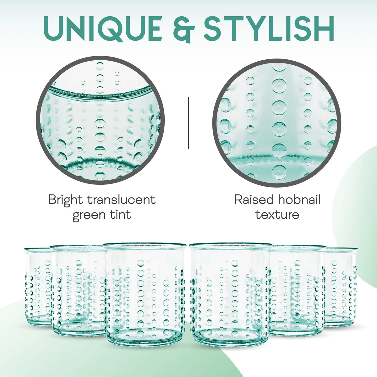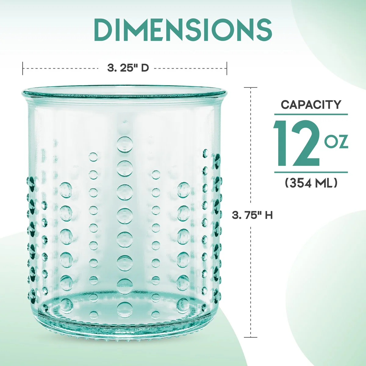 - HOBNAIL DESIGN - Featuring an embossed hobnail design, each glass has a 12 ounce capacity. These glasses are sold as a set of 6 glasses.