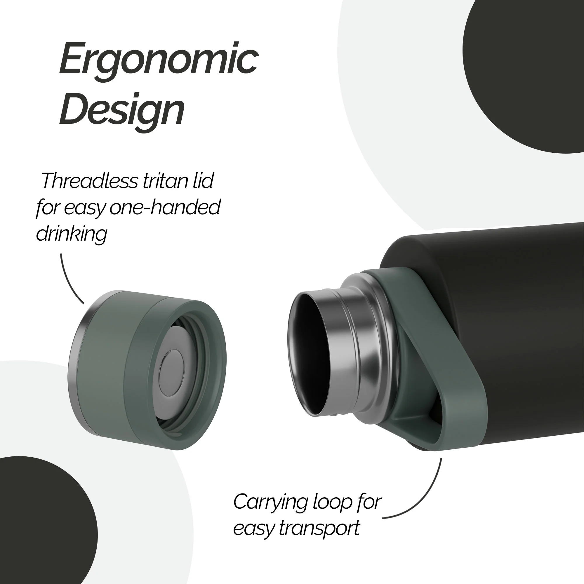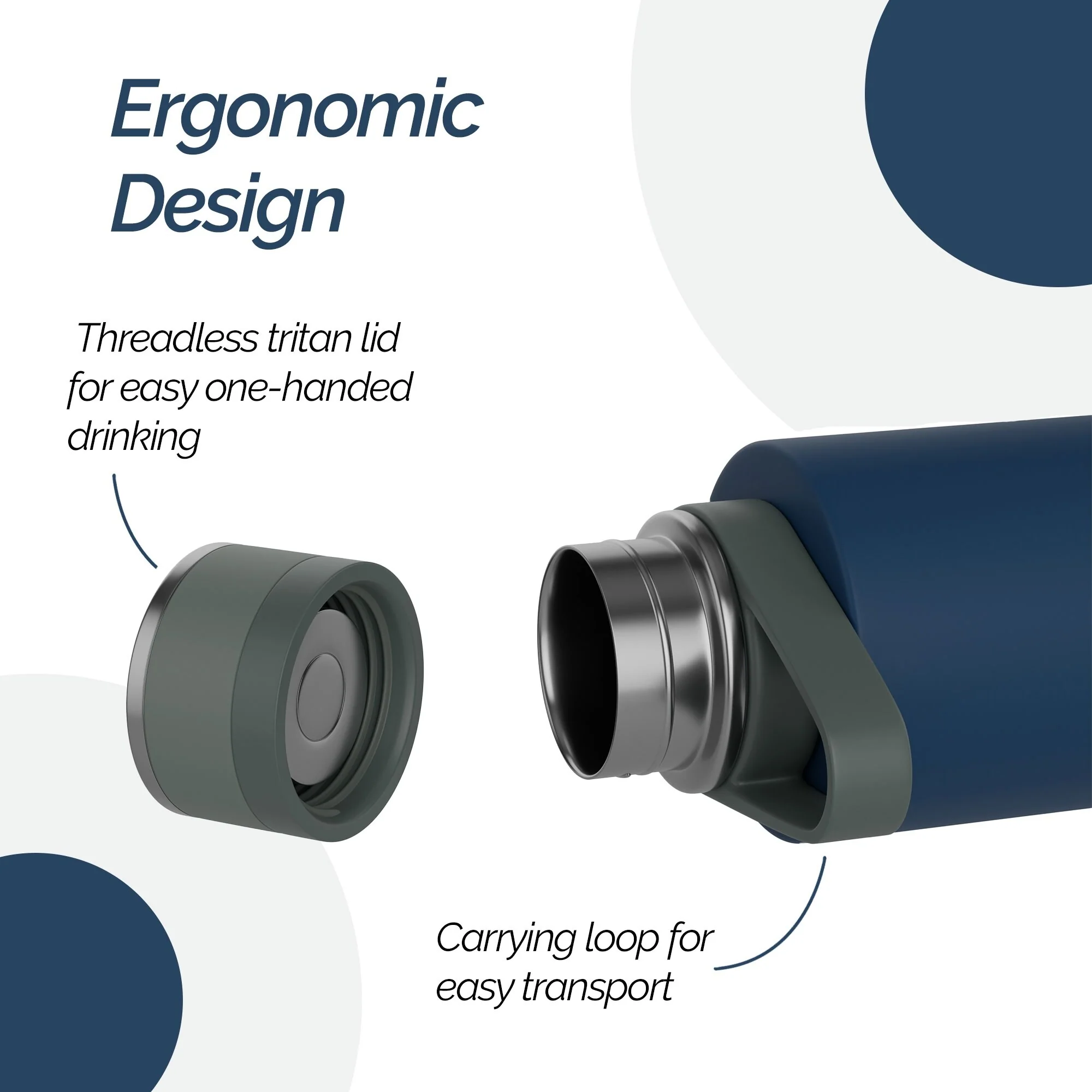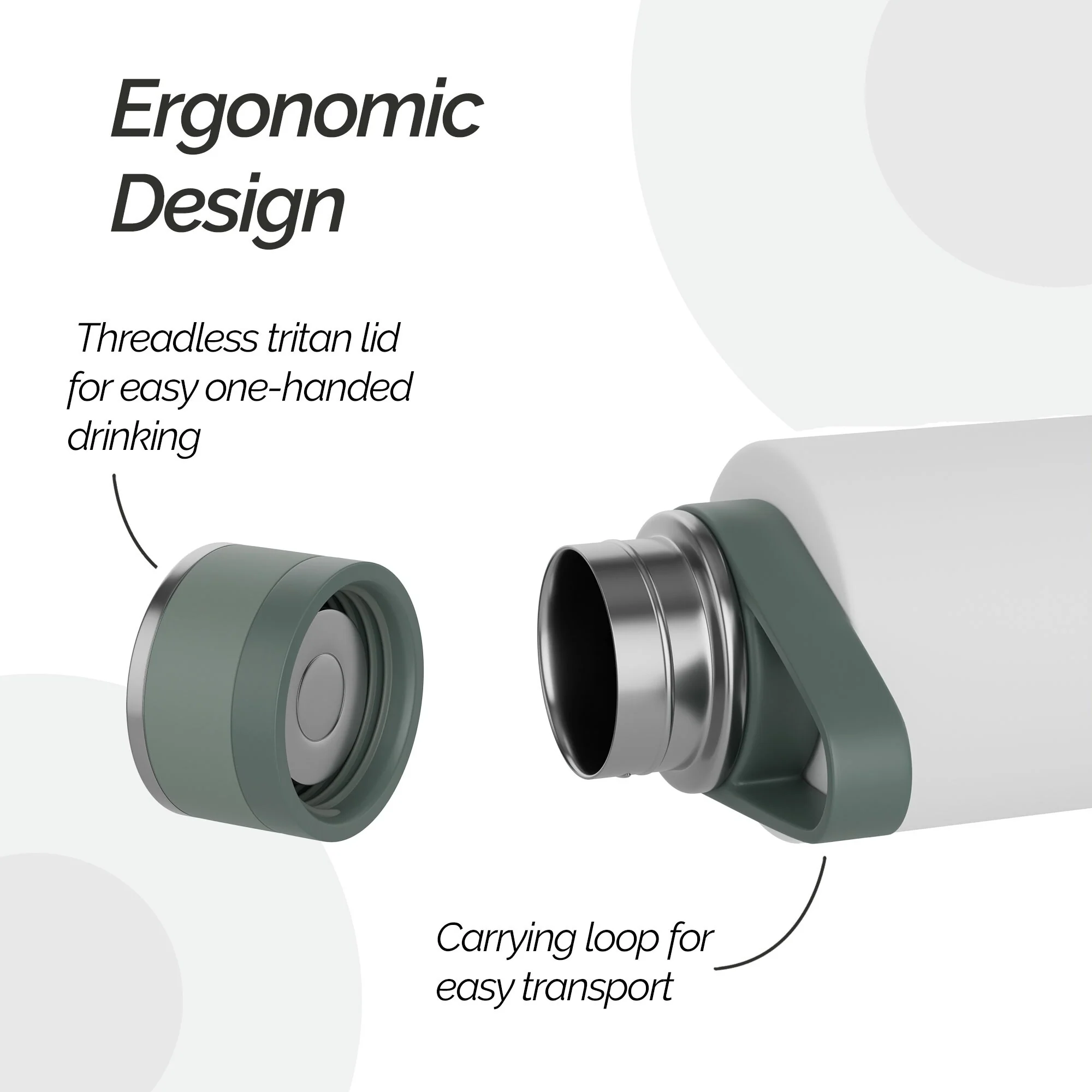 - Convenient One-Handed Drinking: Featuring a durable, threadless Tritan lid, this water bottle allows for easy one-handed drinking. The lid smoothly slides open and closed, ensuring a hassle-free drinking experience on the go.