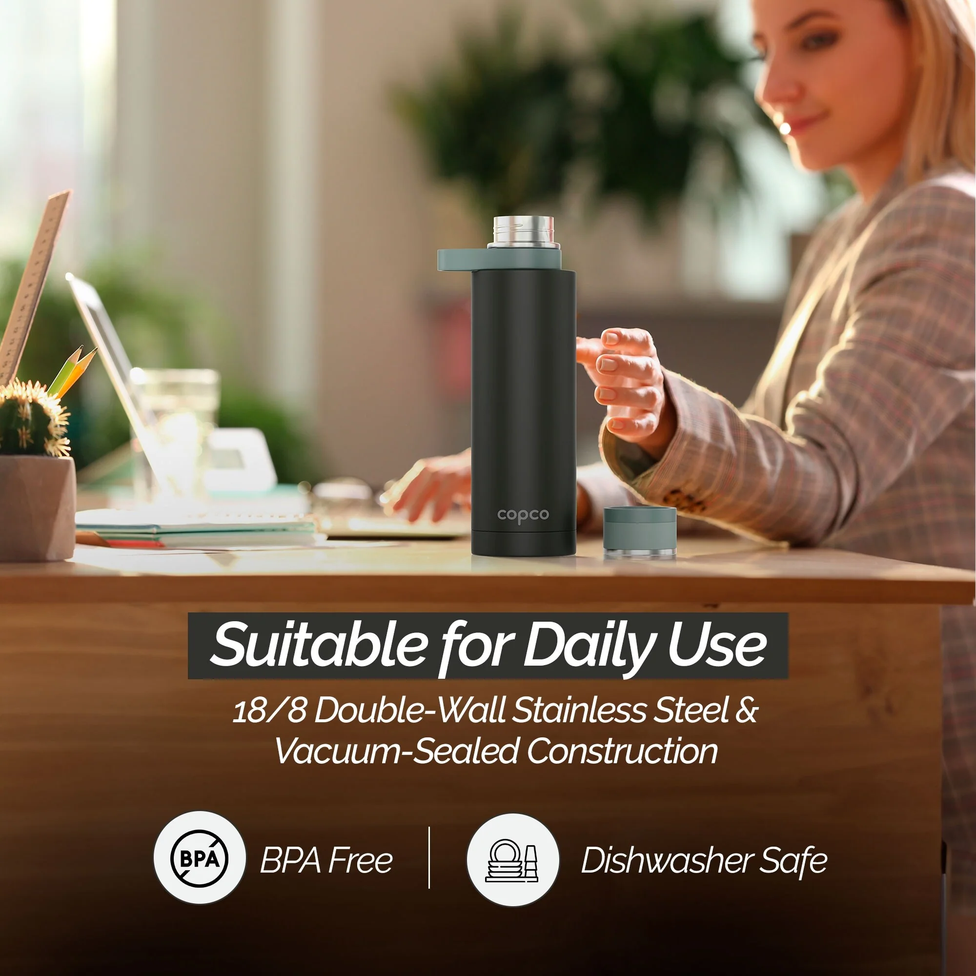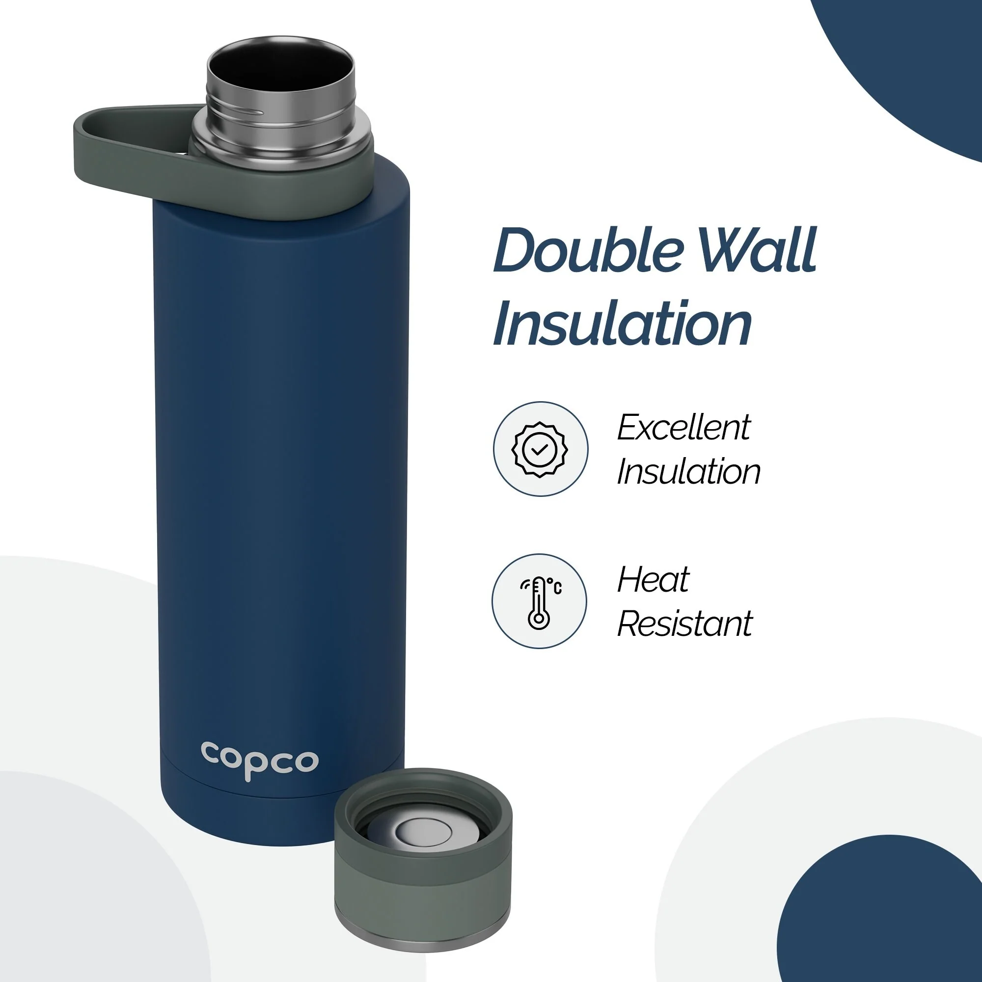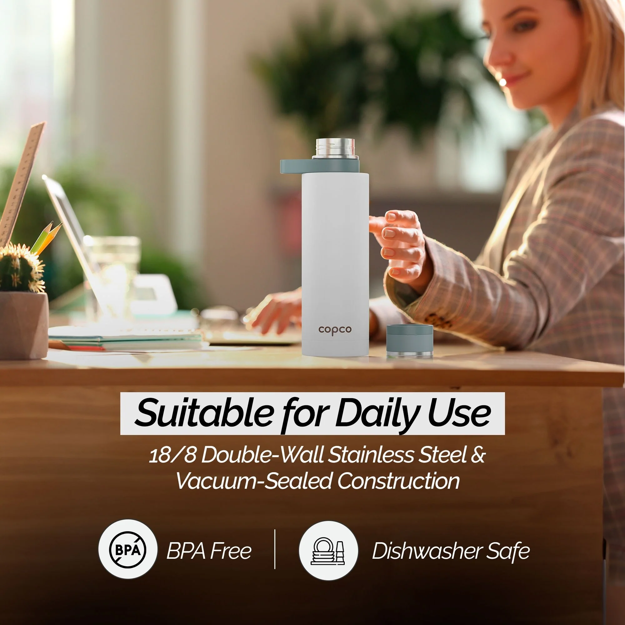 - Maintains Optimal Temperature: The Copco 24oz Loop Water Bottle is crafted with 18/8 double-wall stainless steel and vacuum-sealed construction to keep your cold beverages refreshingly cool for up to 8 hours, while also maintaining the warmth of hot drinks for up to 4 hours.
