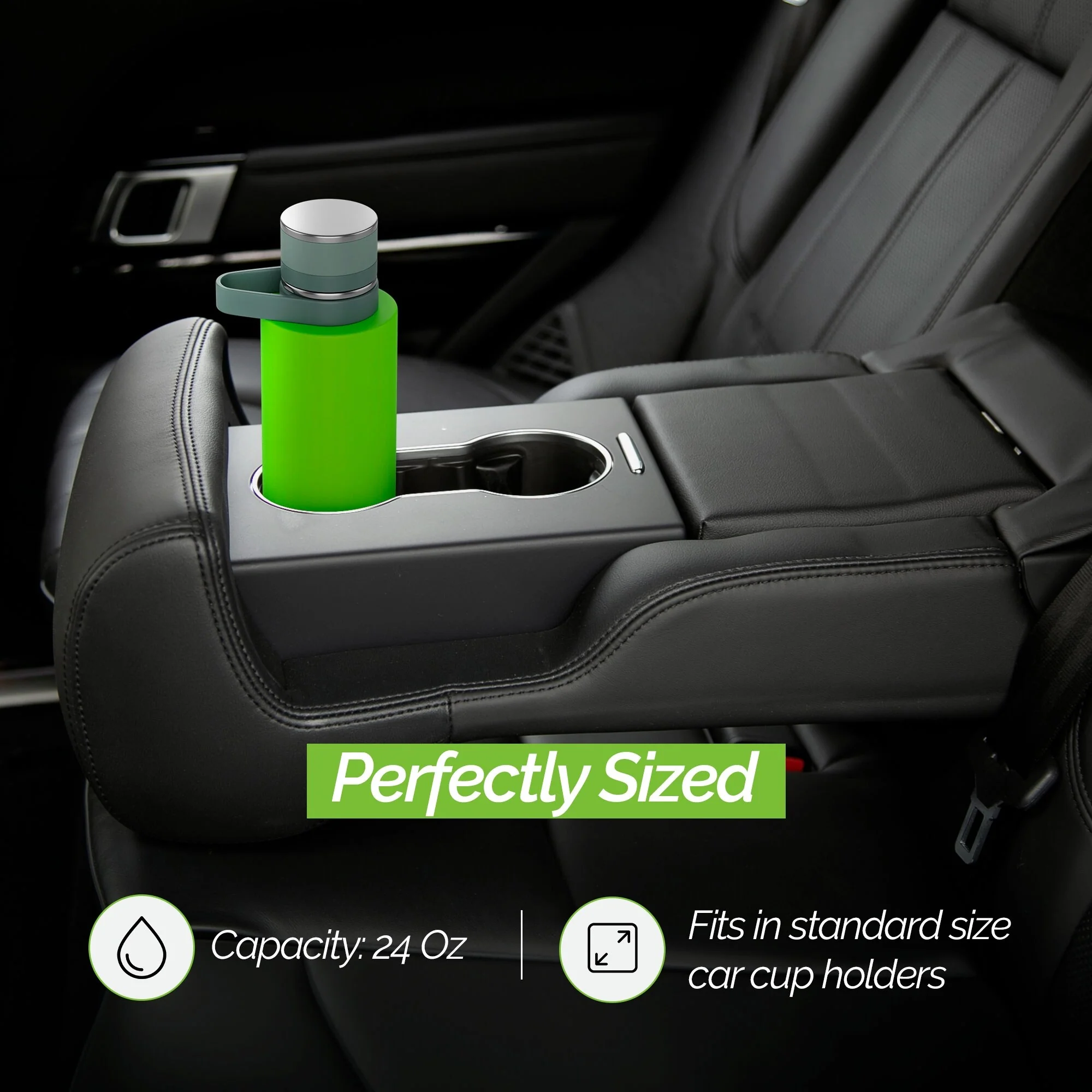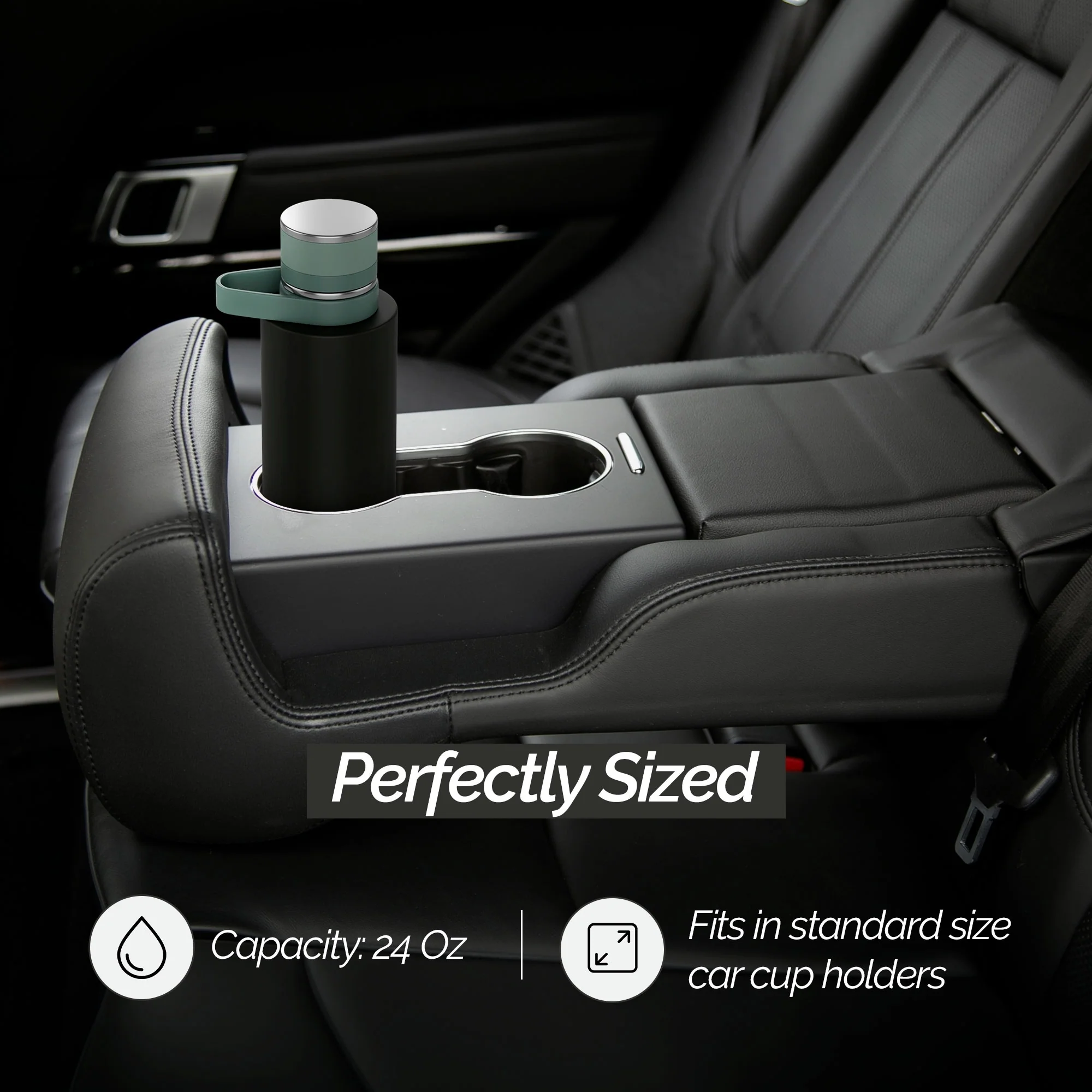 - Perfect Size and Portability: With a capacity of 24 ounces, this water bottle is designed to fit perfectly in a standard-sized cup holder. Whether you're commuting, hitting the gym, or traveling, you can conveniently take your hydration companion with you wherever you go.