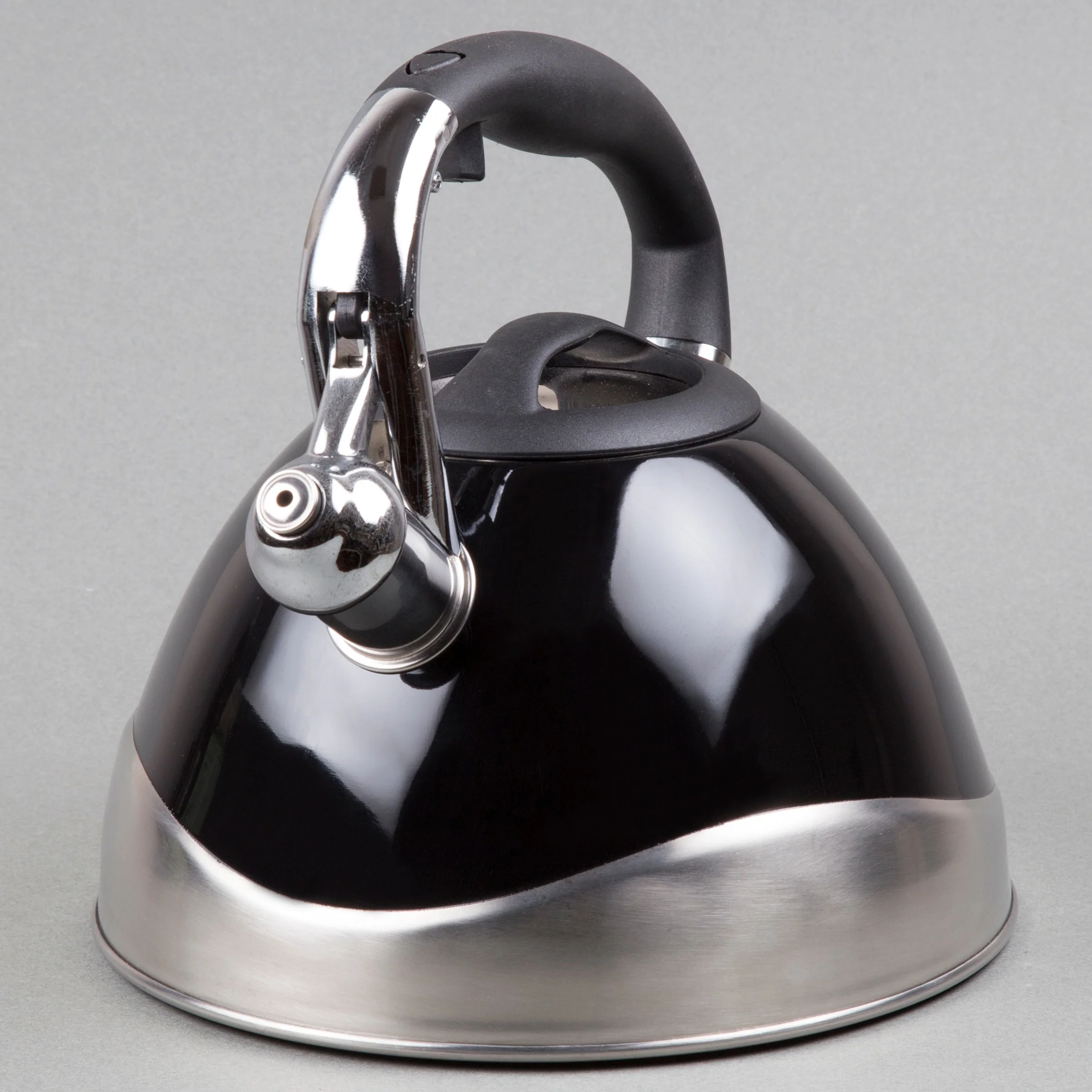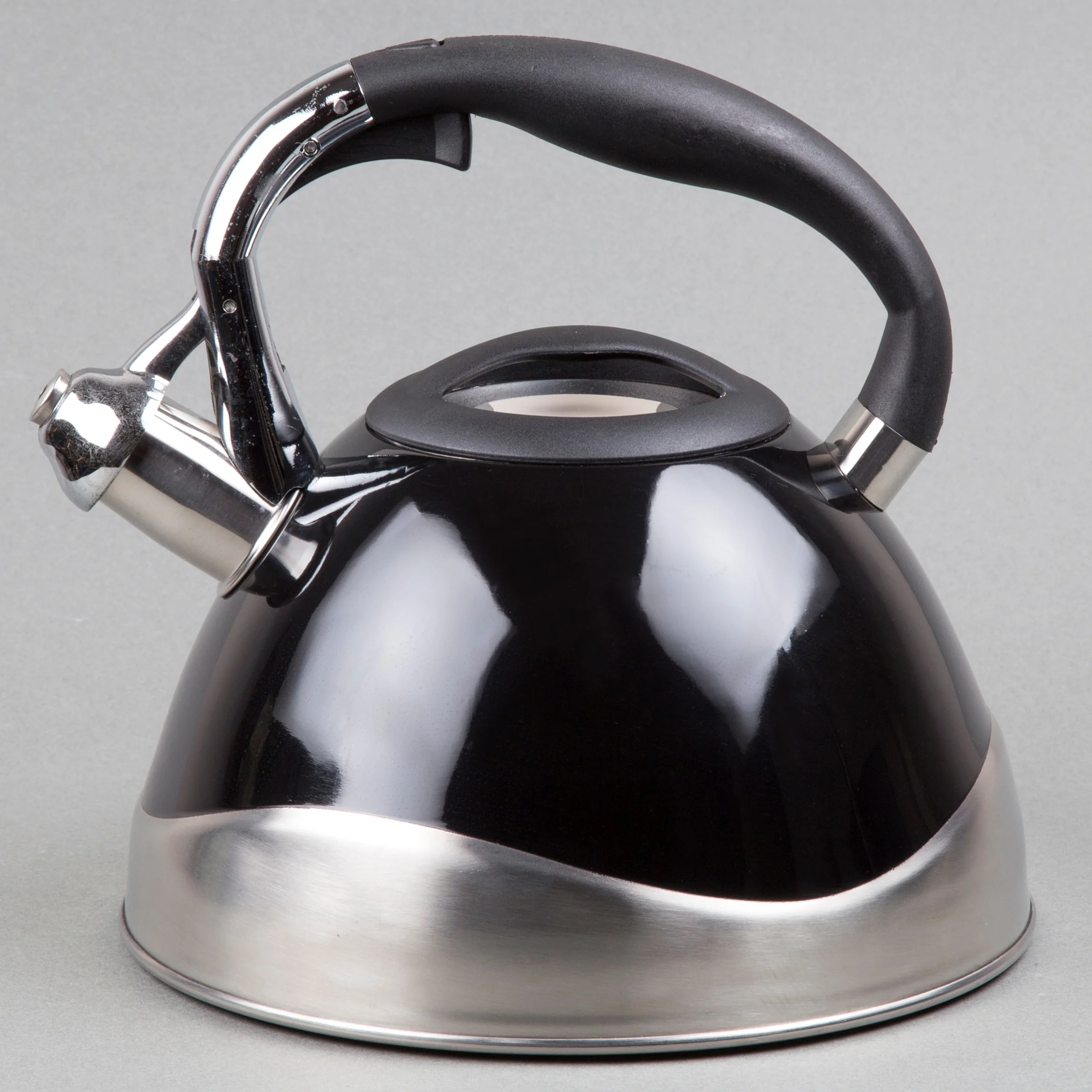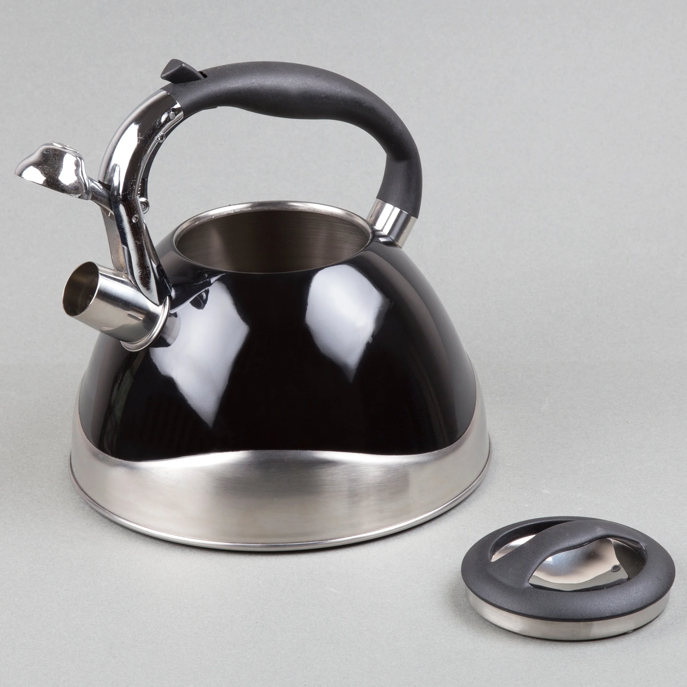 • Creative Home Crescendo 3.1 Quart Stainless Steel Whistling Tea Kettle with Aluminum Capsulated Bottom, Black Color