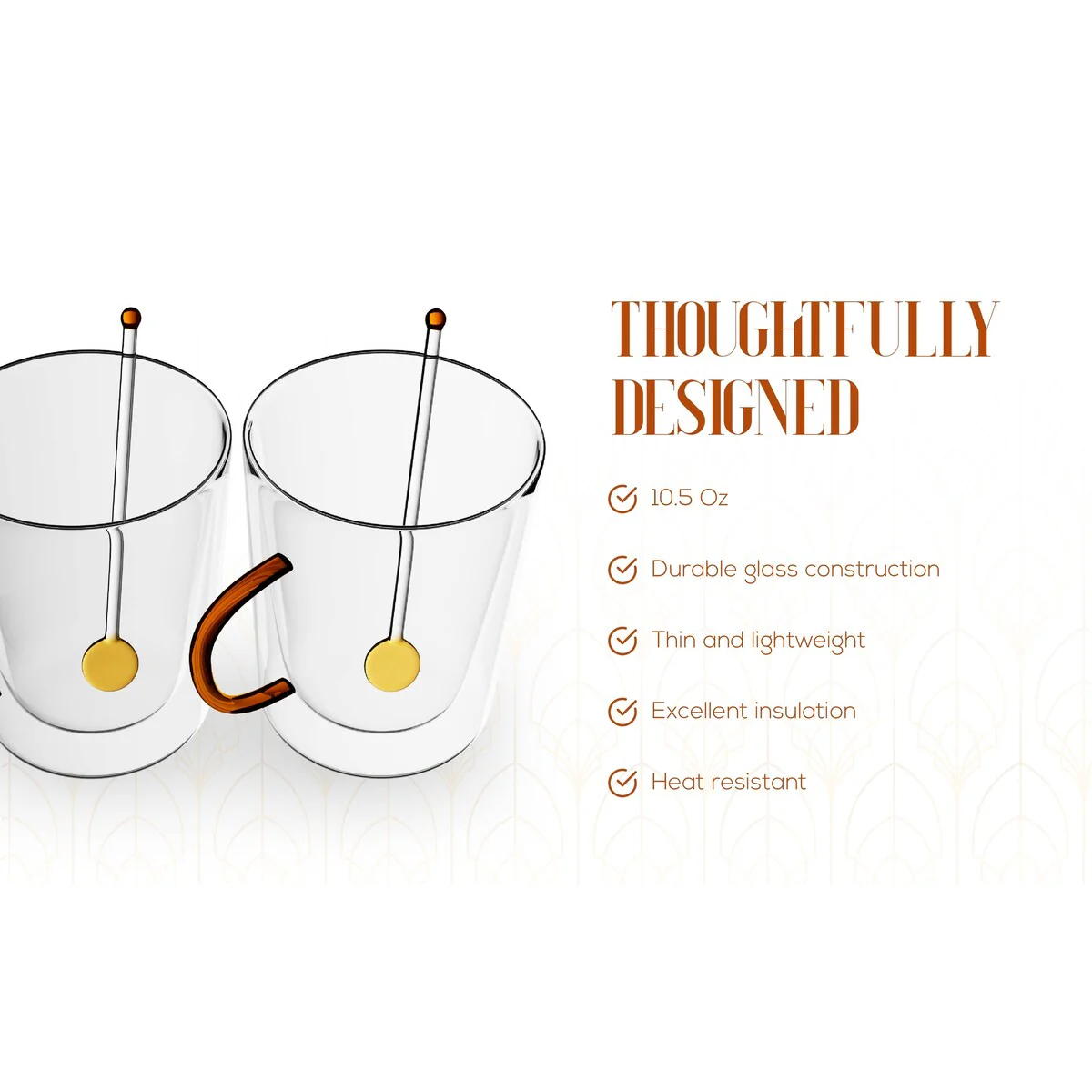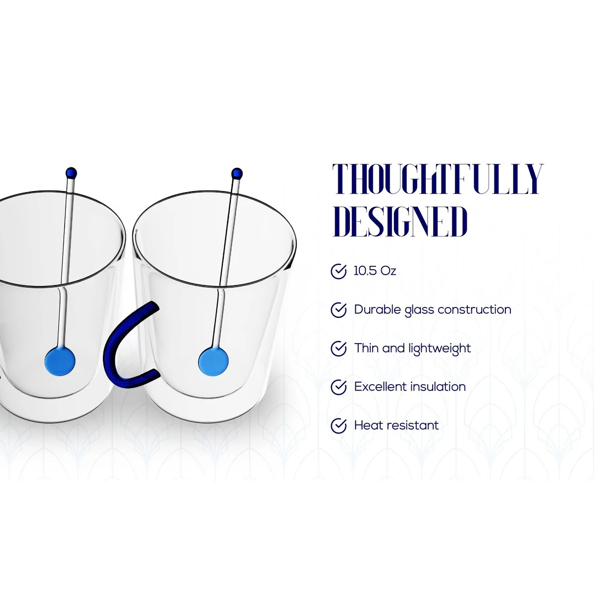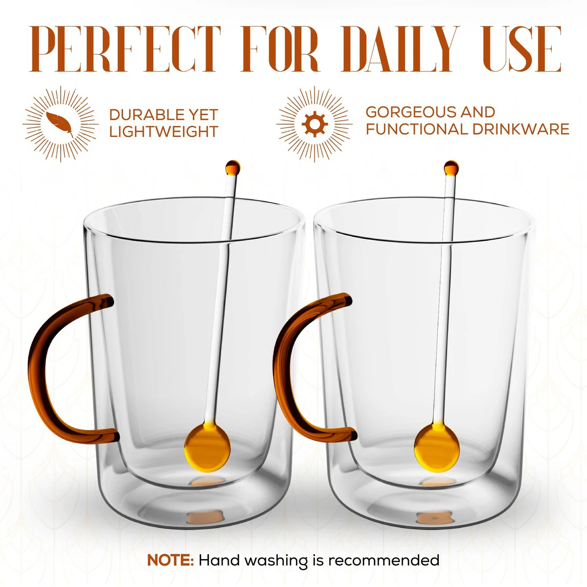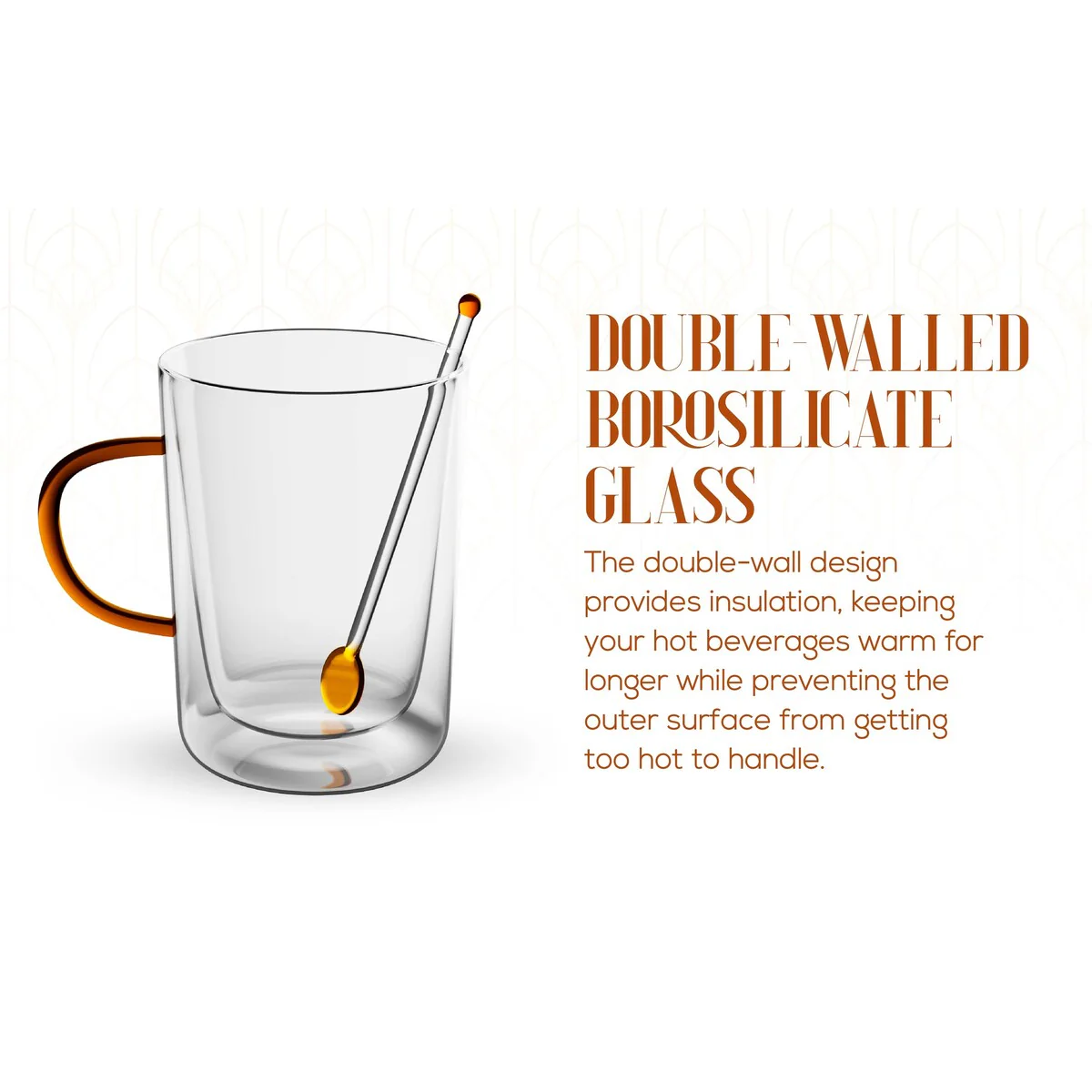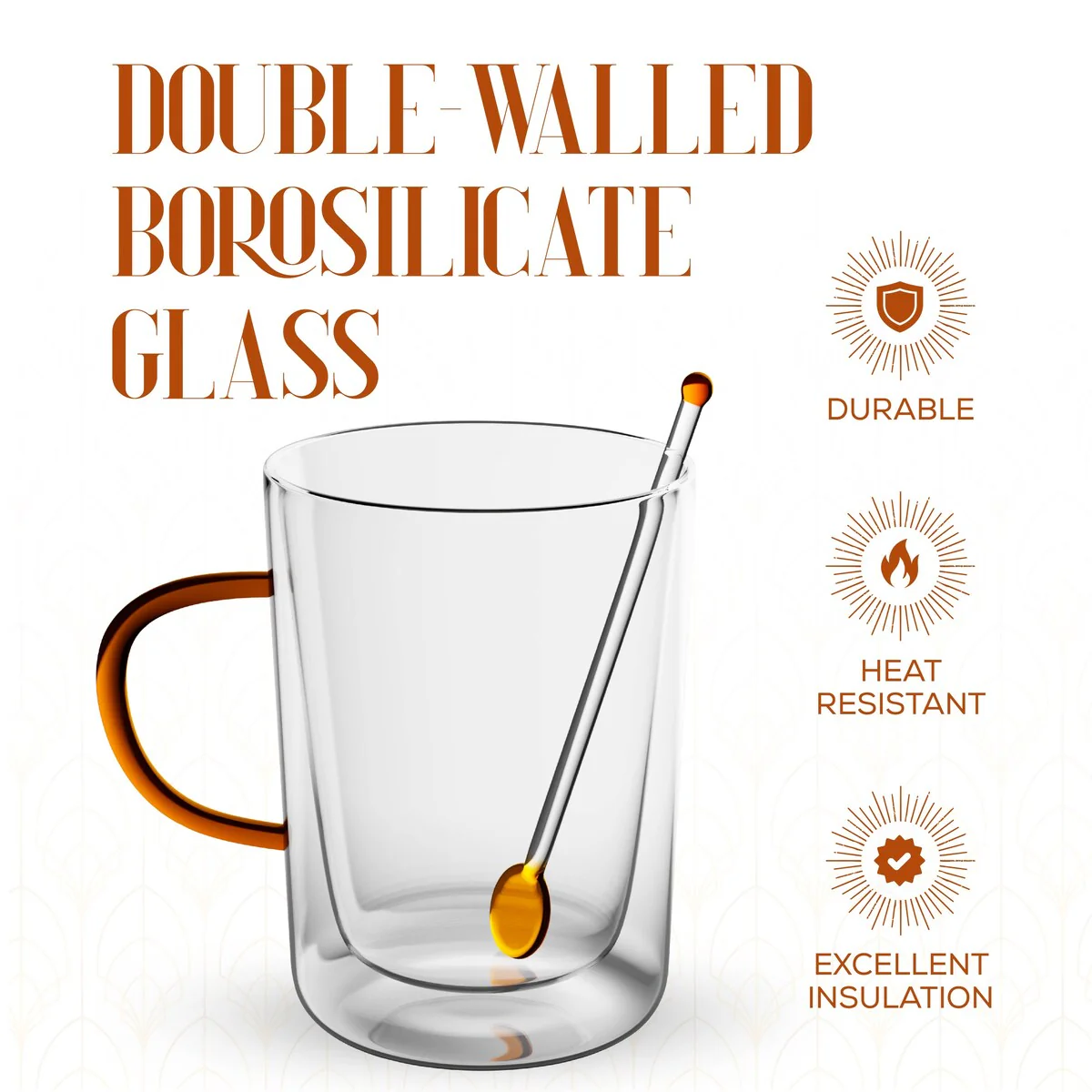 - Durable and Heat Resistant: Made from heat-resistant, high borosilicate glass, these mugs are designed to withstand high temperatures, making them safe for hot beverages. The double wall construction keeps your drink hot while ensuring the exterior remains cool to the touch.