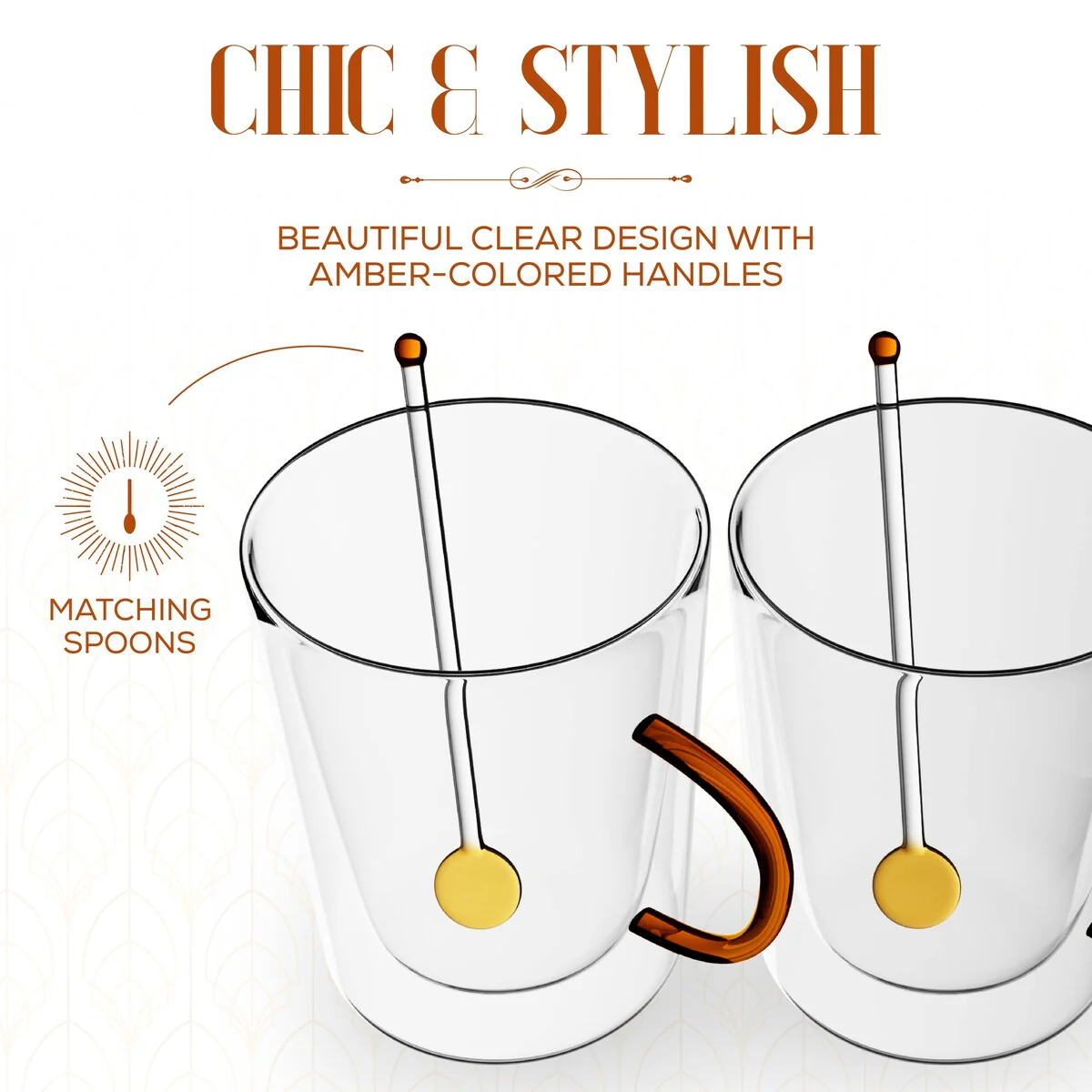 - Set of (2) Elle Decor Double Wall Glass Coffee Mugs with Spoons