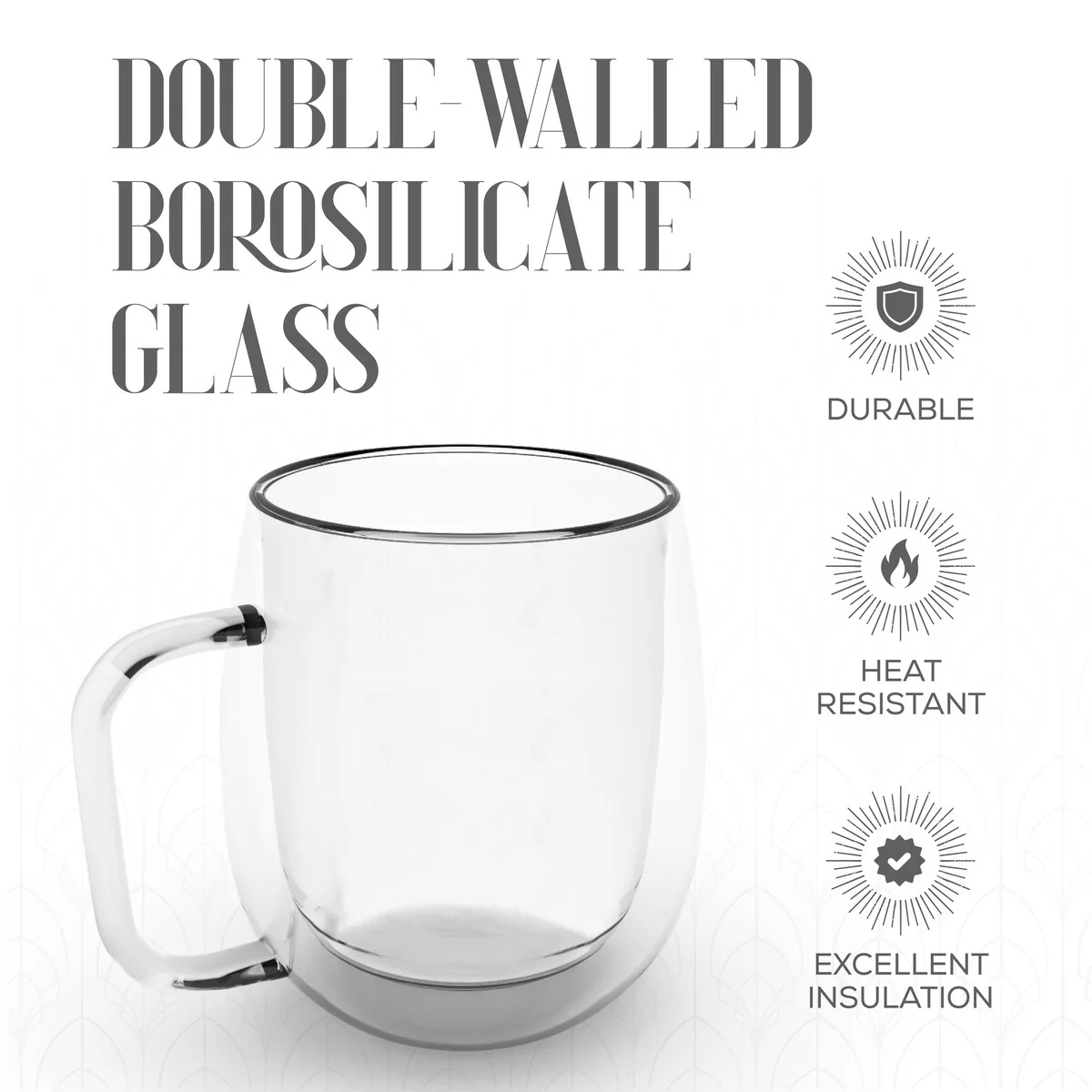 - Heat and Condensation Resistant: Crafted from durable borosilicate glass, these mugs are resistant to heat and condensation. They keep your drink hot while keeping your hands cool, and the crystal-clear finish adds a touch of sophistication to your coffee or tea.